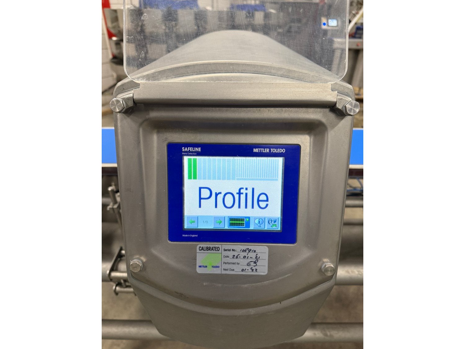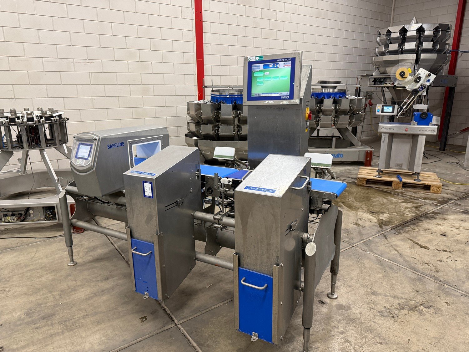 Safeline Mettler-Toledo Garvens GmbH metal detector with checkweigher, type metal detector: R Series Profile, serial number: 108910, type checkweigher: XS 3 CC, fabrication number: 35002725, year of construction: 2011, 100-240 V, 50-60 Hz, maximum weight: 1000 gram, minimum weight: 7 gram, e=d= 0.5 gram, T=-900 gram, plastic belt, belt width: 250 mm, total dimensions: 2450 mm x 1300 mm x 1780 mm. Kavel locatie: Bedrijfsweg 7, 8304 AA Emmeloord, Nederland