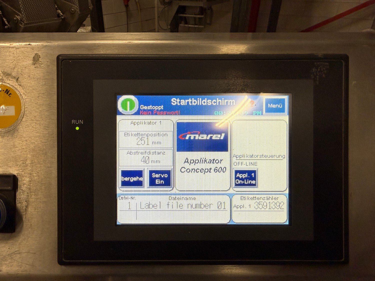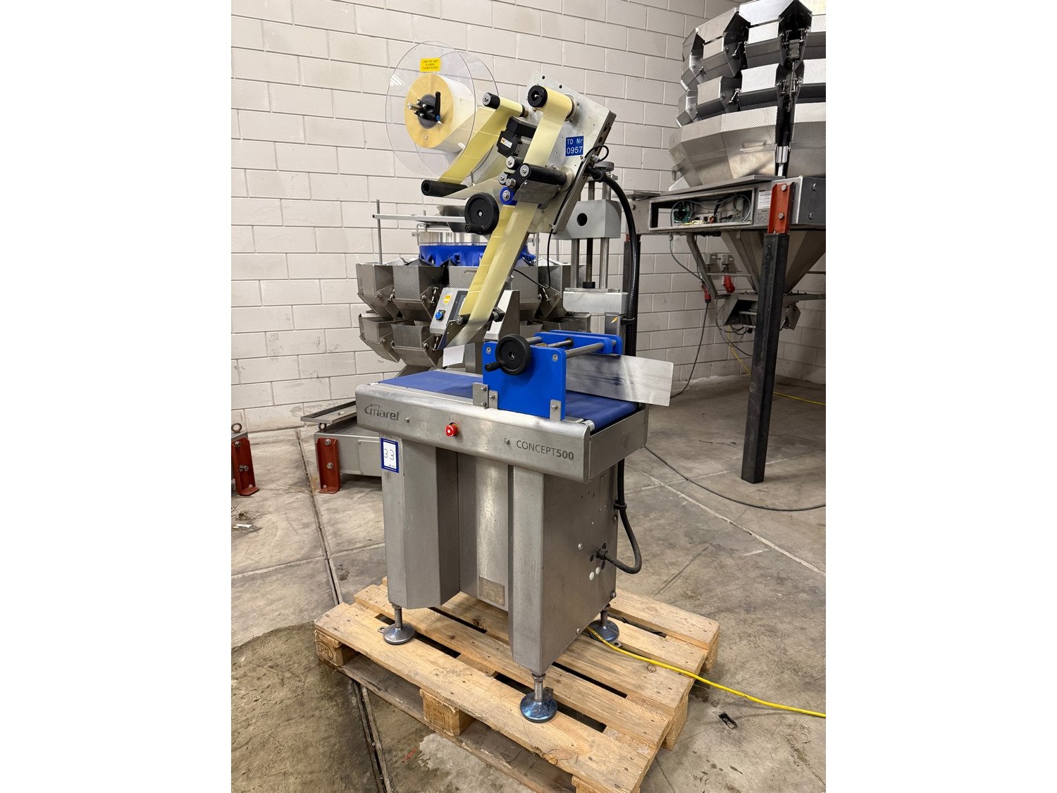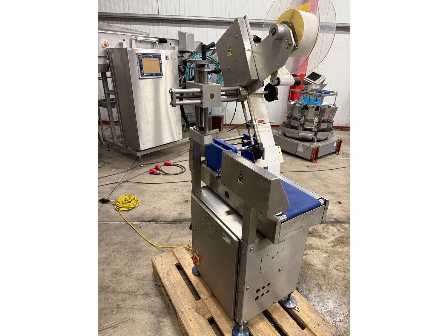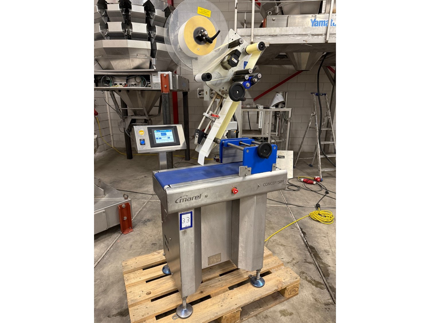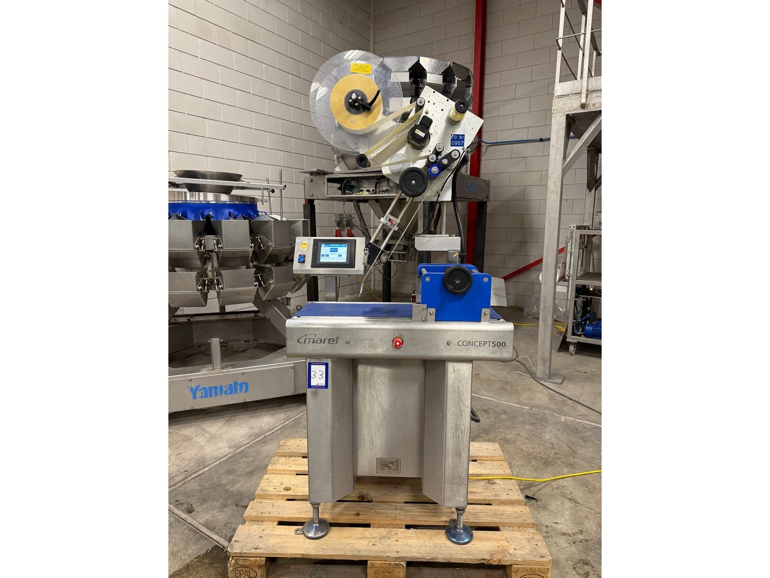 Marel labelling machine, model: CONCEPT 500, serial number: LA0700, year of construction: 2016, 230 V, 50/60 Hz, 4 A, 1 kW, weight: 160 kg, plastic belt, belt width: 240 mm, total dimensions: 900 mm x 700 mm x 1800 mm. Kavel locatie: Bedrijfsweg 7, 8304 AA Emmeloord, Nederland