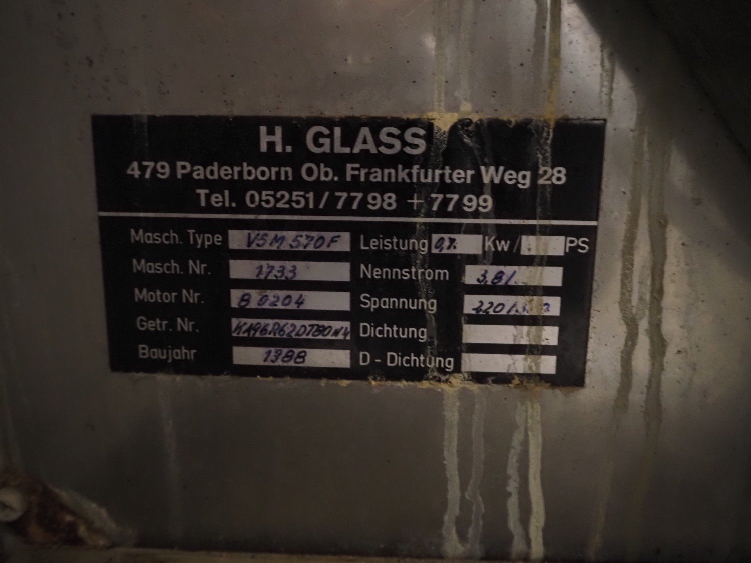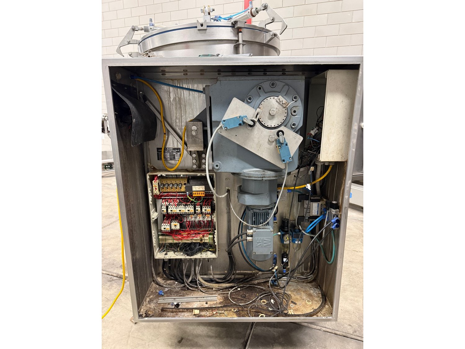 H. Glass tumbler, type: VSM 570F, machine number: 1733, 220/380 V, 0.7 kW, with agitator with scrapers, inside dimensions: Ø 1000 mm x 850 mm, total dimensions: 1550 mm x 1250 mm x 1950 mm. Kavel locatie: Bedrijfsweg 7, 8304 AA Emmeloord, Nederland