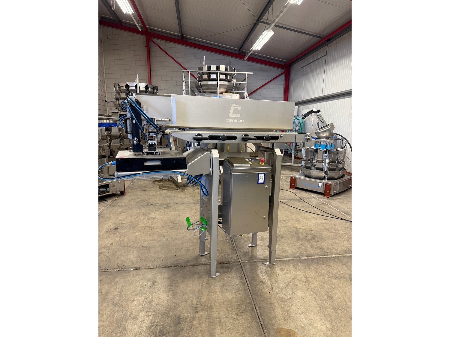 Carsoe tray denester, type/model: ANYTRAY BUFFER 1500 CLEANLINE RIGHT, year of construction: 2021, 1 x 230 V, 50 Hz, 0.46 kW, plastic belt, belt width: 270 mm, Carsoe tray dispenser, type/model: ANYTRAY LEANONE DENESTER 221 x 138 B, year of construction: 2021, total dimensions: 1900 mm x 700 mm x 1700 mm. Kavel locatie: Bedrijfsweg 7, 8304 AA Emmeloord, Nederland