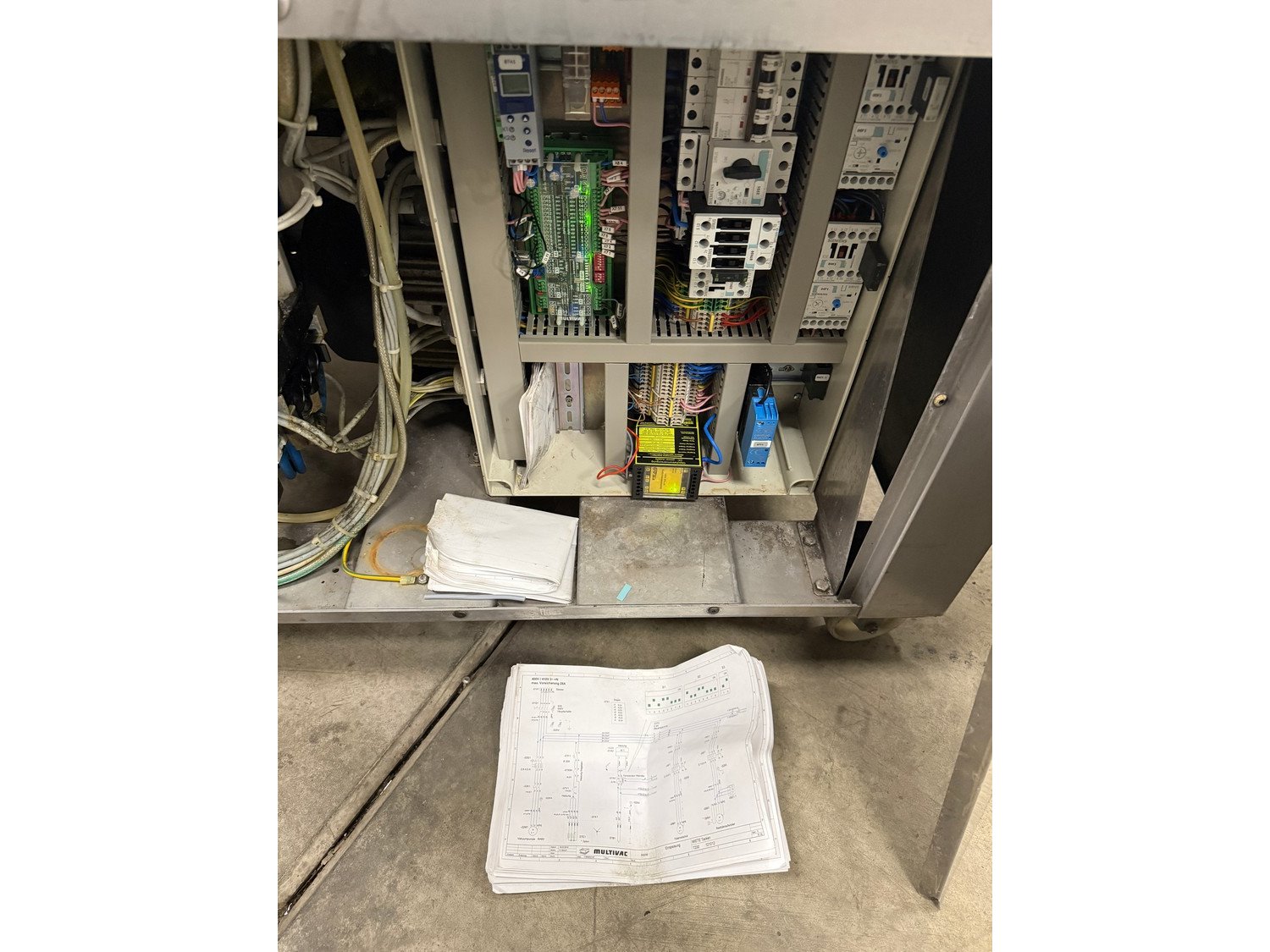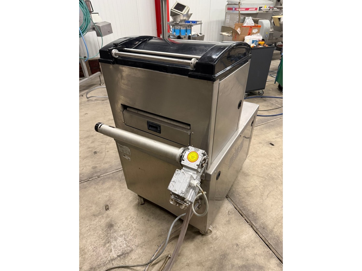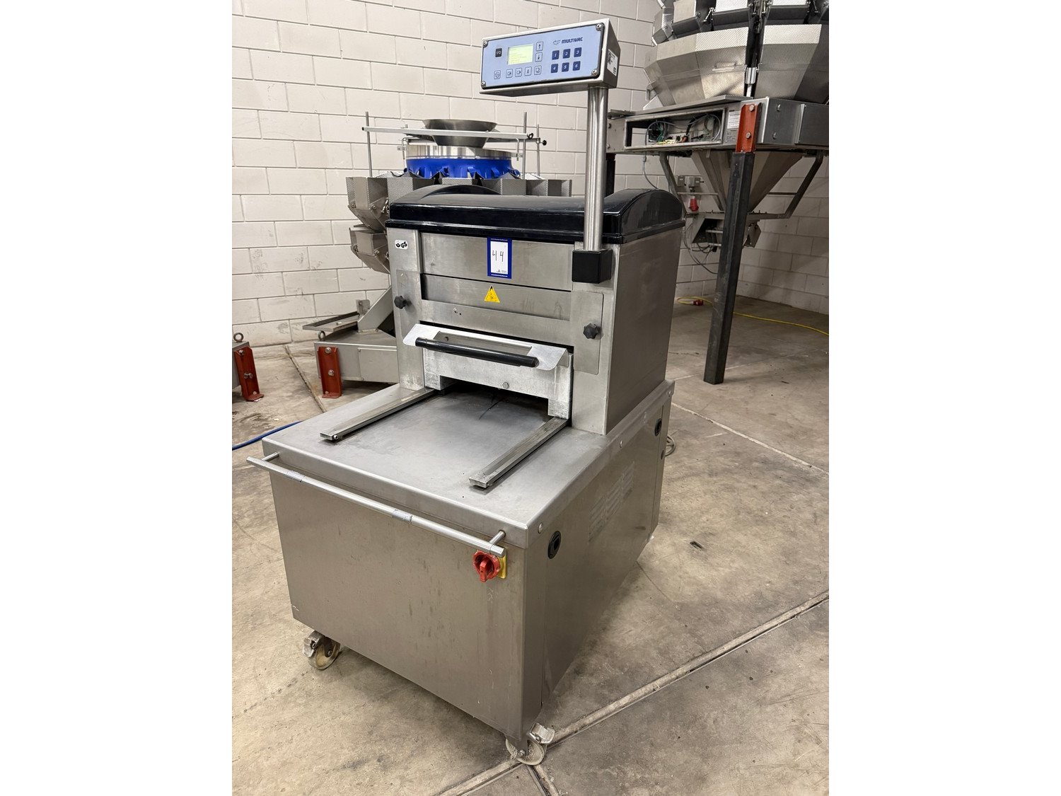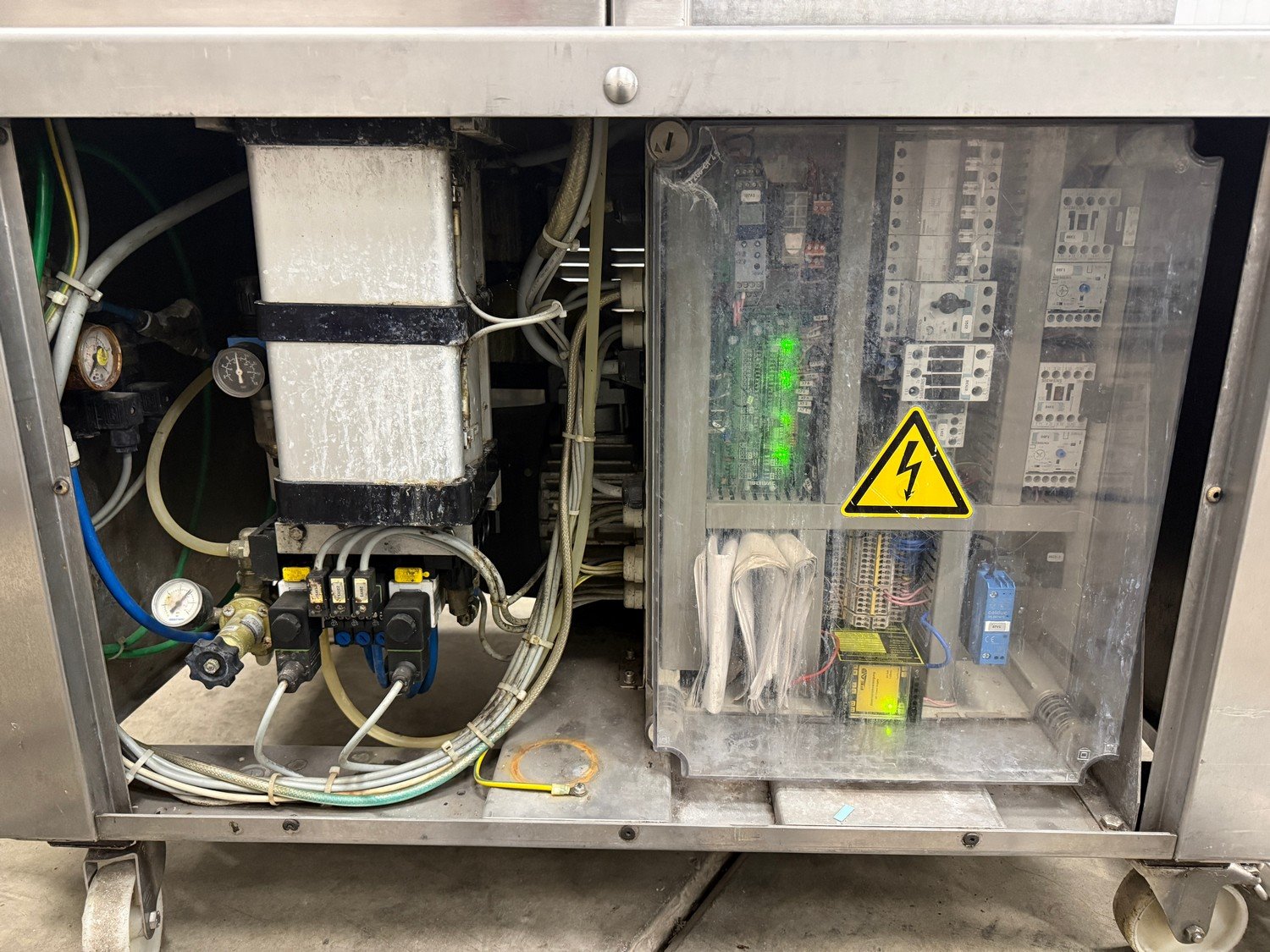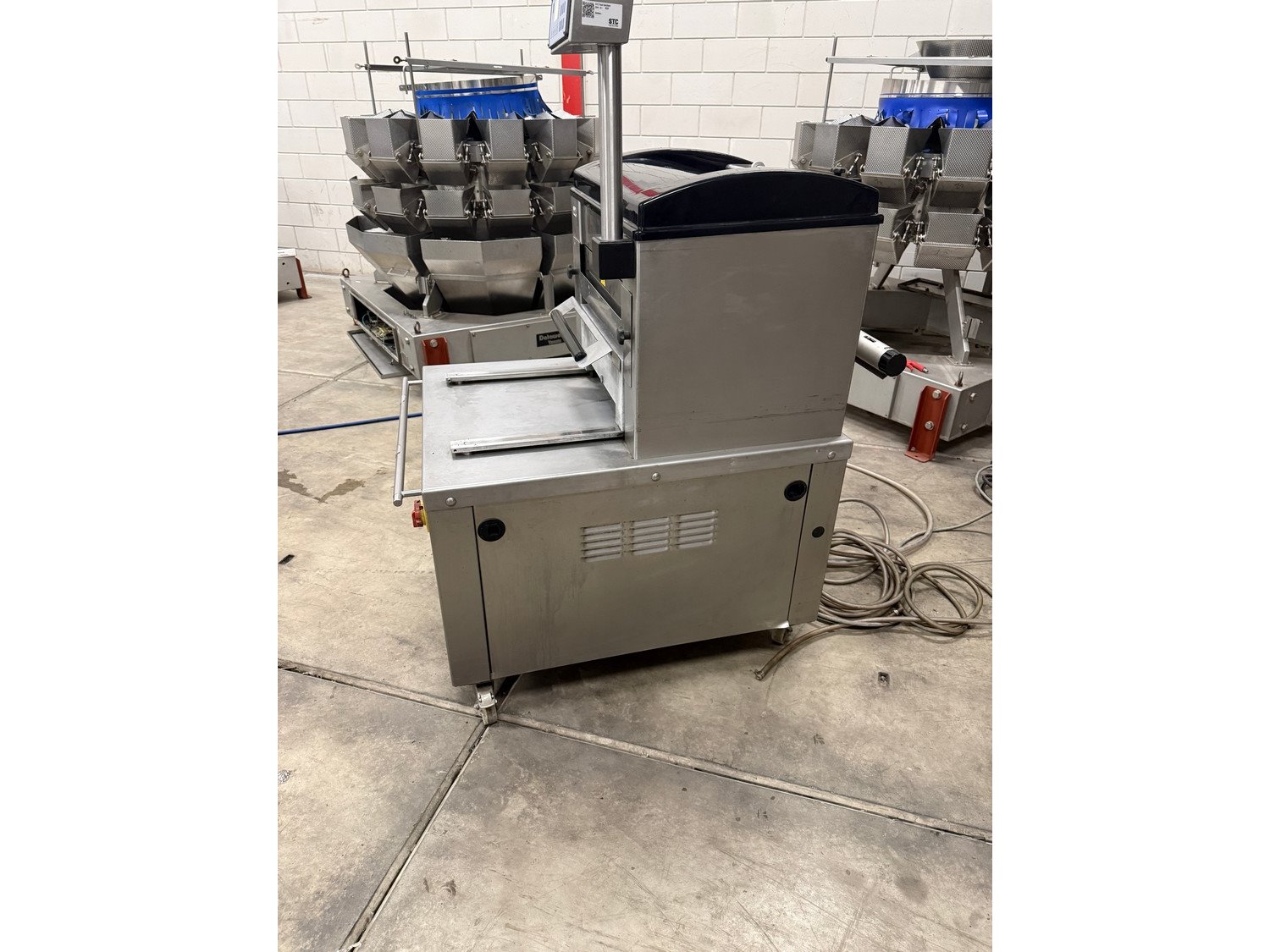 Multivac mobile traysealer, type: T200, machine number: 121012, year of construction: 2008, 400 V, 3 Ph, 50 Hz, 20 A, 3.8 kW, dimensions dye: (2x) 240 mm x 140 mm, total dimensions: 1350 mm x 750 mm x 1600 mm. Kavel locatie: Bedrijfsweg 7, 8304 AA Emmeloord, Nederland