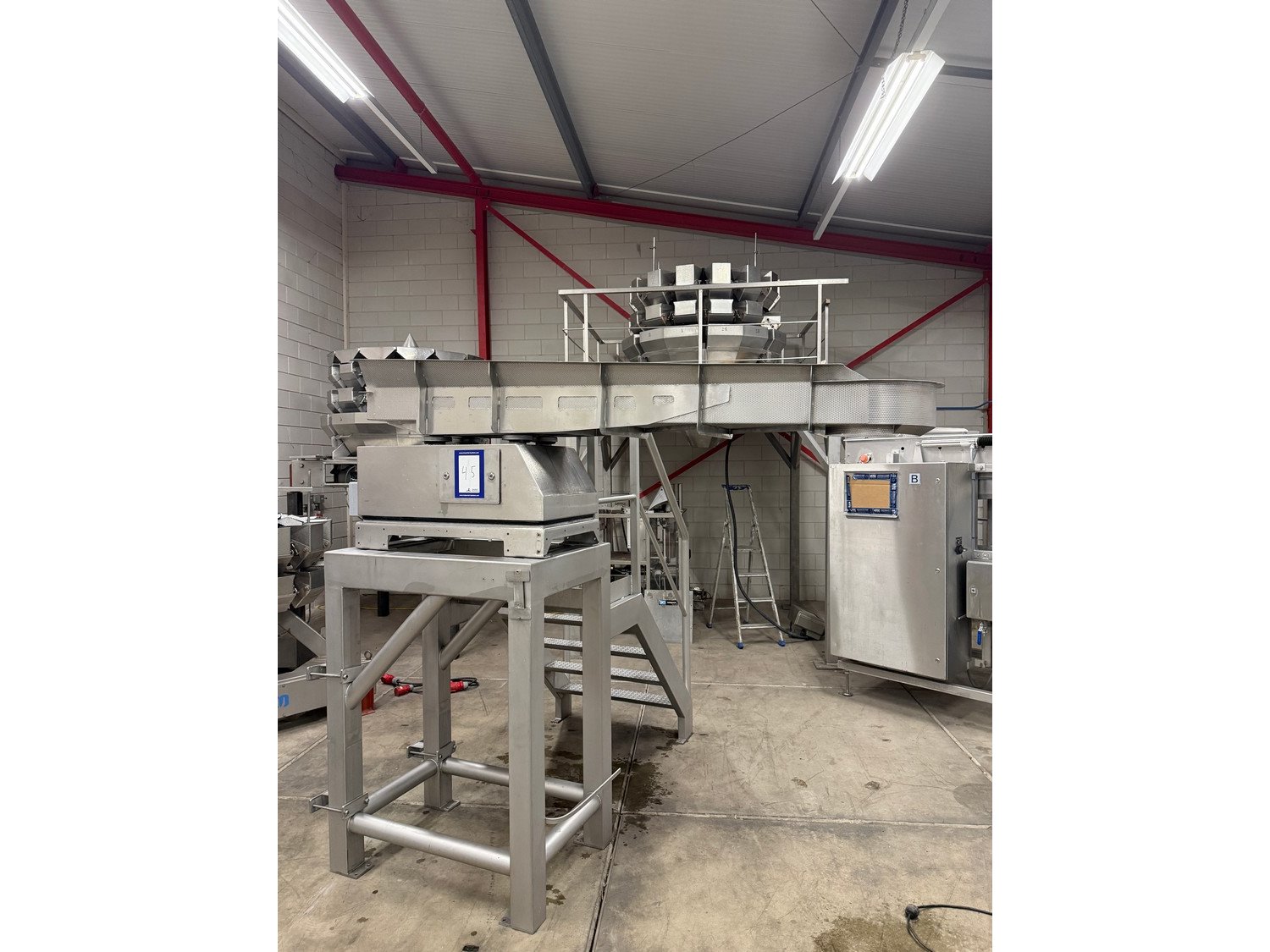 Multipond vibrating gutter with s/s platform, type: BE-EXT-HD, fabrication number: BE 2010017, year of construction: 2010, 230 V, gutter width: 450 mm, total dimensions: 2150 mm x 2400 mm x 2200 mm. Kavel locatie: Bedrijfsweg 7, 8304 AA Emmeloord, Nederland