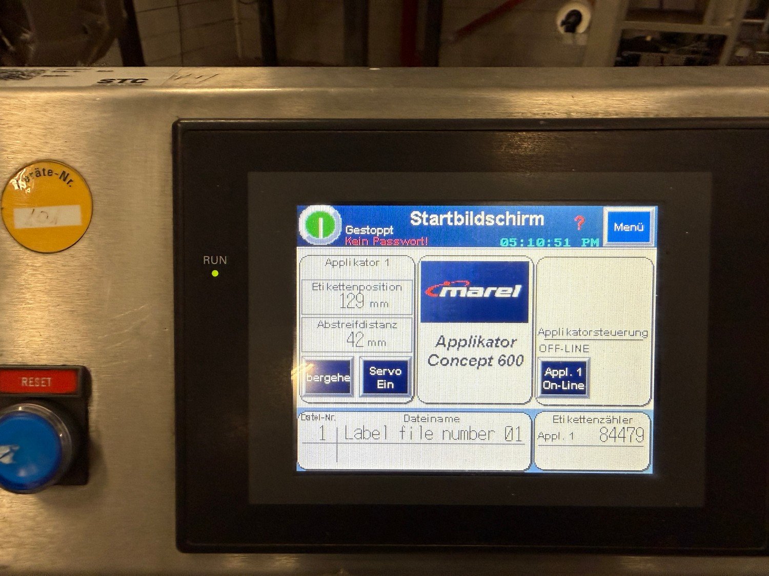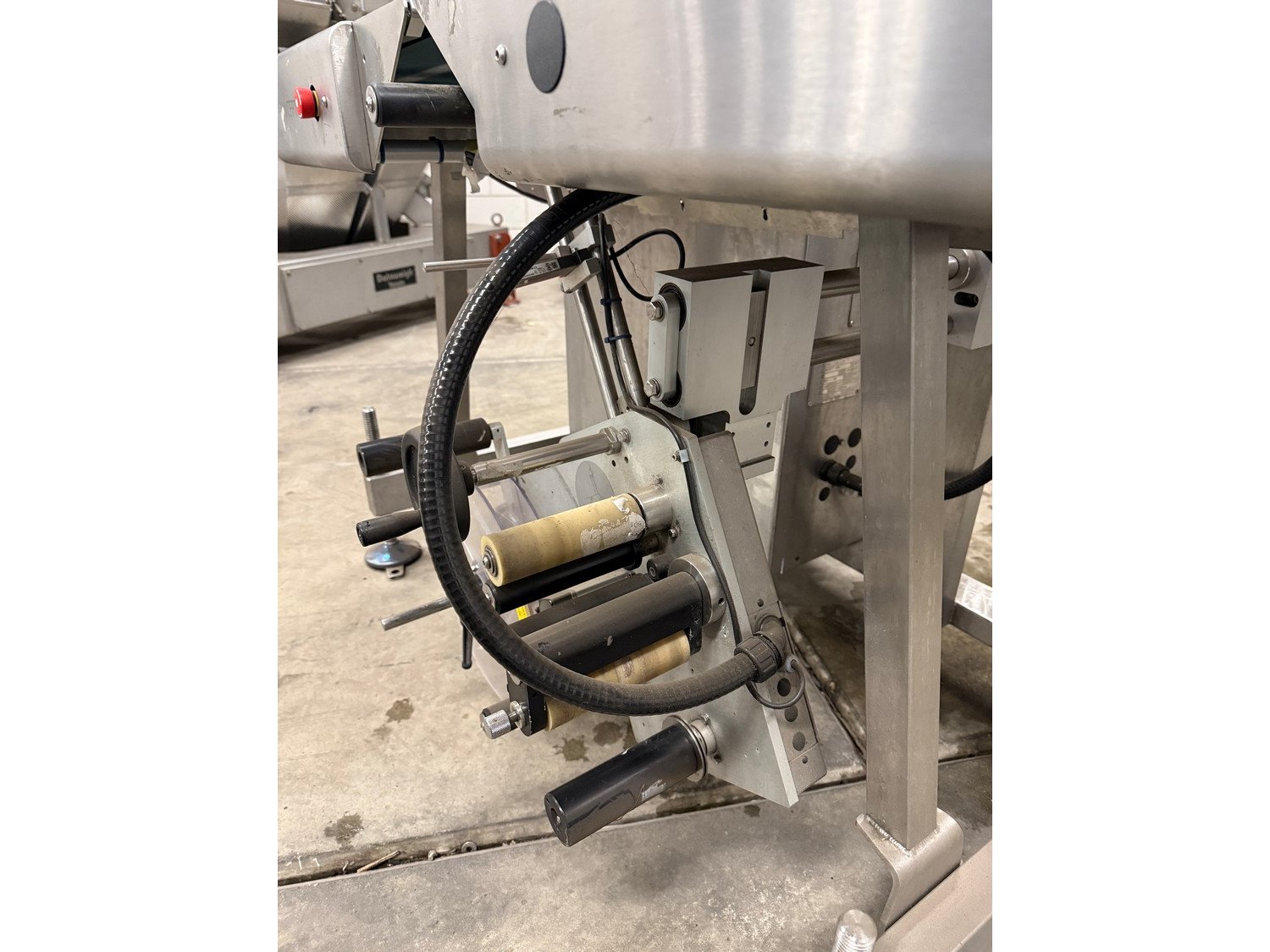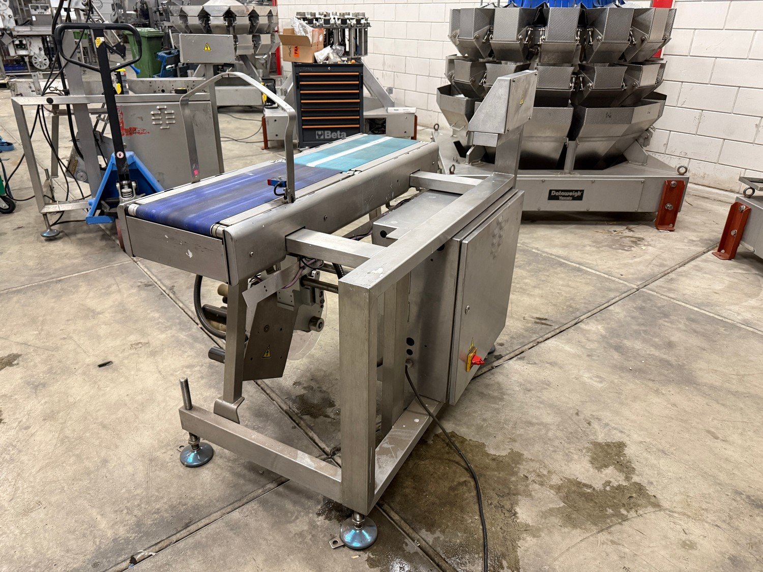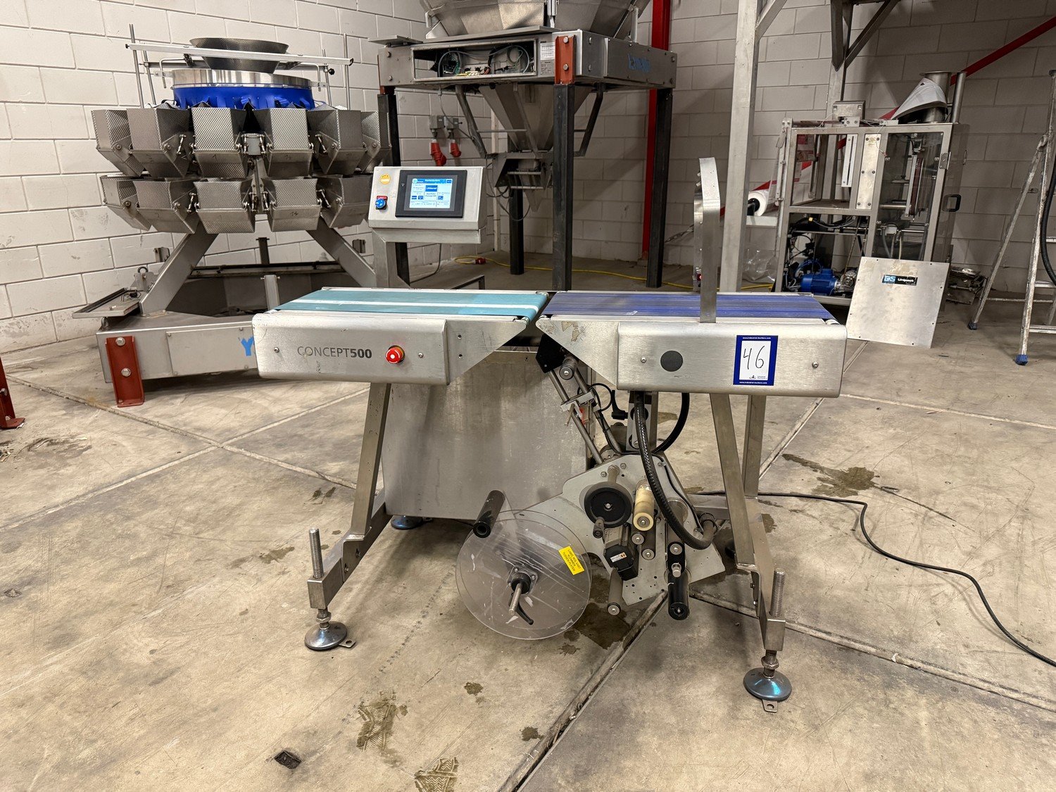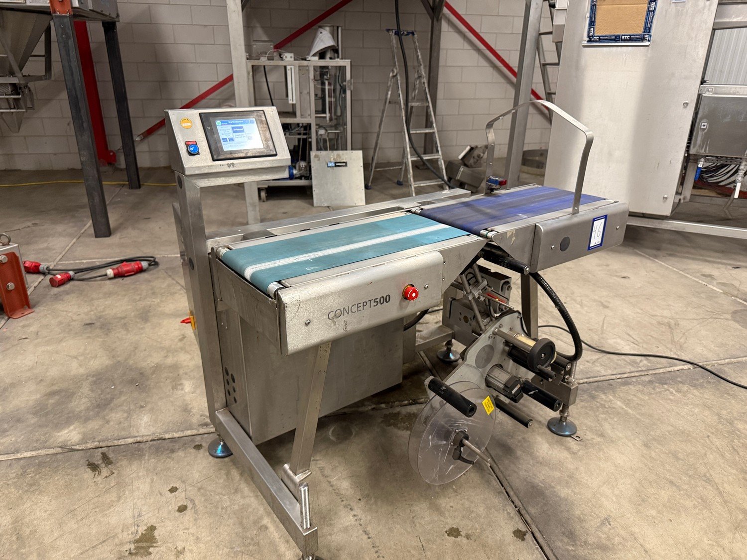 Marel labelling machine, model: CONCEPT 500, serial number: 10422443, year of construction: 2019, 230 V, 3 Ph, 50/60 Hz, bottom labeller, plastic belt, belt width: 230 mm, total dimensions: 1200 mm x 750 mm x 1200 mm. Kavel locatie: Bedrijfsweg 7, 8304 AA Emmeloord, Nederland