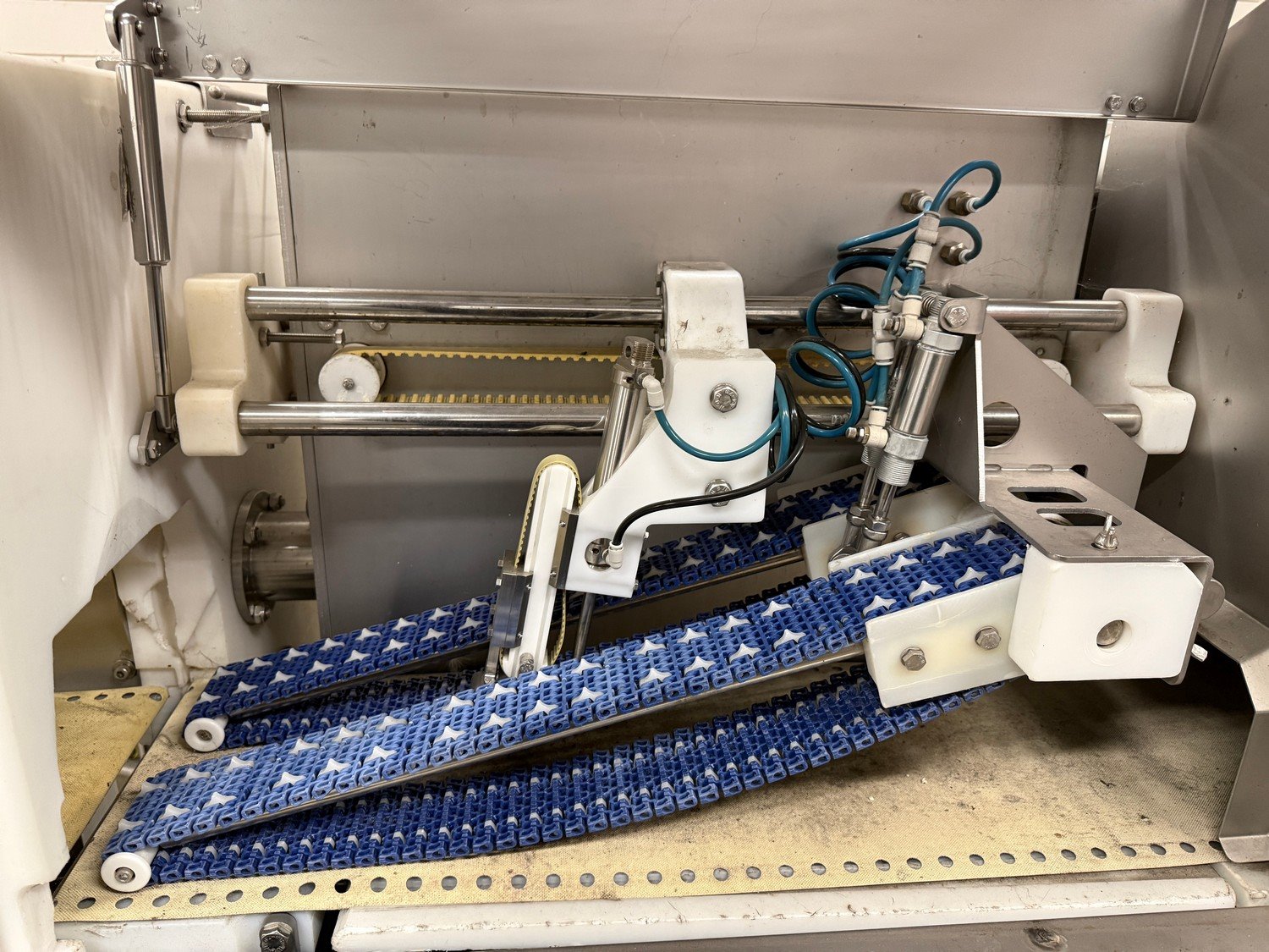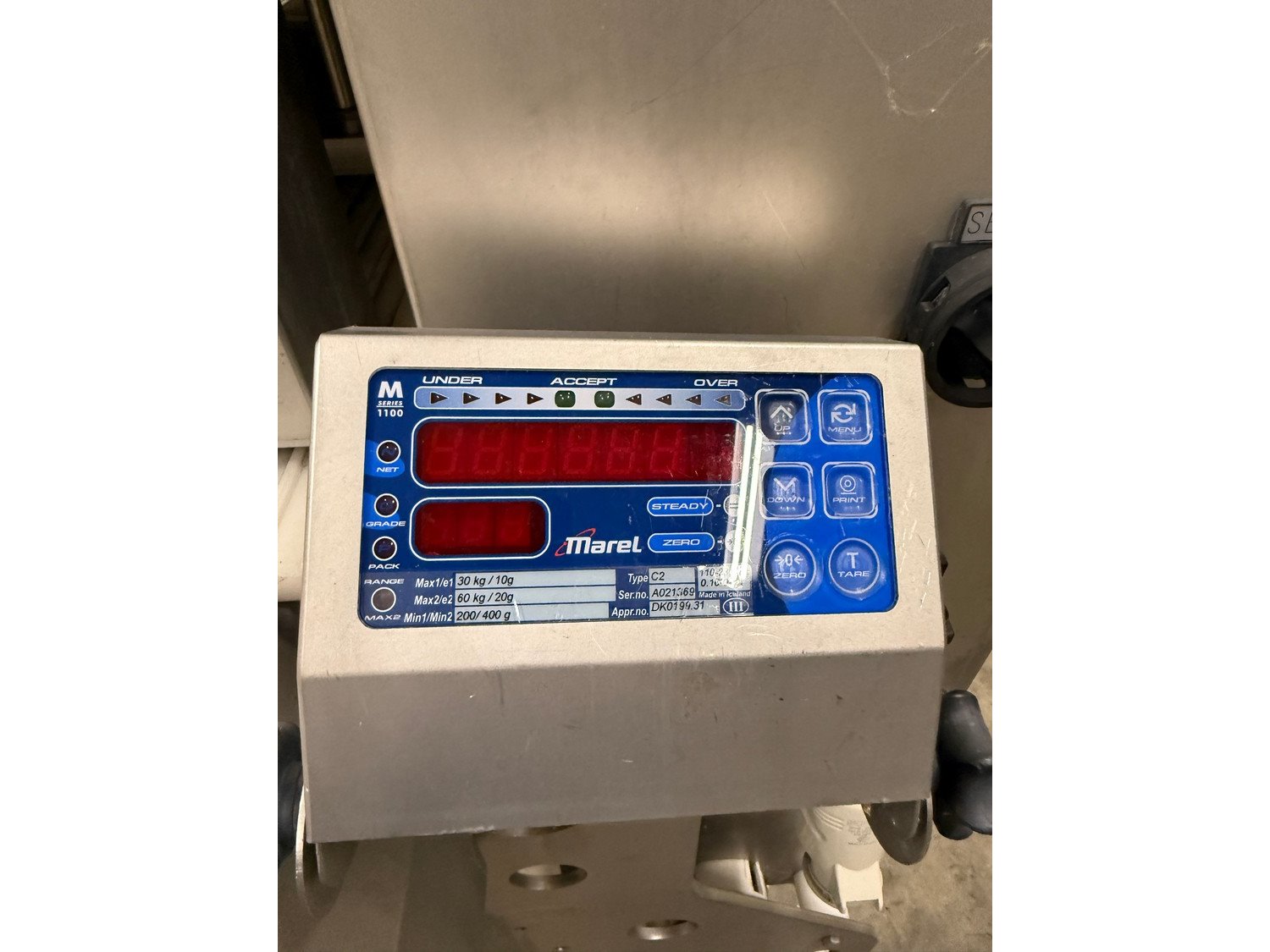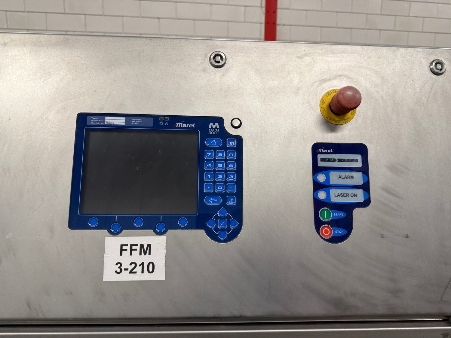 Marel optical portion cutter, type: IPM3 X300, serial number: A030592, year of construction: 2005, 380-480 V, 3 Ph, 10 A, 4 kW, plastic belt, belt width: 280 mm, total dimensions: 3300 mm x 950 mm x 1900 mm. Kavel locatie: Bedrijfsweg 7, 8304 AA Emmeloord, Nederland