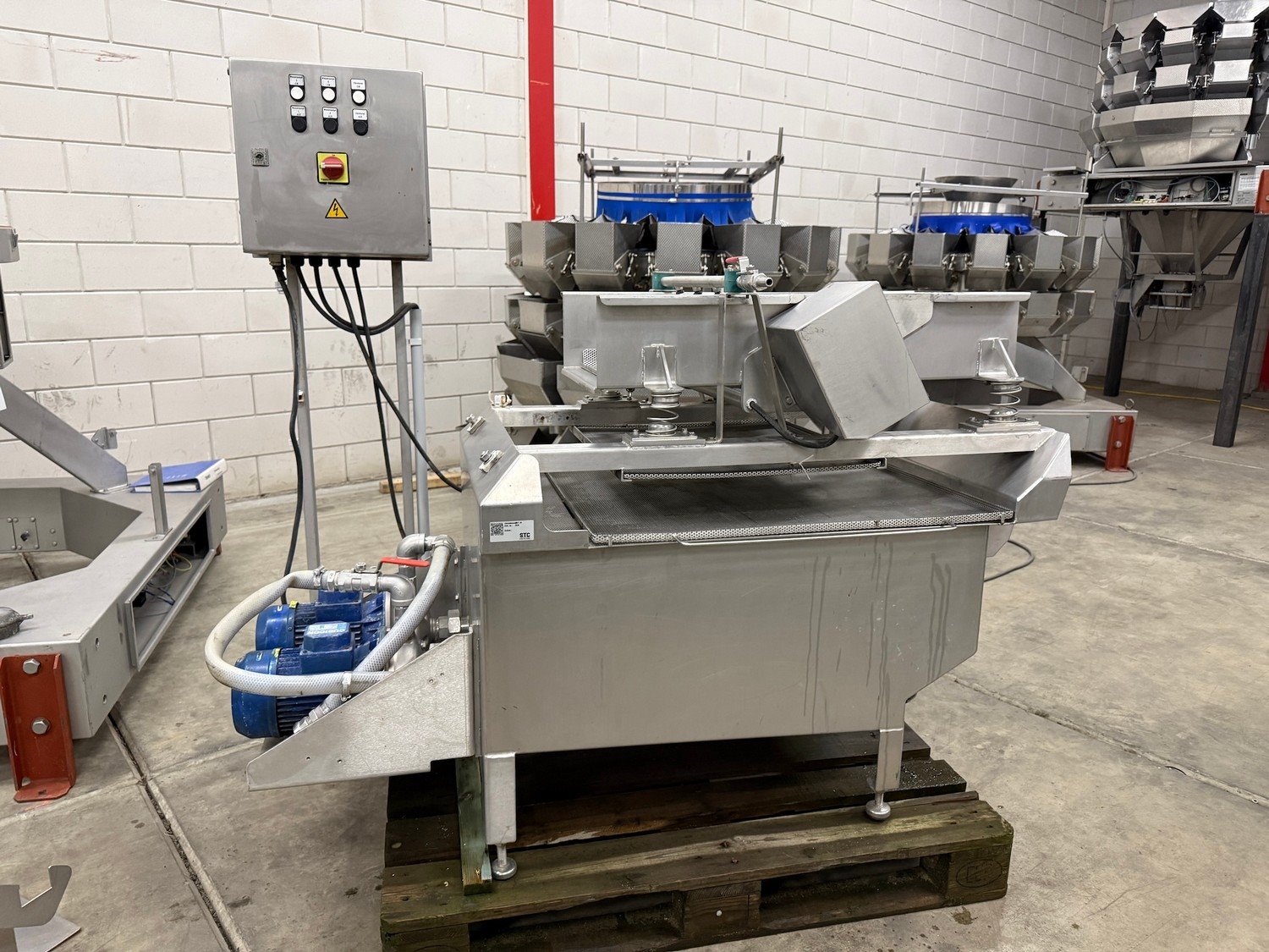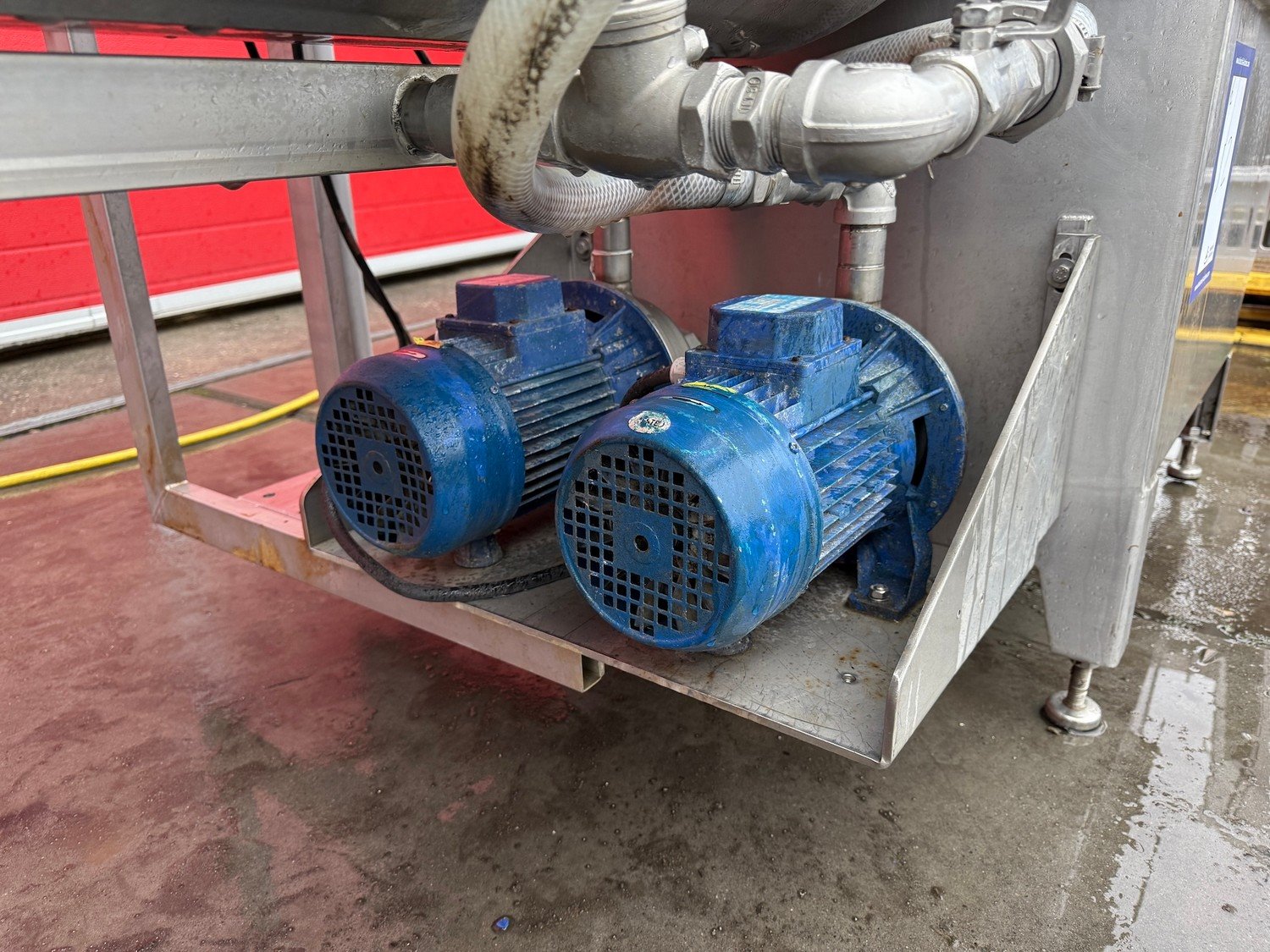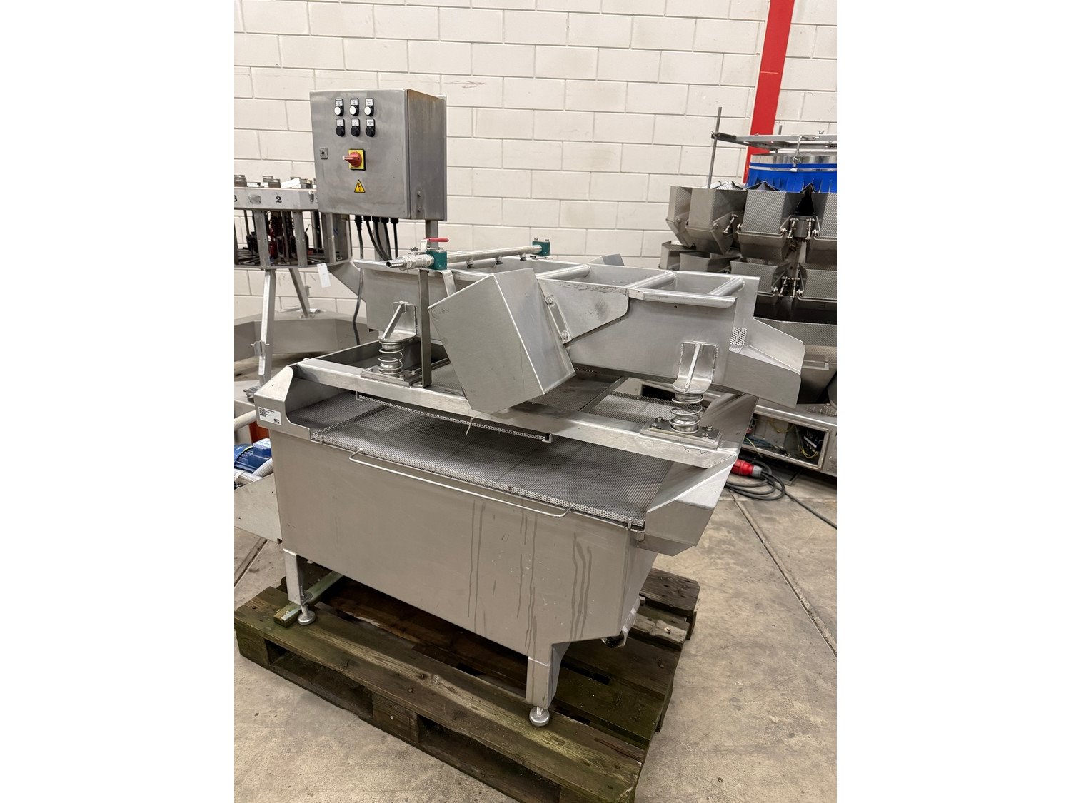 Alexanderwerk vegetable washing tank with vibrating gutter and water filter, dimensions washing tank: 2900 mm x 450 mm x 1100 mm, dimensions vibrating gutter with filter: 1550 mm x 900 mm x 1100 mm. Kavel locatie: Bedrijfsweg 7, 8304 AA Emmeloord, Nederland