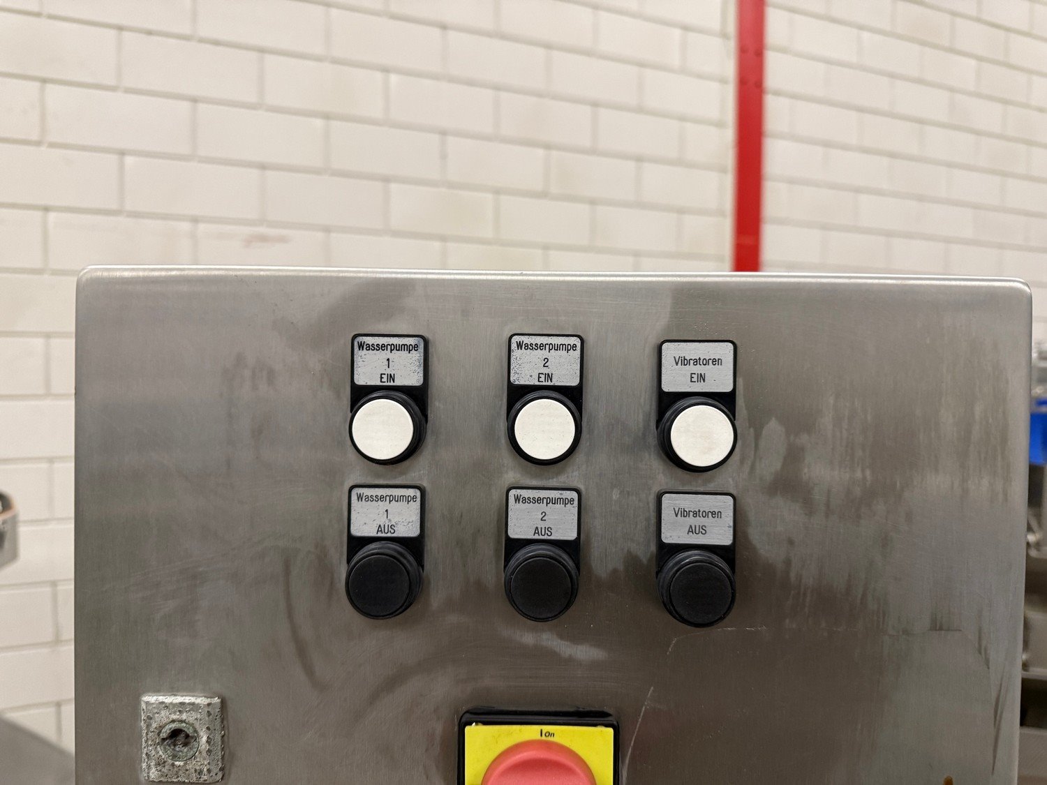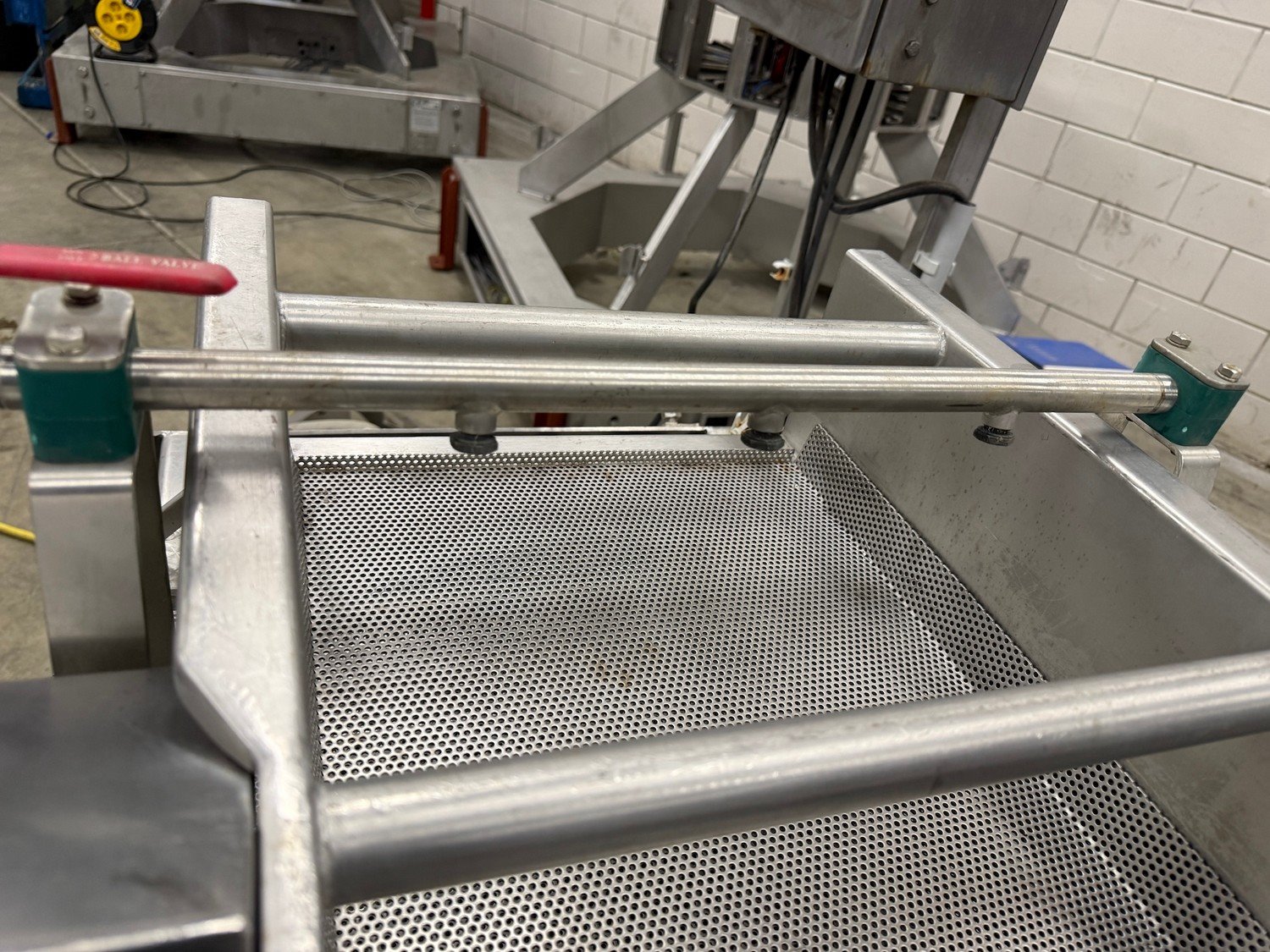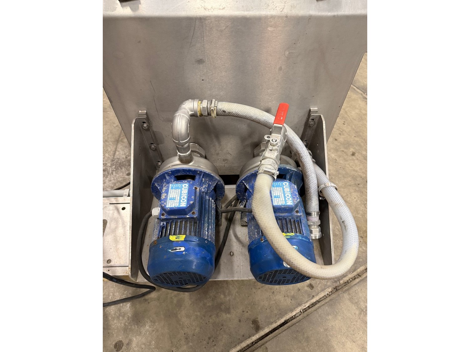 Alexanderwerk vegetable washing tank with vibrating gutter and water filter, dimensions washing tank: 2900 mm x 450 mm x 1100 mm, dimensions vibrating gutter with filter: 1550 mm x 900 mm x 1100 mm. Kavel locatie: Bedrijfsweg 7, 8304 AA Emmeloord, Nederland