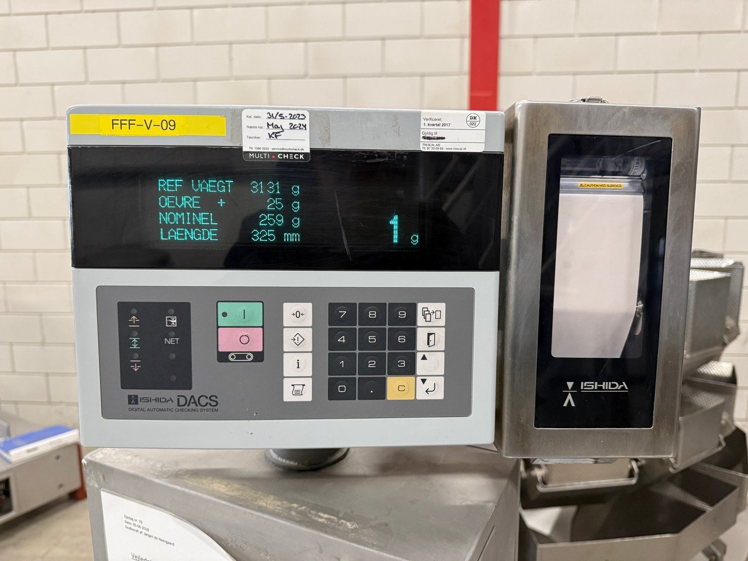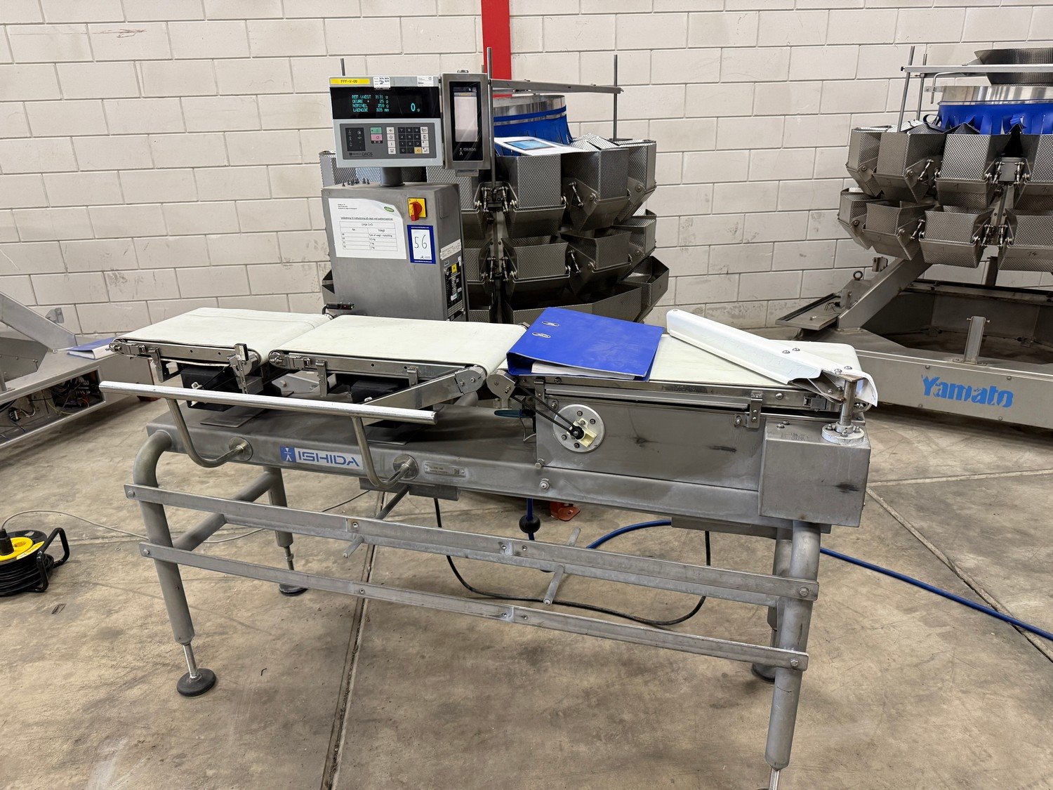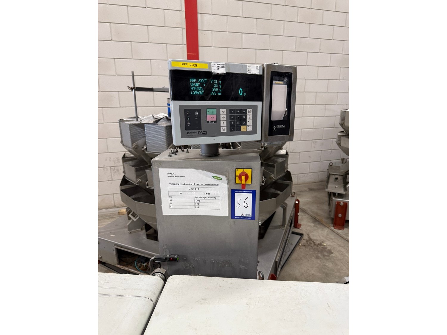 Ishida checkweigher with rejecter, type: DACS-W-030-SB/WP-I-N, serial number: 562484, year of construction: 2012, 240 V, 50 Hz, 2A, maximum weight: 3300 mm, minimum weight: 125 gram, plastic belt, belt width: 300 mm, total dimensions: 1800 mm x 810 mm x 1600 mm. Kavel locatie: Bedrijfsweg 7, 8304 AA Emmeloord, Nederland