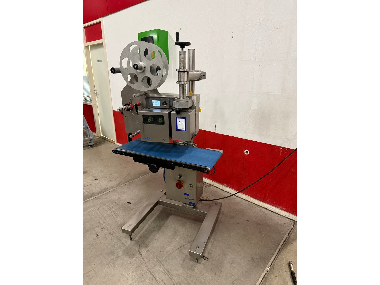 VWS Nederland B.V. labelling machine, model: LPX_Blow 4/300R / H statief_800mmbelt, serial number: LP142852, year of construction: 2014, 230 V, 50-60 Hz, plastic belt, belt width: 295 mm, total dimensions: 700 mm x 800 mm x 1700 mm. Kavel locatie: Bedrijfsweg 7, 8304 AA Emmeloord, Nederland