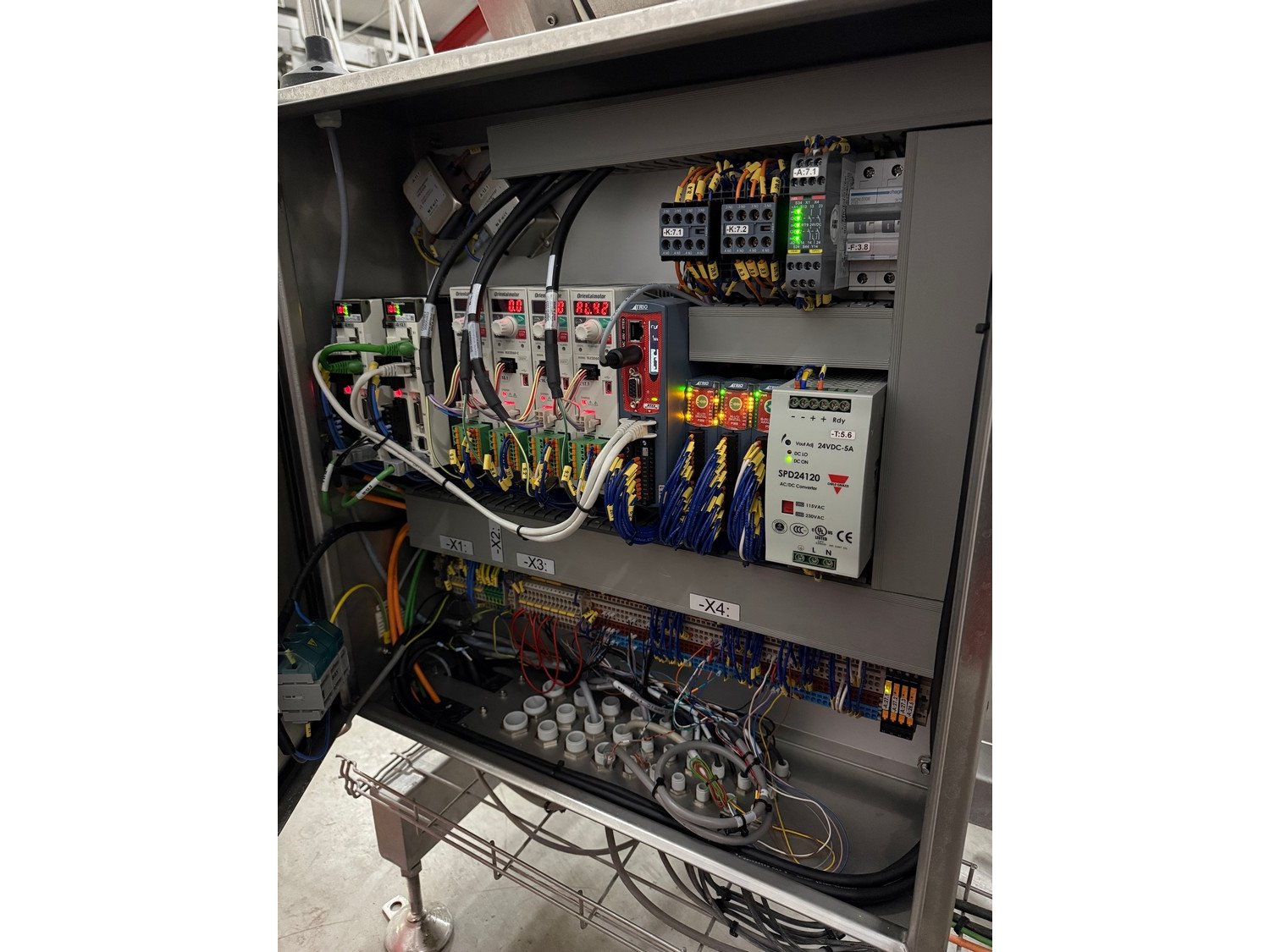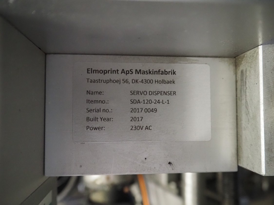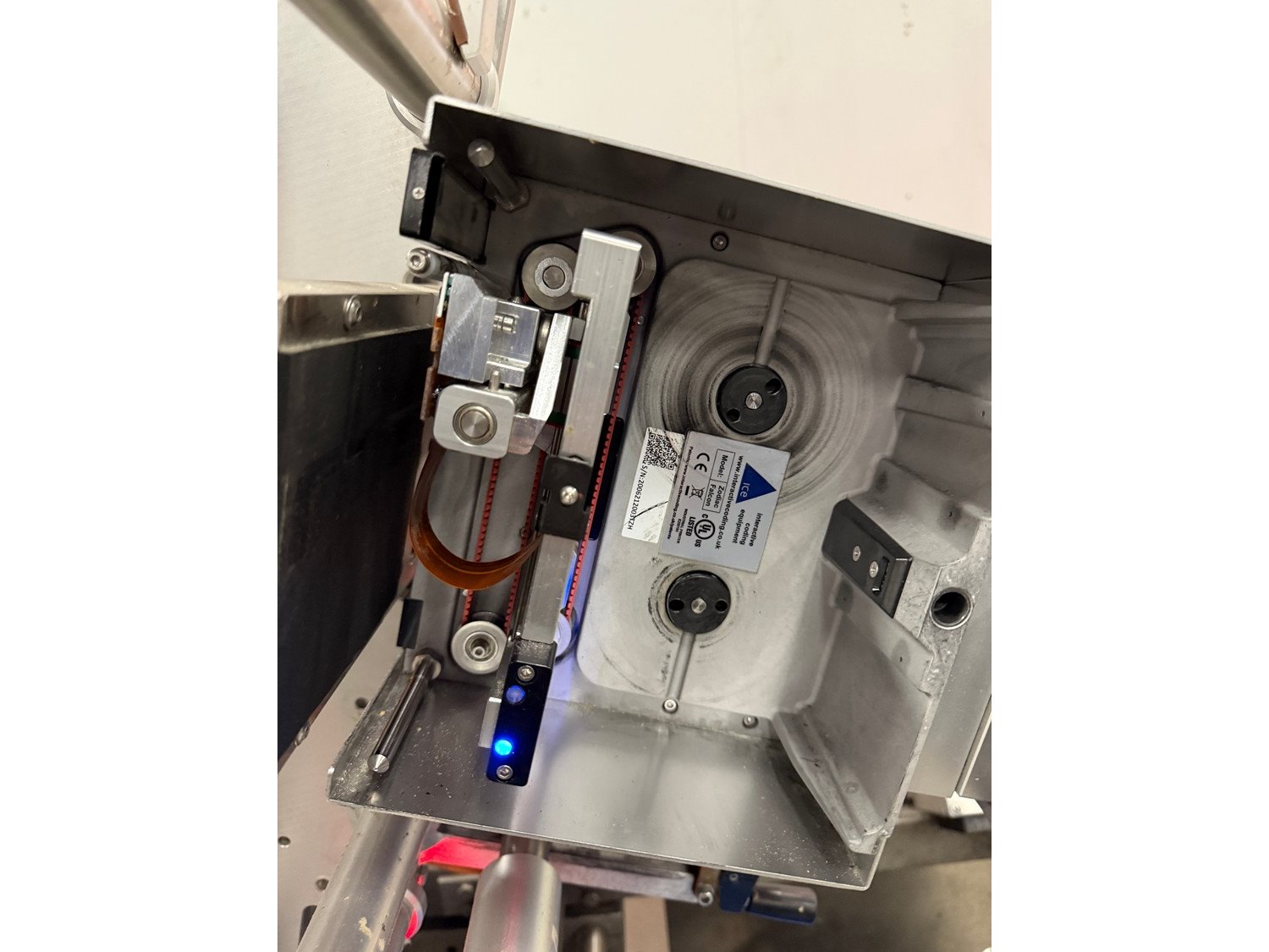 Falcon labelling machine with top and bottom labeller, plastic belt, belt width: 240 mm, total dimensions: 1600 mm x 800 mm x 1750 mm. Kavel locatie: Bedrijfsweg 7, 8304 AA Emmeloord, Nederland