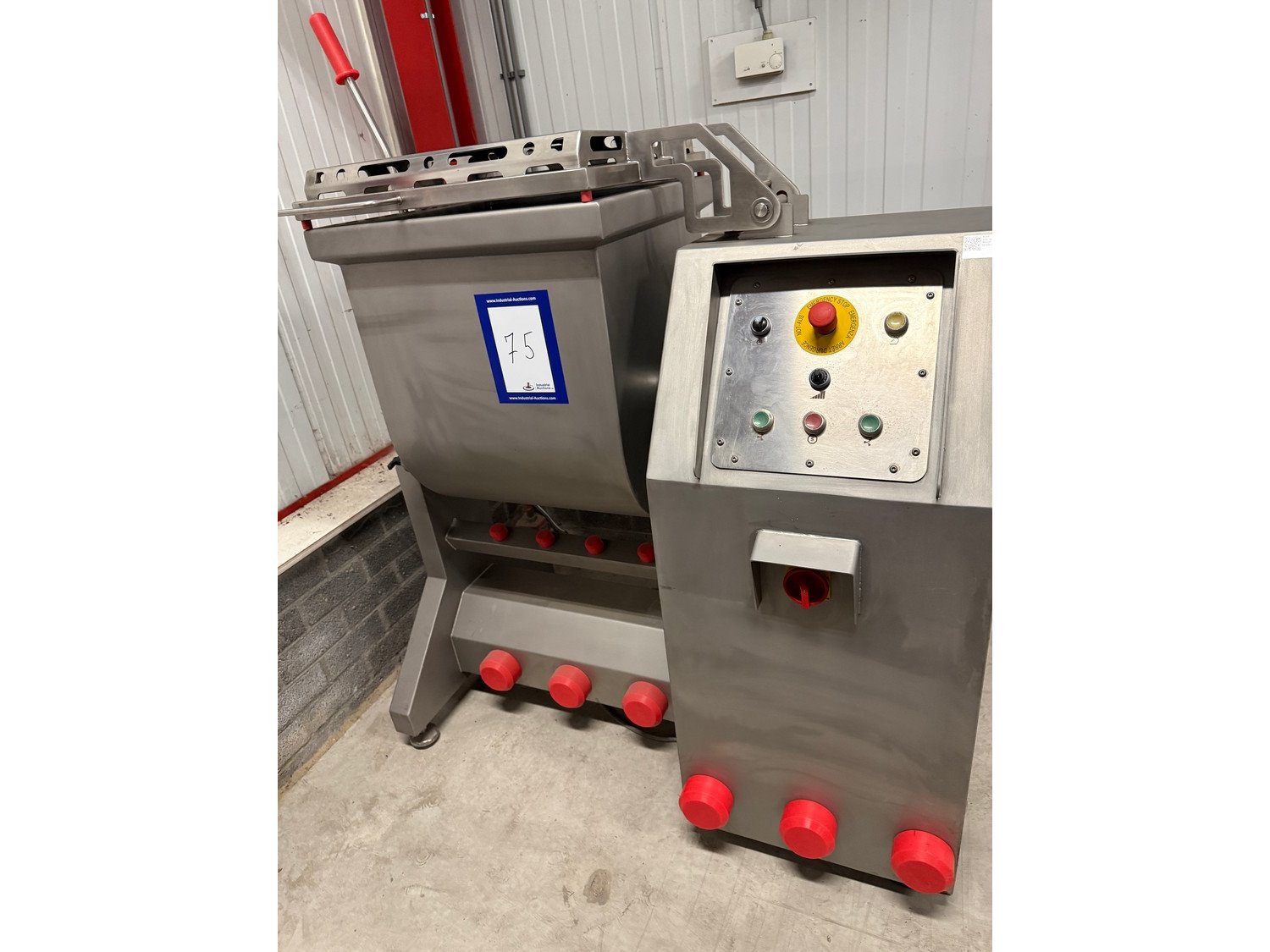 Niro-tech tiltable paddle-mixer, type: RX-150, inside dimensions: 520 mm x 500 mm x 500 mm, total dimensions: 700 mm x 1400 mm x 1640 mm. Kavel locatie: Bedrijfsweg 7, 8304 AA Emmeloord, Nederland