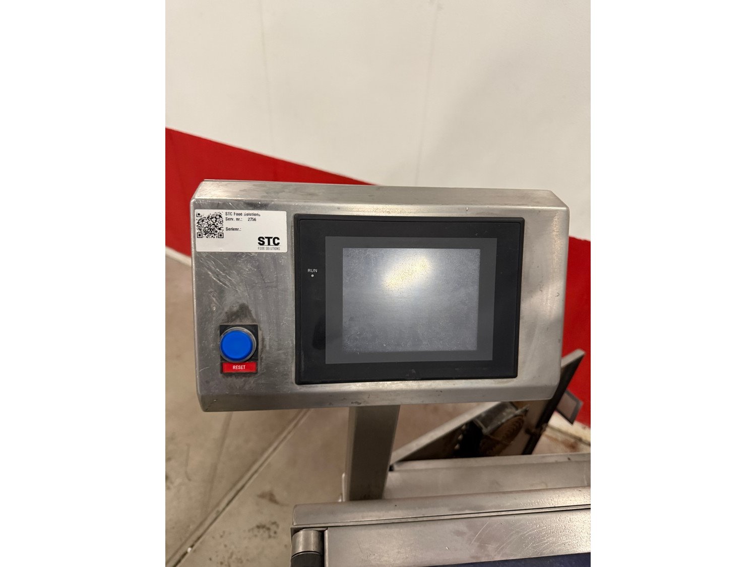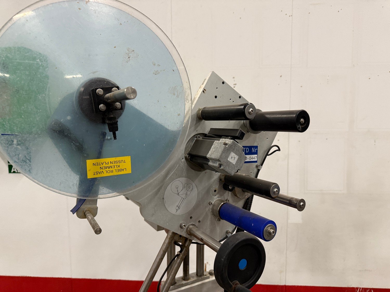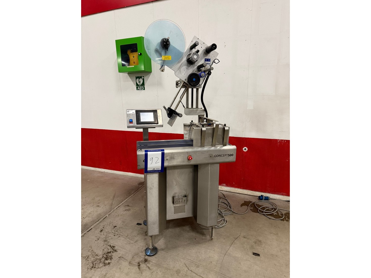 Marel labelling machine, model: CONCEPT 500, serial number: LA0533, year of construction: 2012, 230 V, 50/60 Hz, 4 A, 1 kW, plastic belt, belt width: (2x) 110 mm, total dimensions: 750 mm x 850 mm x 1830 mm. Kavel locatie: Bedrijfsweg 7, 8304 AA Emmeloord, Nederland