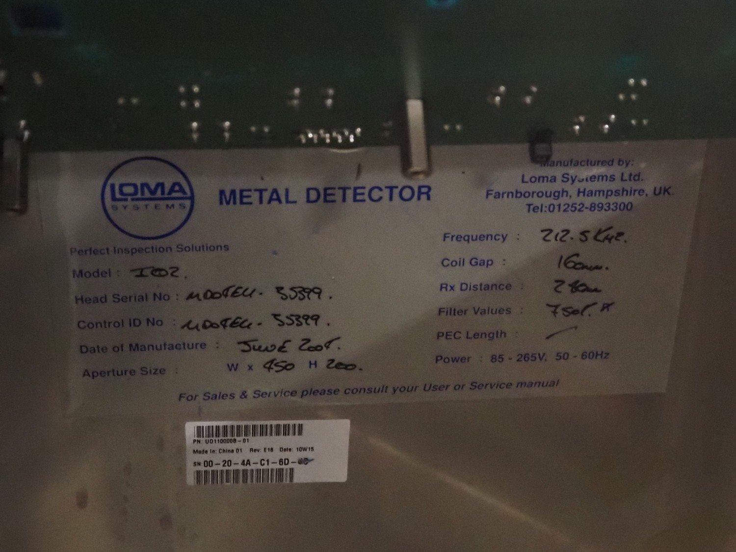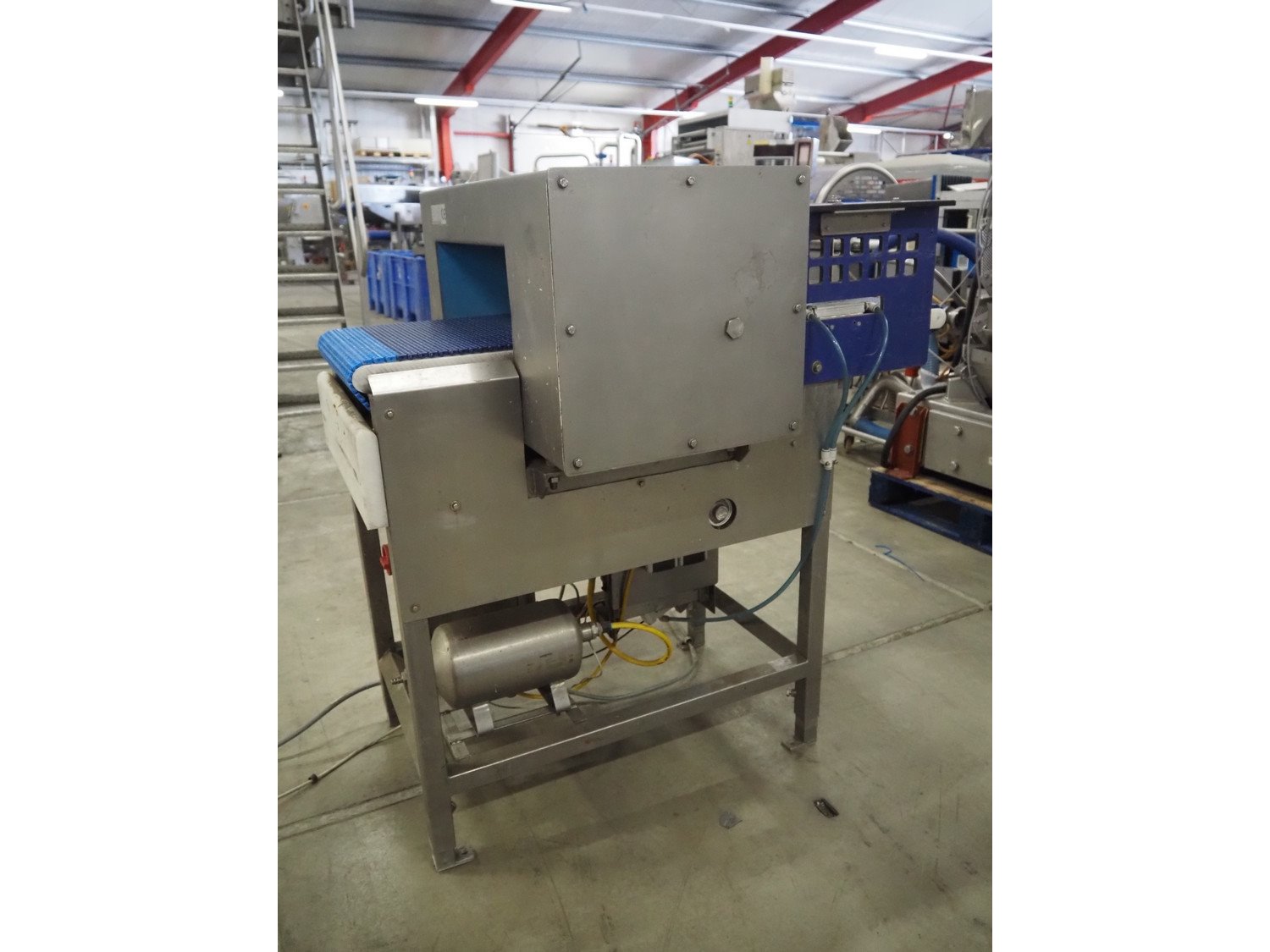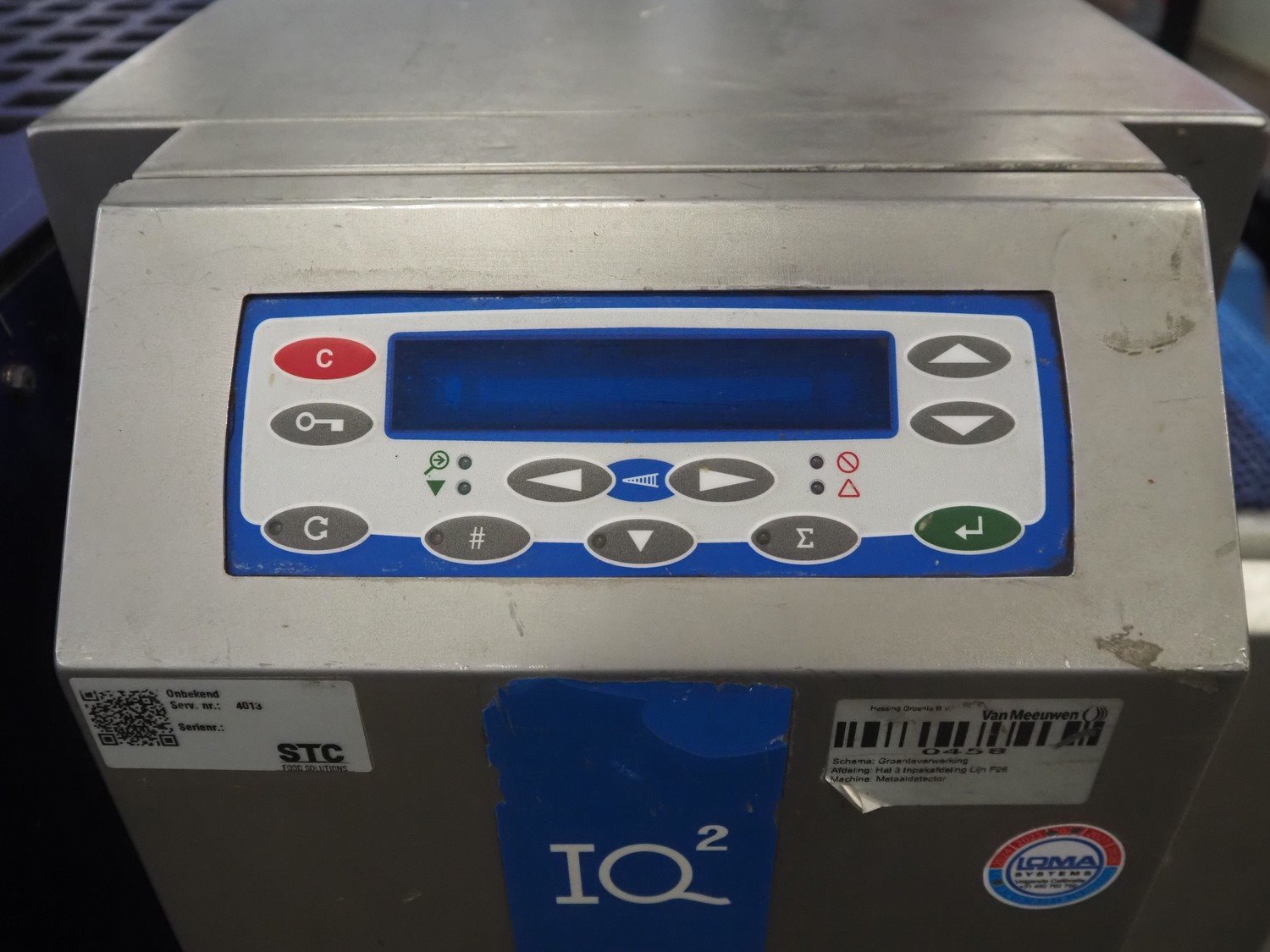 Loma Systems metal detector, model: IQ2, serial number: 11143, year of construction: 2004, 400 V, 3 Ph, 0.35 kW, plastic mesh belt, belt width: 400 mm, clearance: 450 mm x 150 mm, total dimensions: 1200 mm x 950 mm x 1150 mm. Kavel locatie: Bedrijfsweg 7, 8304 AA Emmeloord, Nederland