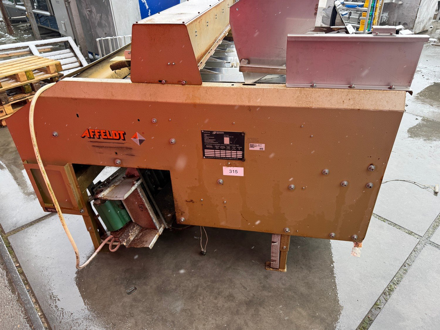 Affeldt 10-lanes lineair weigher, lane width: 120 mm, total dimensions: 1800 mm x 1500 mm x 1400 mm. Kavel locatie: Bedrijfsweg 7, 8304 AA Emmeloord, Nederland