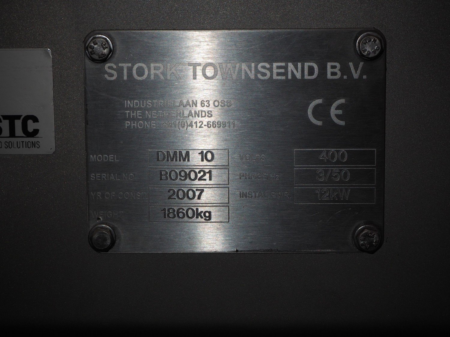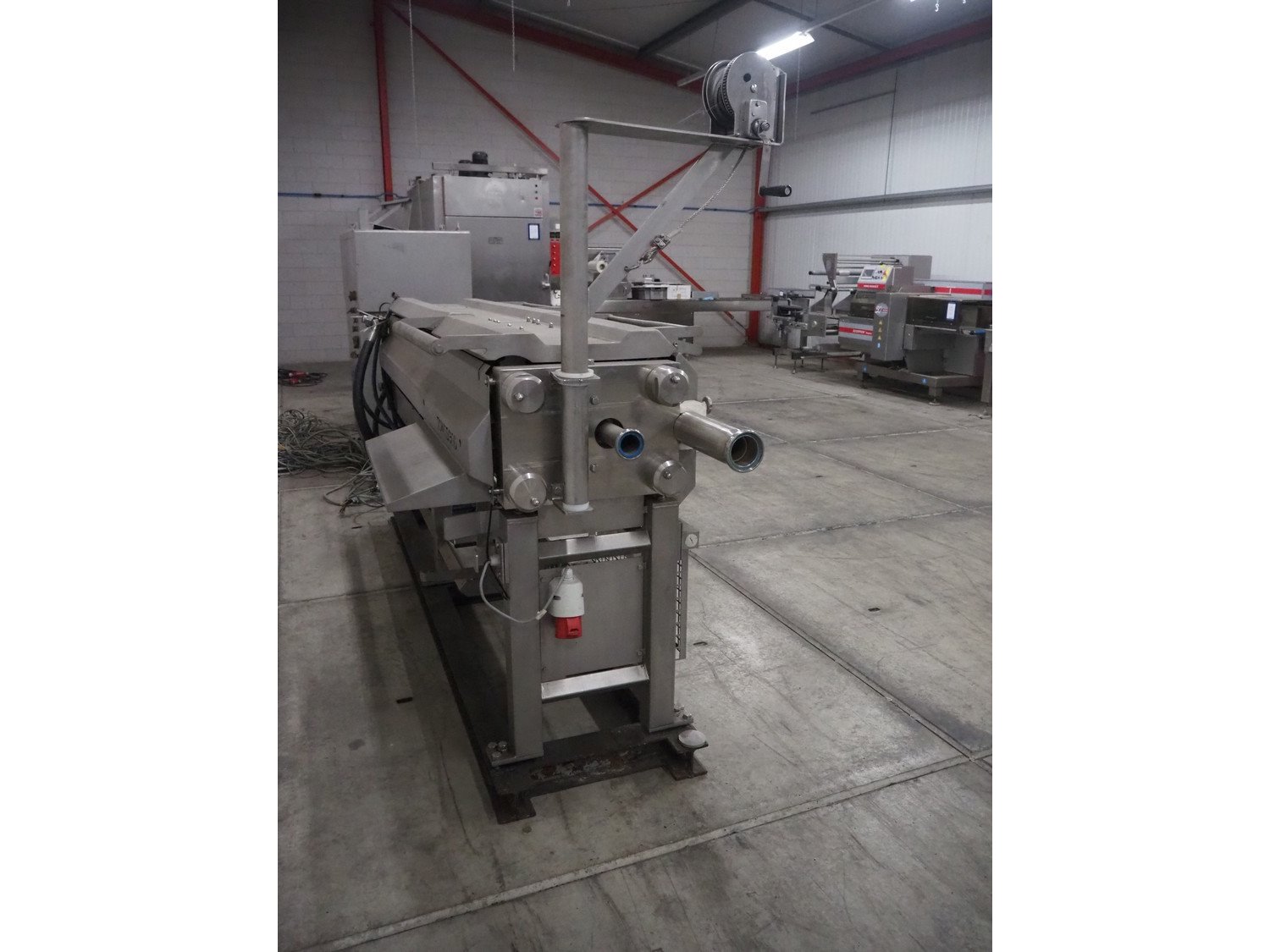 Stork Townsend B.V. meat harvester, model: DMM 10, serial number: B09021, year of construction: 2007, 400 V, 3 Ph, 50 Hz, 12 kW, 1860 kg, ø chamber: 215 mm, length: 450 mm, ø filter: 5 mm, total dimensions: 3200 mm x 1000 mm x 2000 mm, Denison hydraulics hydraulic unit, type: N19 - 01334-A, year of construction: 15-09-2006, dimensions: 1650 mm x 800 mm x 1900, including s/s switch cabinet, dimensions: 850 mm x 400 mm x 1800 mm. Kavel locatie: Bedrijfsweg 7, 8304 AA Emmeloord, Nederland
