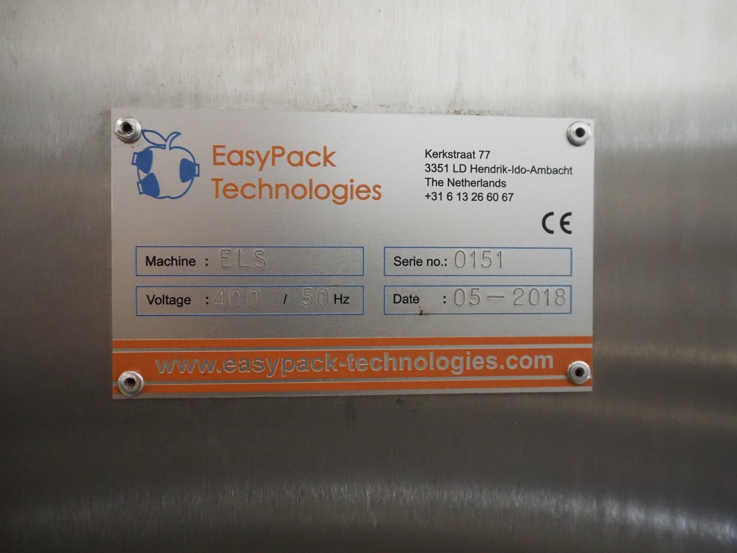 EasyPack Technologies bag filling machine, type: ELS, serial number: 0151, year of construction: 05-2018, 400 V, 50 Hz, plastic mesh belt, belt width: 220 mm, total dimensions: 5200 mm x 2000 mm x 1800 mm. Kavel locatie: Bedrijfsweg 7, 8304 AA Emmeloord, Nederland