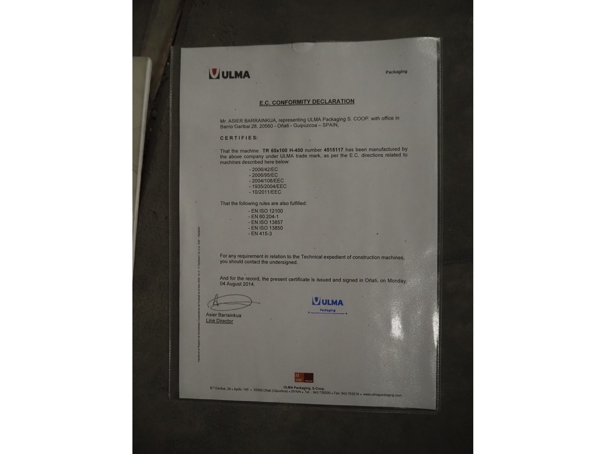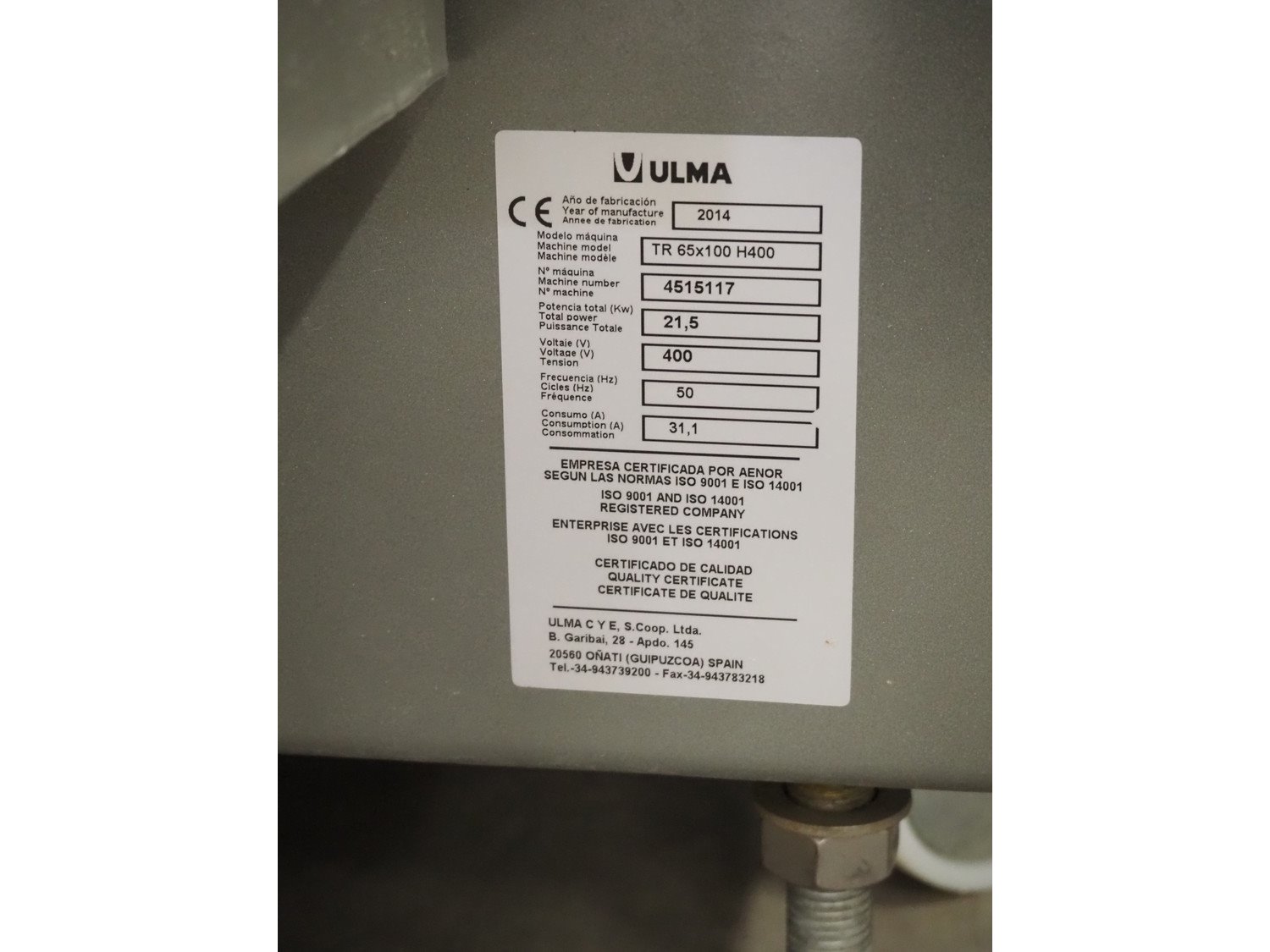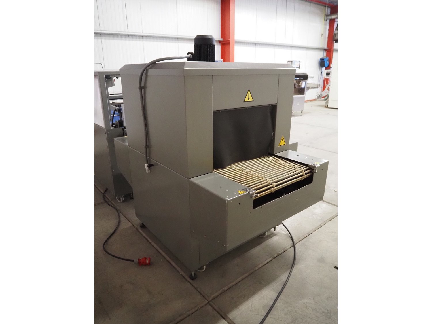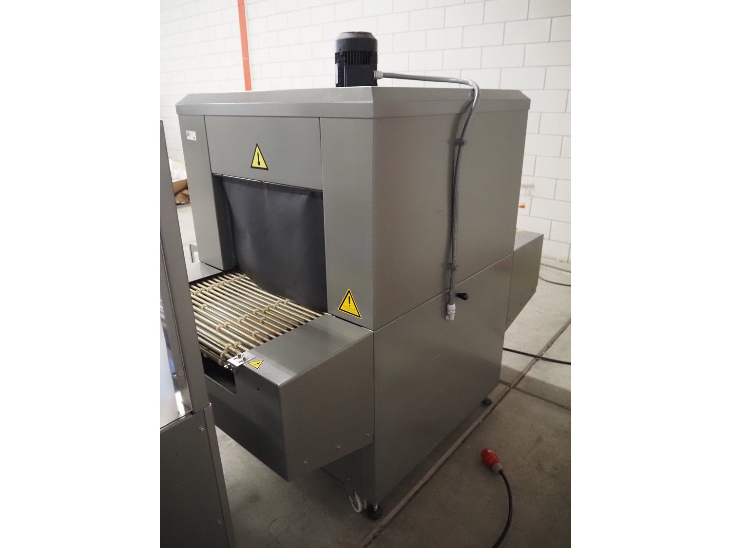 Ulma mobile shrink tunnel, model: TR 65x100 H400, machine number: 4515117, year of construction: 2014, 400 V, 50 Hz, 31.1 A, 21.5 kW, steel belt, belt width: 645 mm, clearance: 640 mm x 430 mm, total dimensions: 1800 mm x 1400 mm x 1800 mm. Kavel locatie: Bedrijfsweg 7, 8304 AA Emmeloord, Nederland