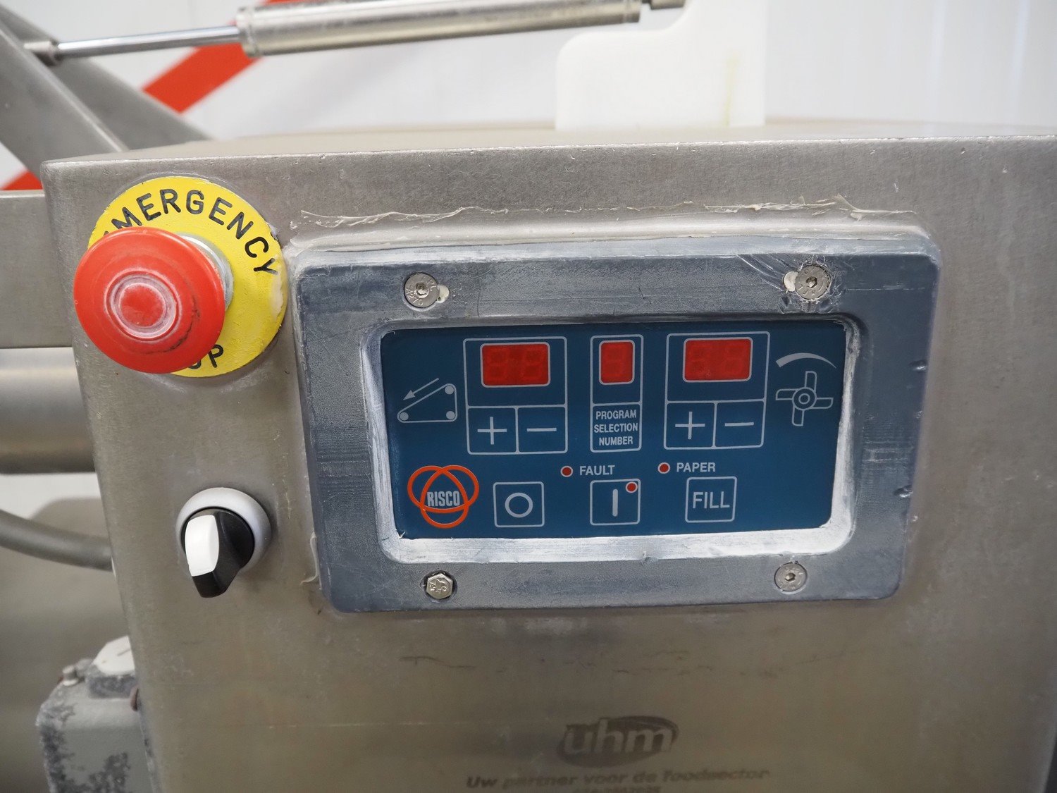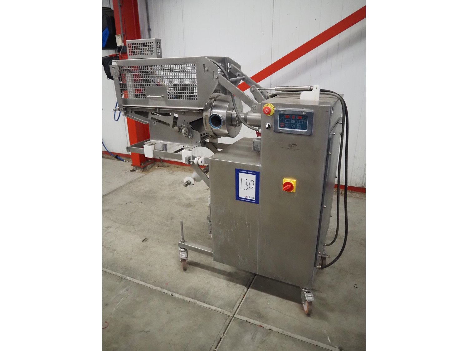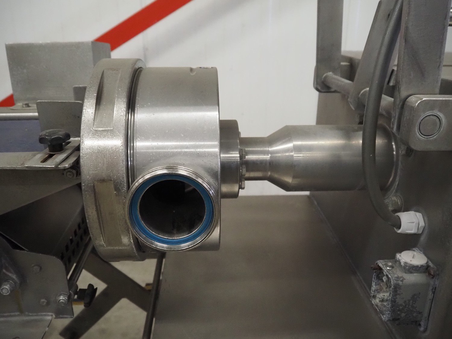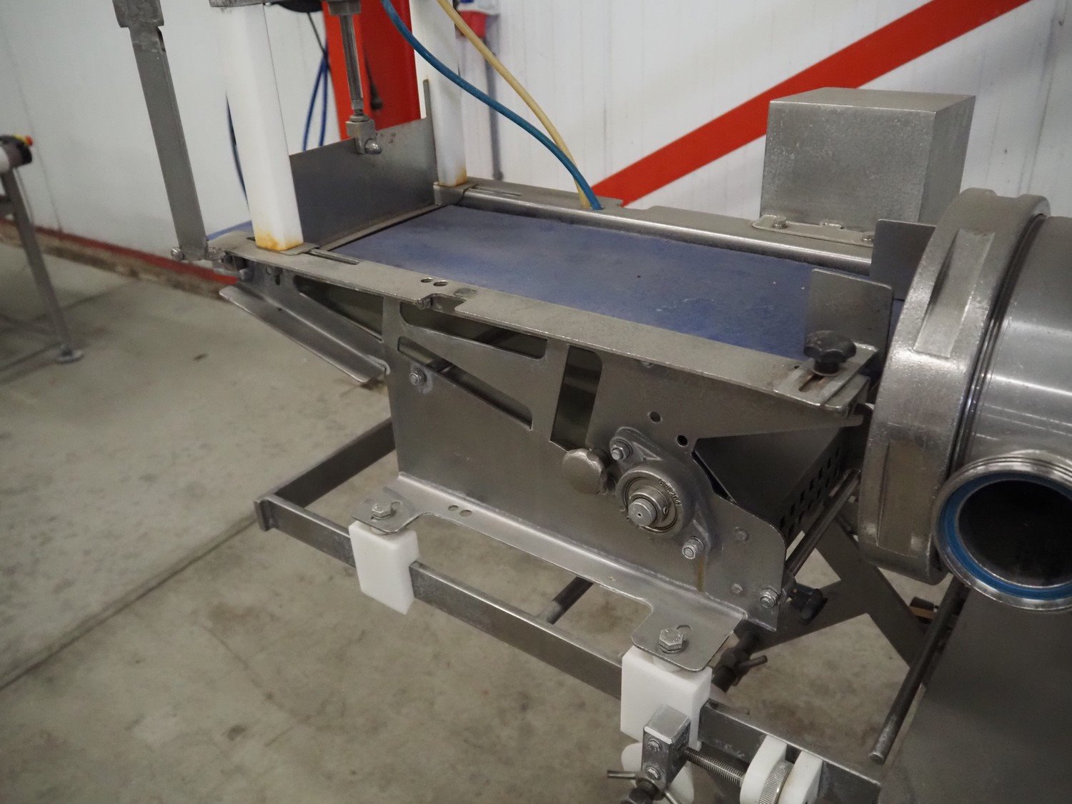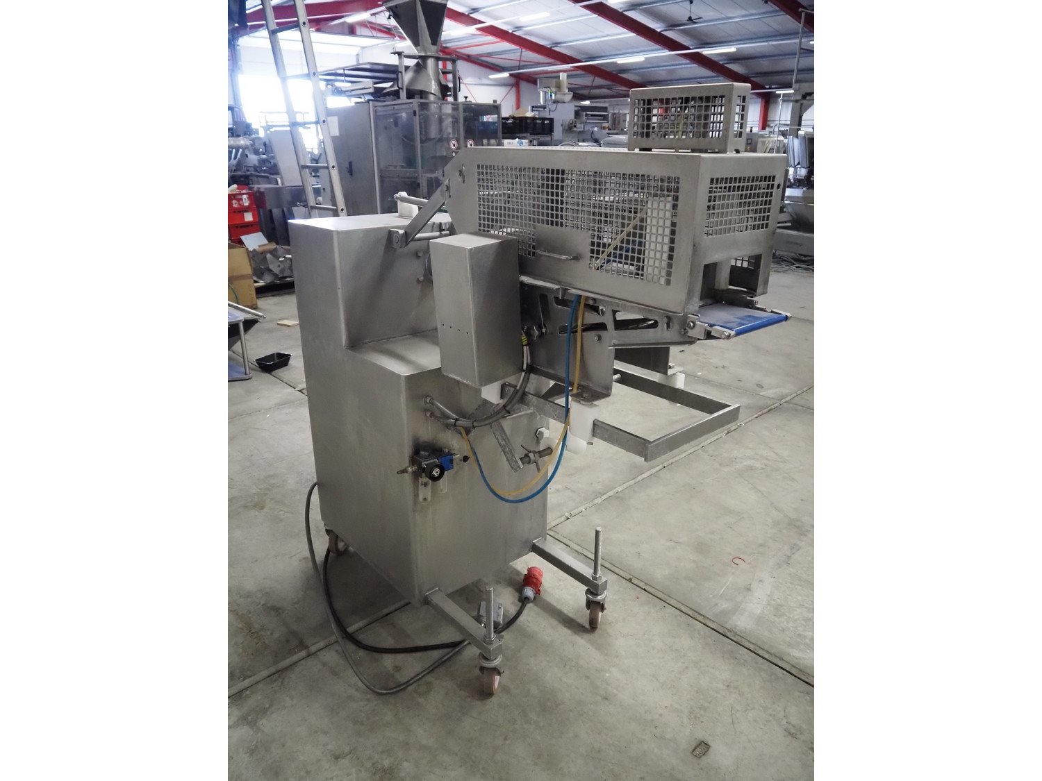 Risco mobile portioning machine for minced meat, type: RS 914, serial number: P510003, year of construction: 2010, 400 V, 3 Ph, 50 Hz, plastic belt, belt width: 180 mm, knife width: 180 mm, total dimensions: 1450 mm x 600 mm x 1580 mm. Kavel locatie: Bedrijfsweg 7, 8304 AA Emmeloord, Nederland