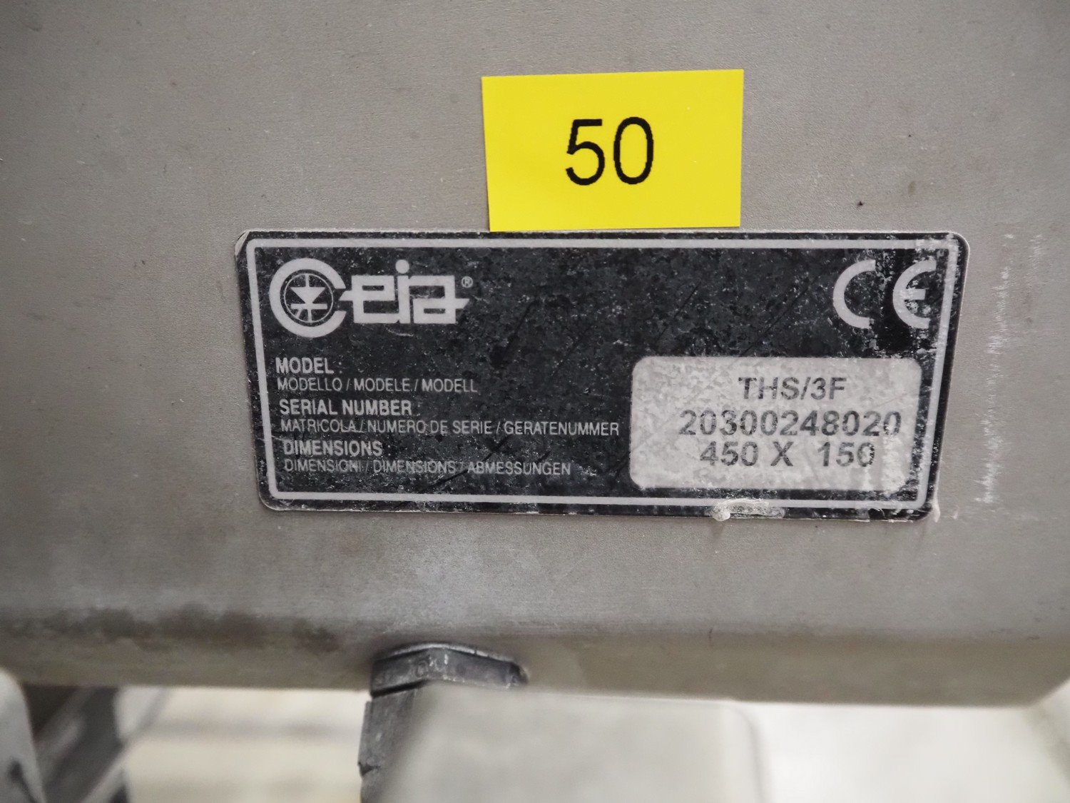Ceia metal detector, model: THS/3F, serial number: 20300248020, plastic belt, belt width: 400 mm, clearance: 450 mm x 130 mm, total dimensions: 1500 mm x 850 mm x 1430 mm. Last calibrated: 2023. Kavel locatie: Bedrijfsweg 7, 8304 AA Emmeloord, Nederland