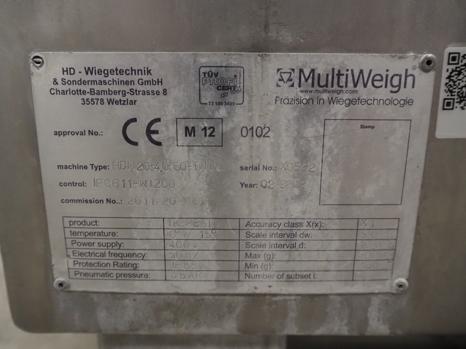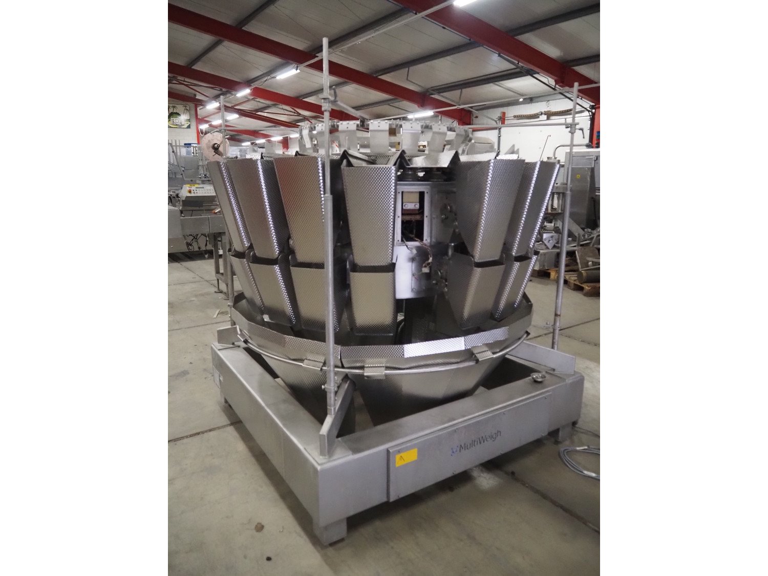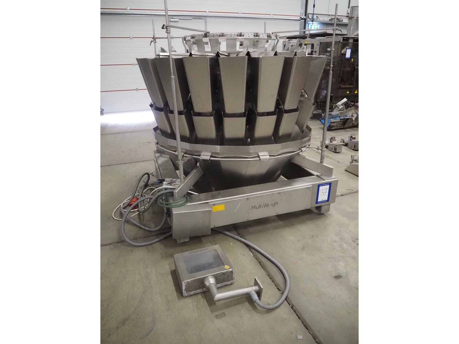 MultiWeigh 20-heads multihead weigher, type: HDW20-4.0-60-TWIN, serial number: X0592, year of construction: 02.2012, 400 V, 50 Hz, weighing range: 230-5000 g, scale interval d: 5.0 g, scale interval d: 10.0 g, temperature range: 0 C°-15 C°, dimensions: 1600 mm x 1600 mm x 1820 mm. Kavel locatie: Bedrijfsweg 7, 8304 AA Emmeloord, Nederland