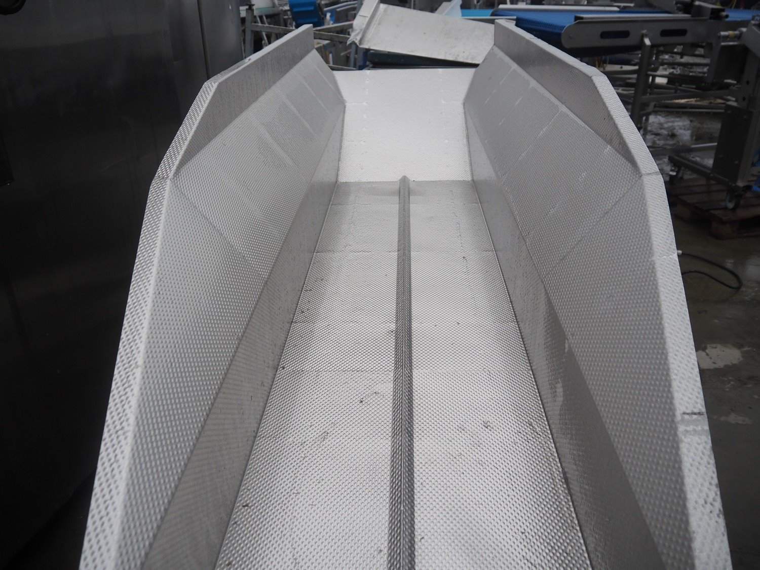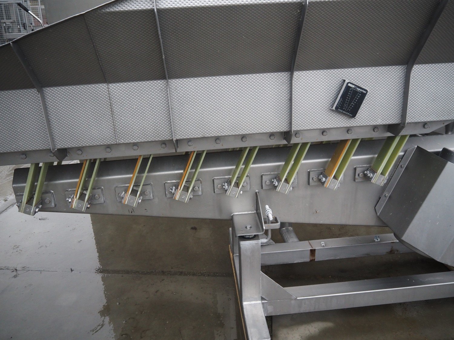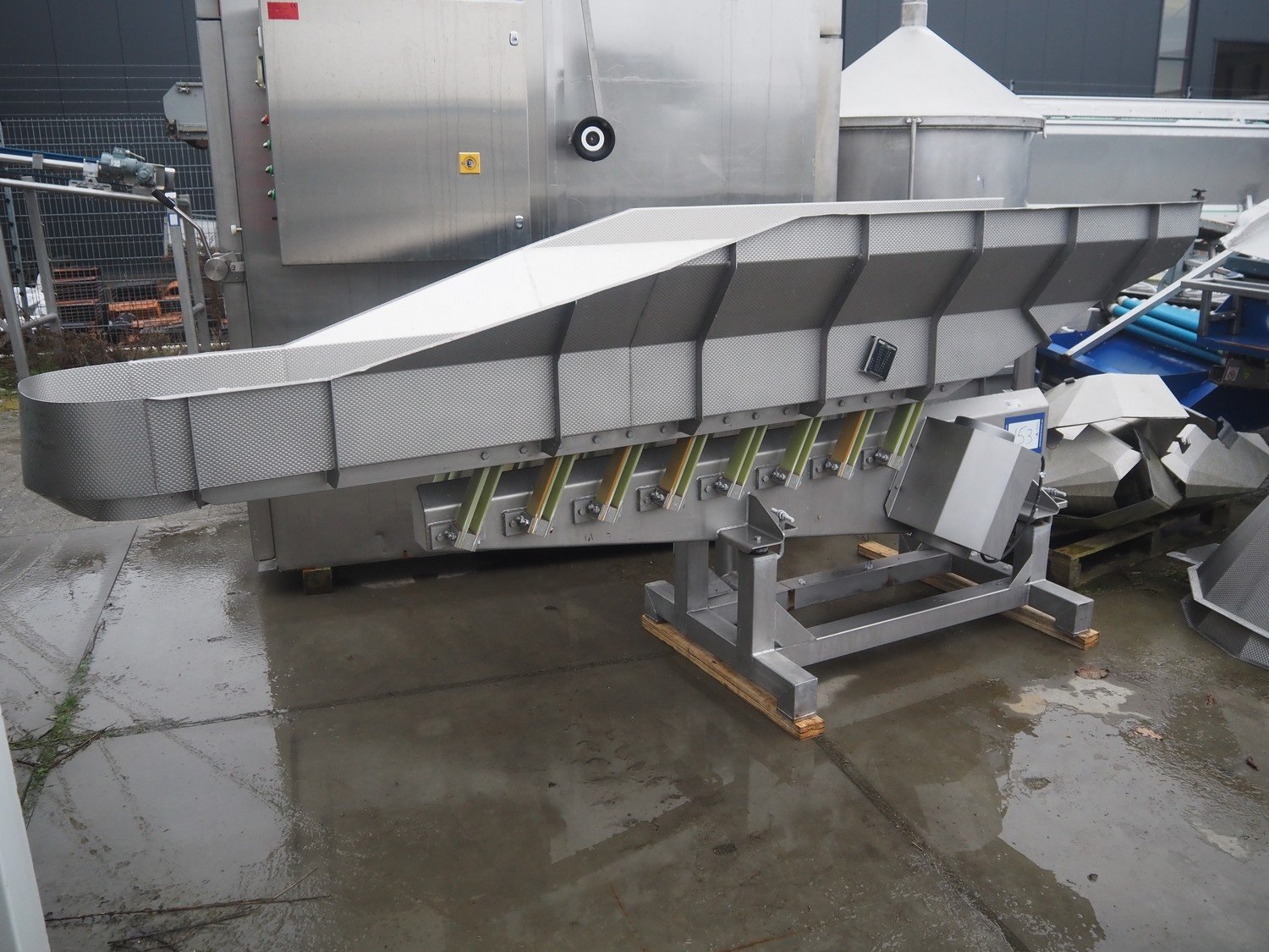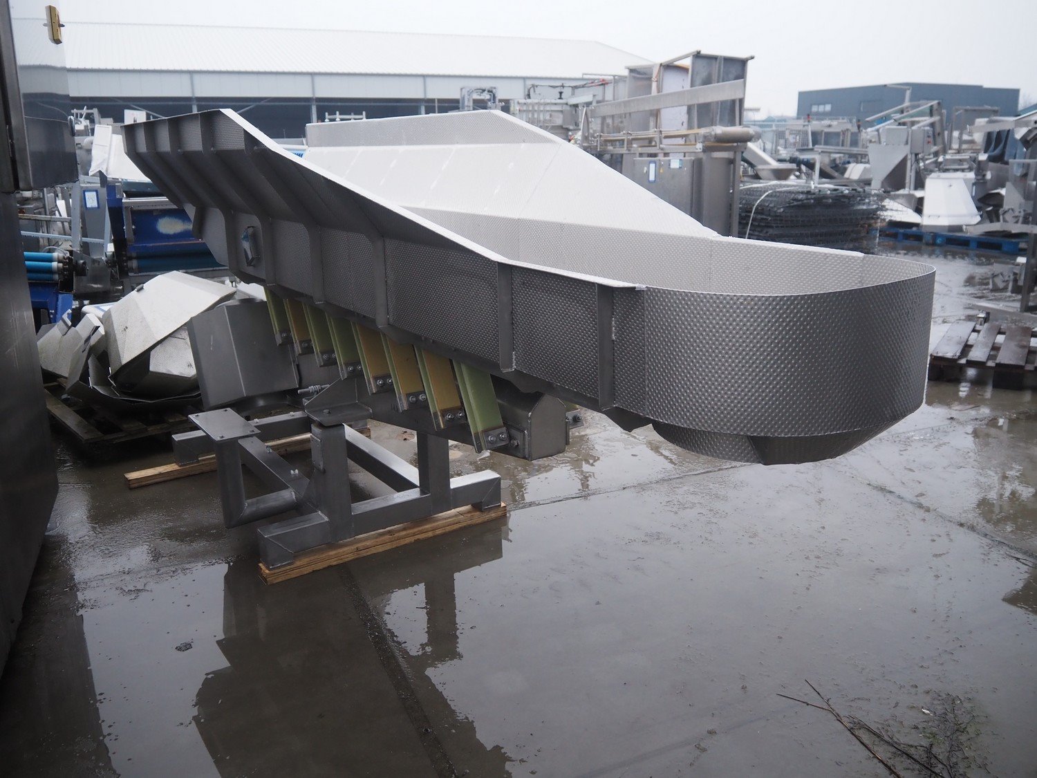 Key Technology vibrating gutter, type: MVSSF, year of construction: 2000, gutter width: 480 mm, total dimensions: 3200 mm x 900 mm x 2420 mm. Kavel locatie: Bedrijfsweg 7, 8304 AA Emmeloord, Nederland