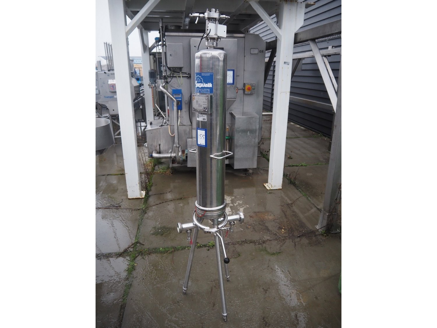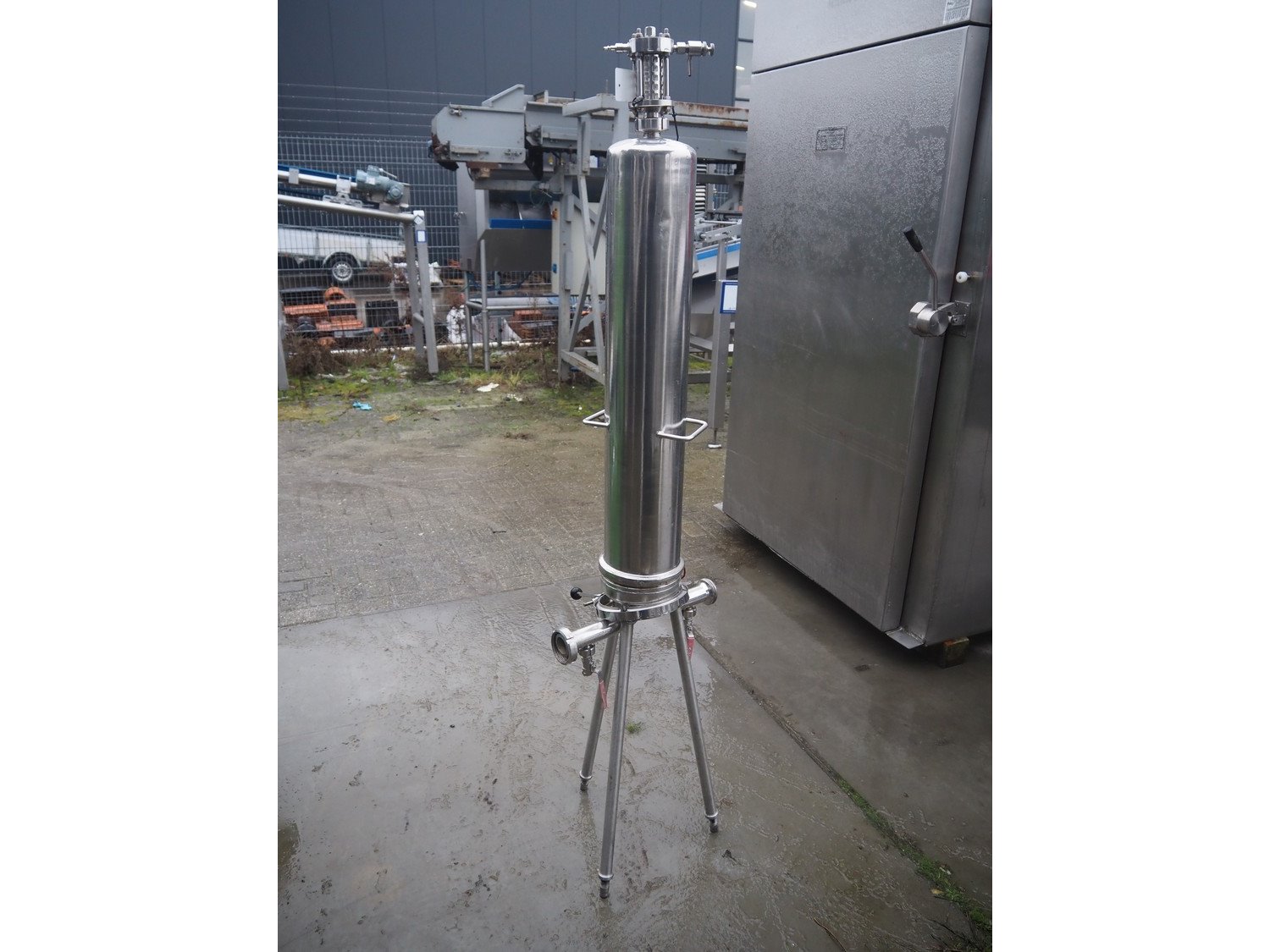 Sartorius pressure filter, type: 30312, year of construction: 1987, max pressure: 8 bar, capacity: 17 liter, dimensions: 430 mm x 450 mm x 1800 mm. Kavel locatie: Bedrijfsweg 7, 8304 AA Emmeloord, Nederland
