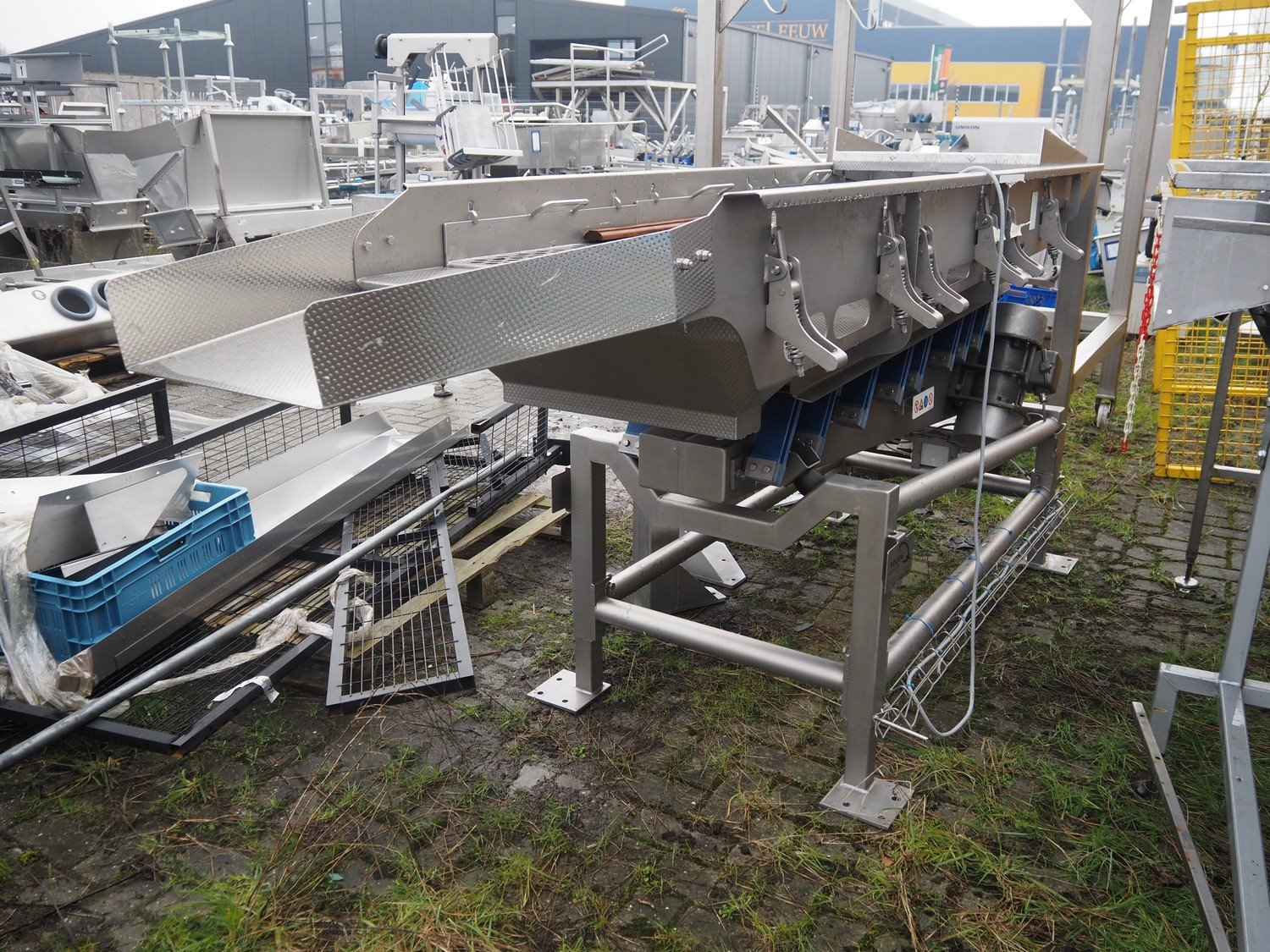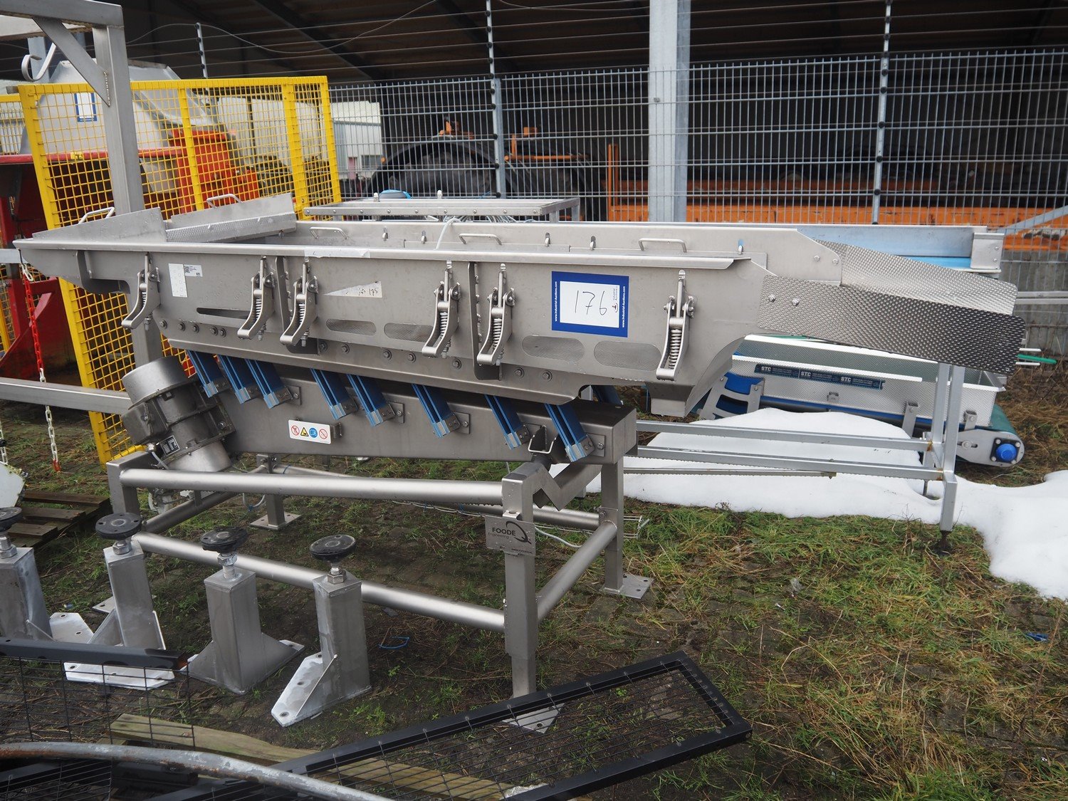 Foodeq s/s vibrating gutter, type: STR 600/2500, serial number: 12004, year of construction: 2012, gutter width: 600 mm, total dimensions: 3000 mm x 960 mm x 1240 mm. Kavel locatie: Bedrijfsweg 7, 8304 AA Emmeloord, Nederland