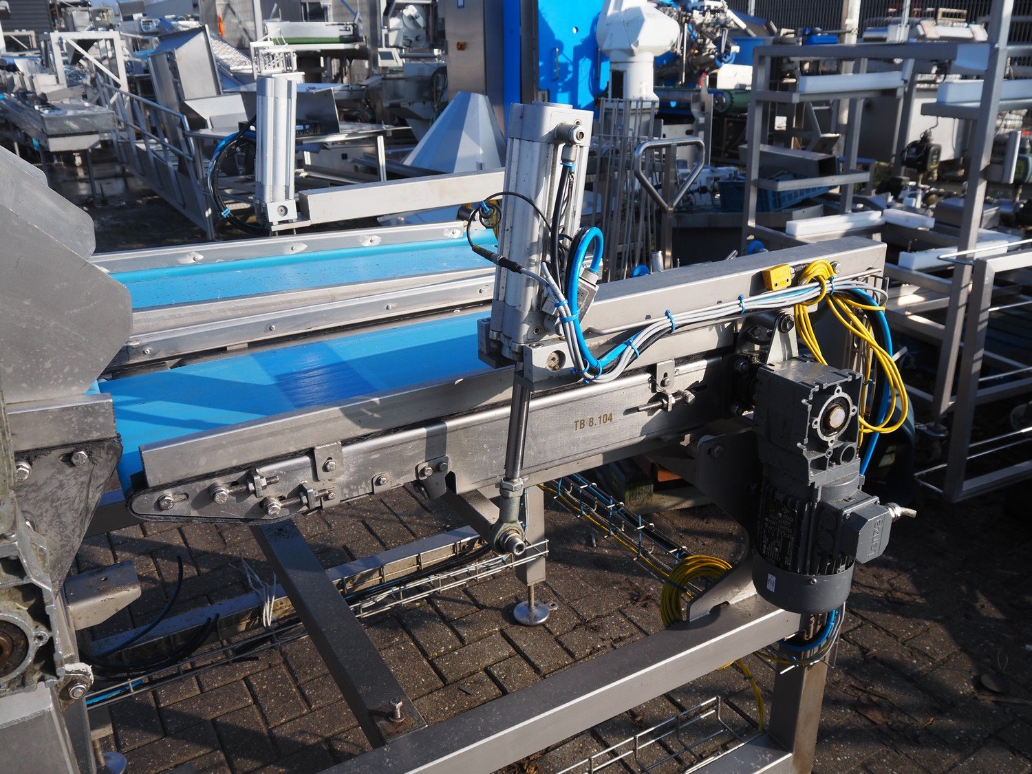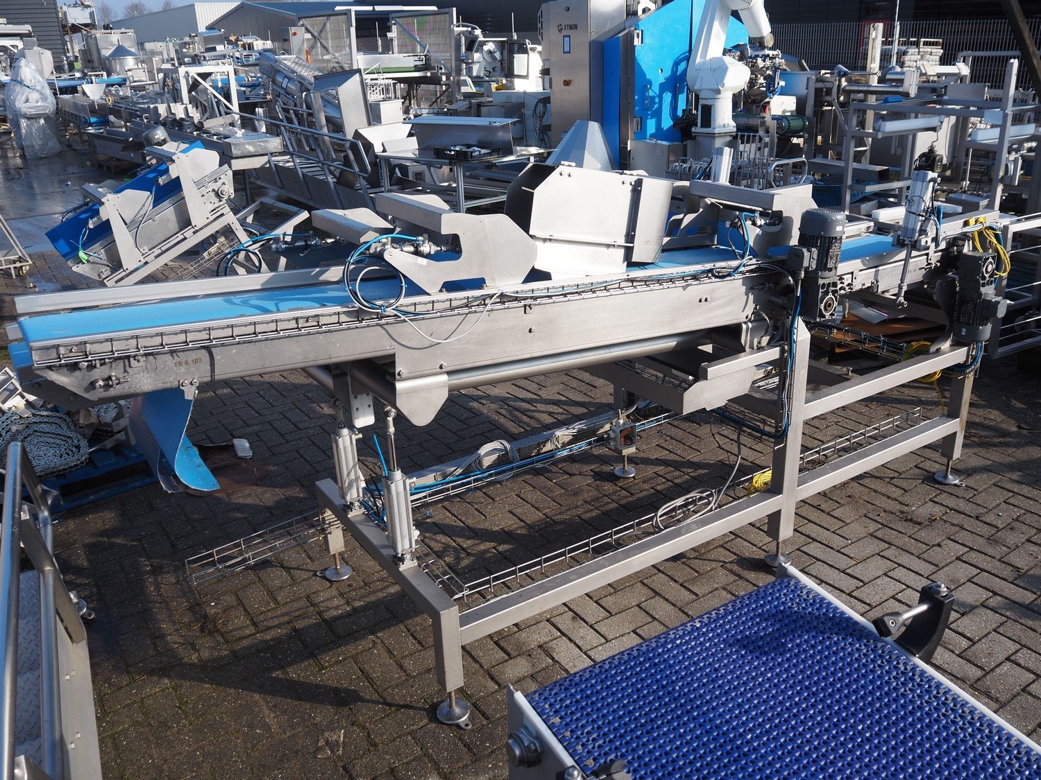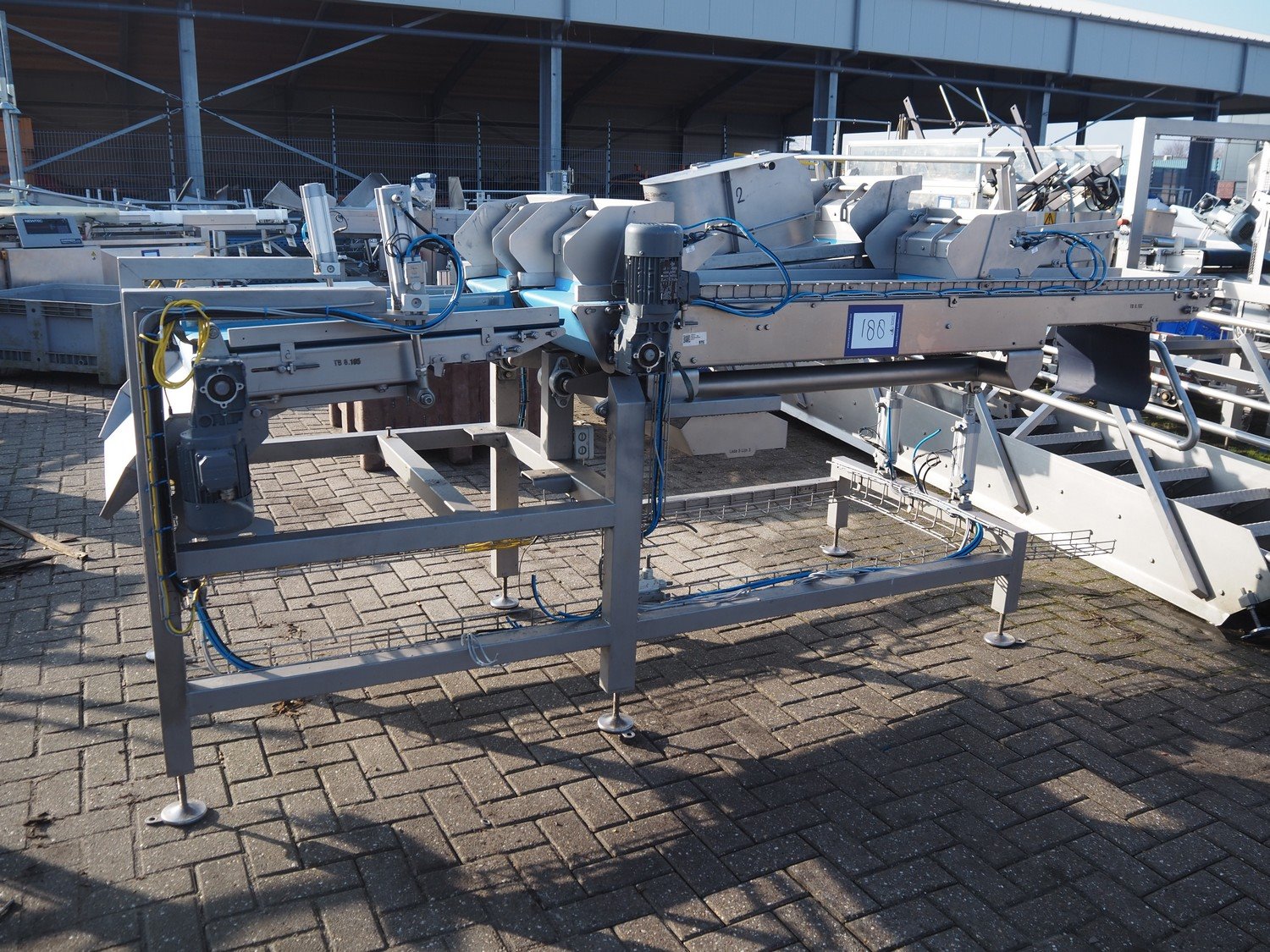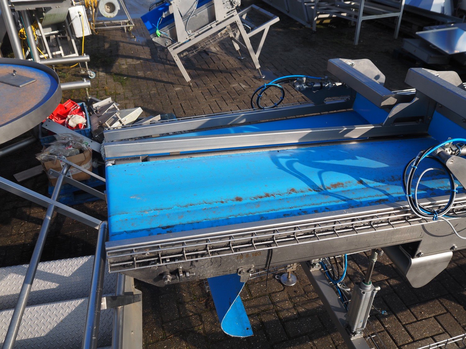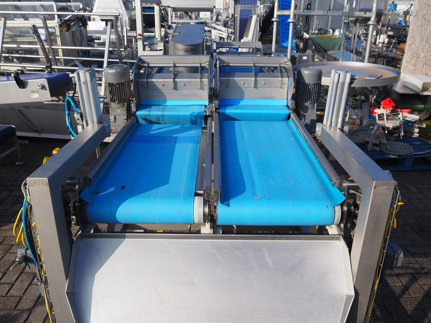 Transport belt, (2x) plastic belt, belt width: (2x) 370 mm, total dimensions: 3600 mm x 1230 mm x 1440 mm. Kavel locatie: Bedrijfsweg 7, 8304 AA Emmeloord, Nederland