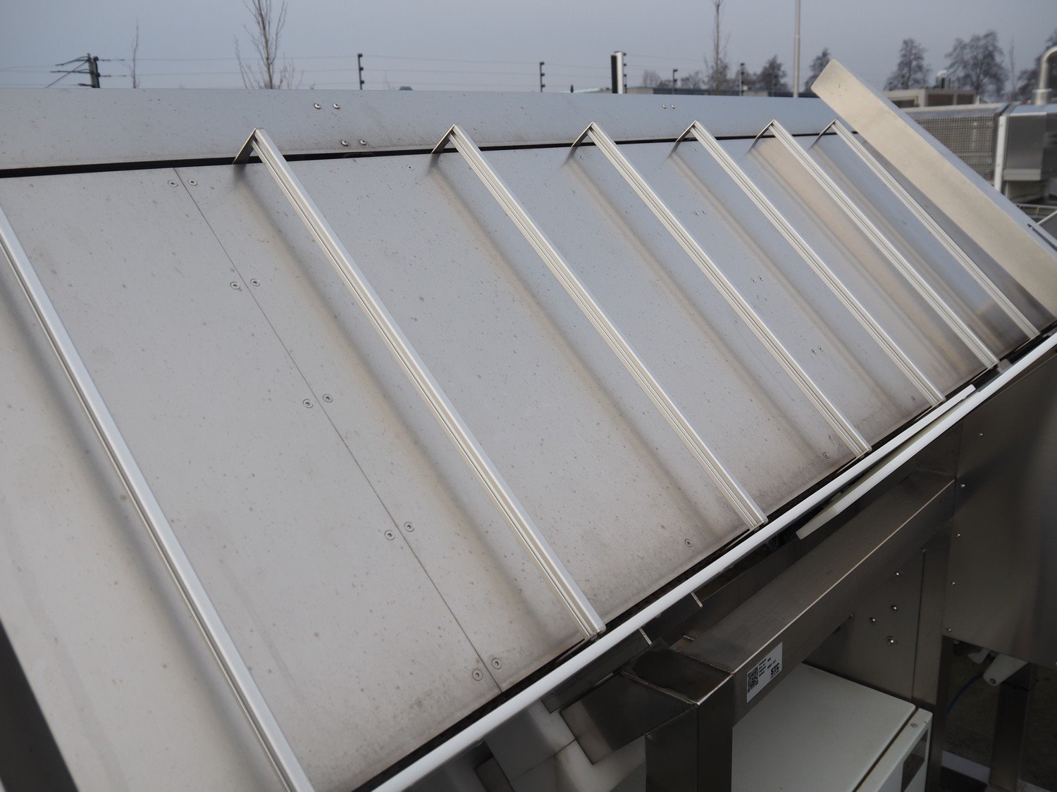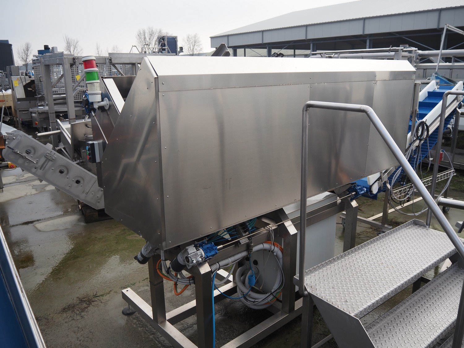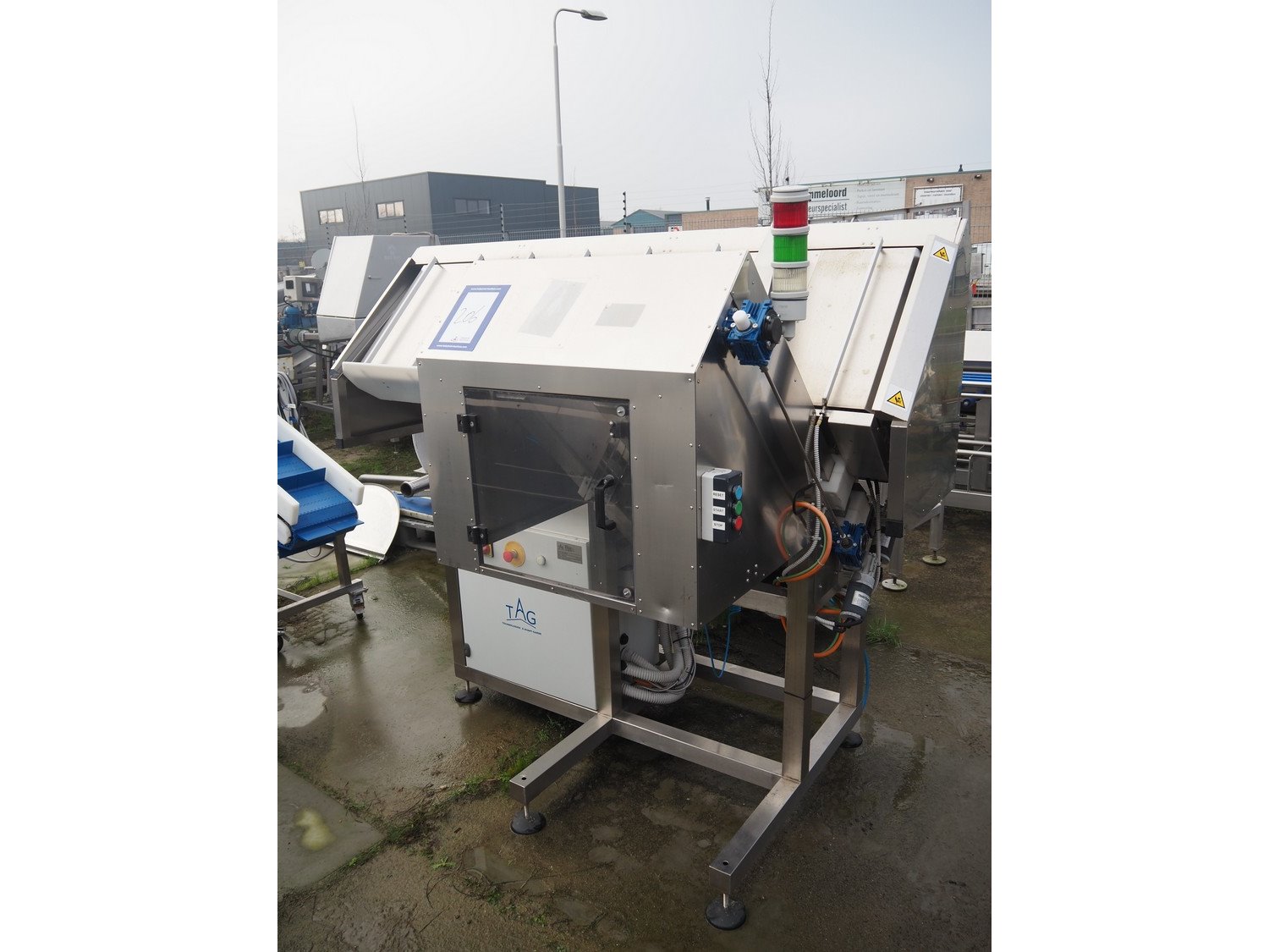 TAG punnet denester, model: TAG Egenore, serial number: TAG Guendalina 00220-3/11, year of construction: 2020, chain belt with dividers, belt width: 550 mm, distance between dividers: 250 mm, divider height: 40 mm, total dimensions: 2200 mm x 1400 mm x 1750 mm. Kavel locatie: Bedrijfsweg 7, 8304 AA Emmeloord, Nederland