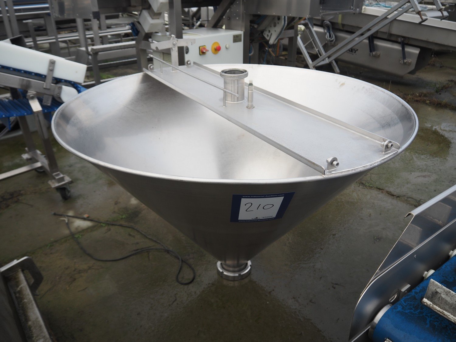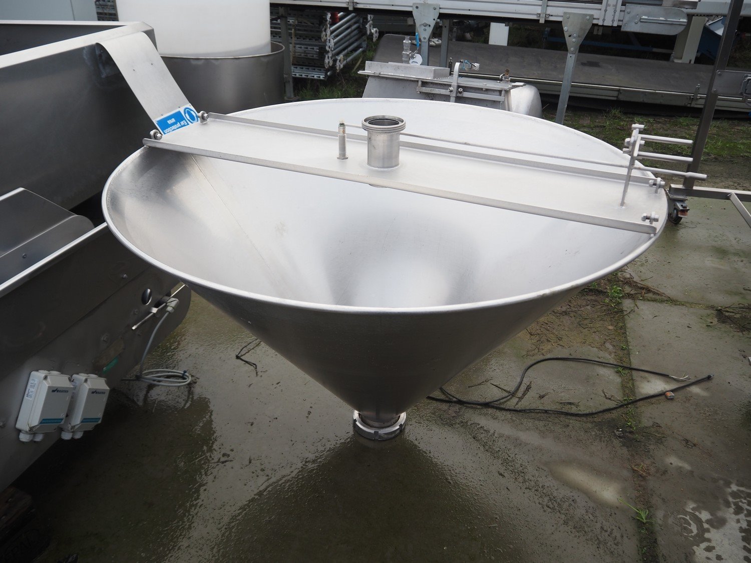 S/s hopper, dimensions: 1180 mm x 1180 mm x 730 mm. Kavel locatie: Bedrijfsweg 7, 8304 AA Emmeloord, Nederland