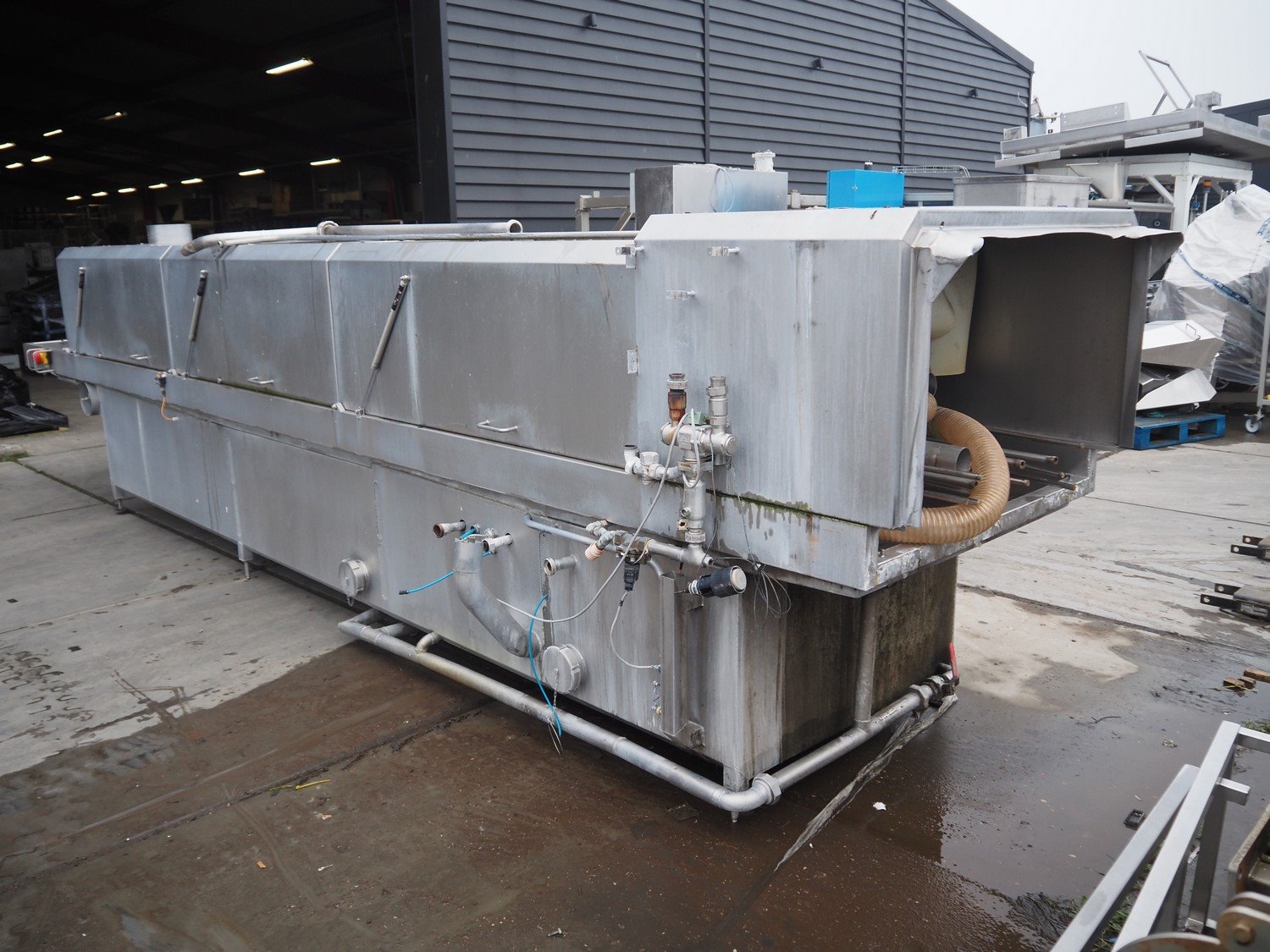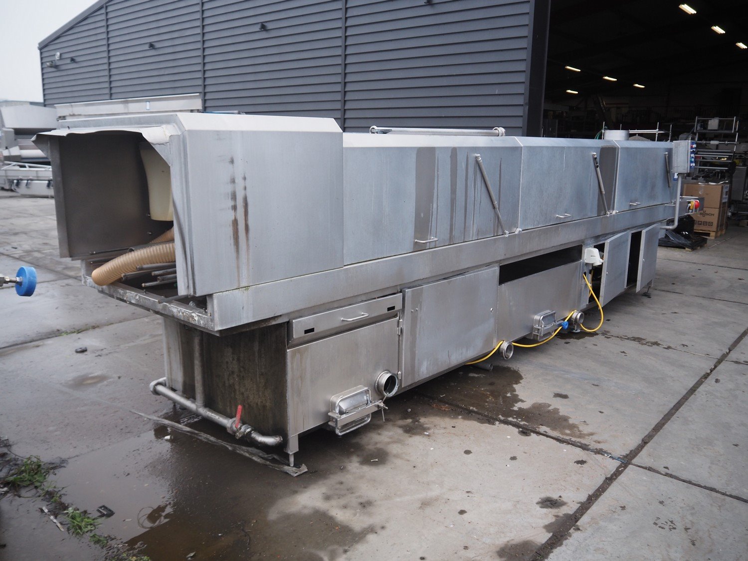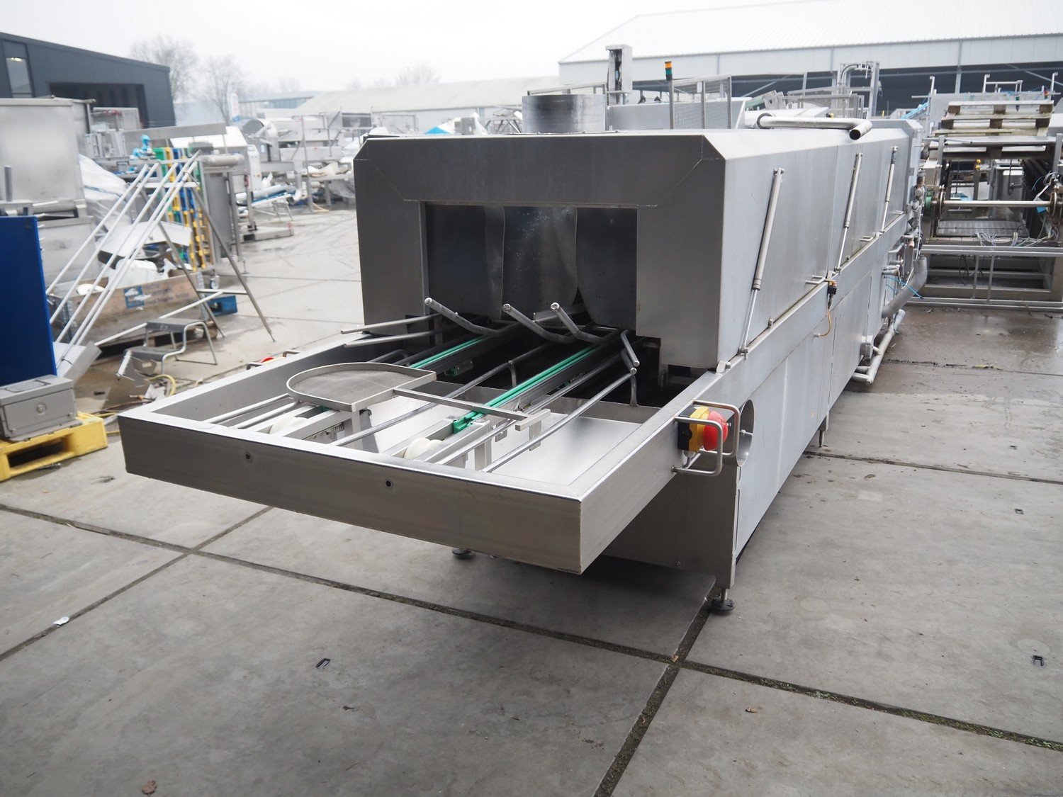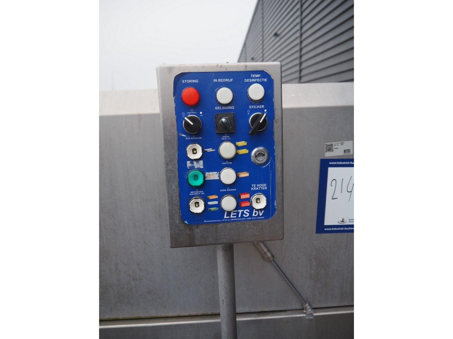 LETS BV crate washing and drying machine, model: K564 HE ST / D564 HE, pump 1: 5.5 kW, 11.5 A, 72 m³ per hour, pump 2: 11 kW, 30.5 A, 8 m³ per hour, pump 3: 11 kW, 22 A, 72 m³ per hour, blowers: 3 x 5.5 kW, total dimensions: 9650 mm x 1350 mm x 2600 mm. Kavel locatie: Bedrijfsweg 7, 8304 AA Emmeloord, Nederland