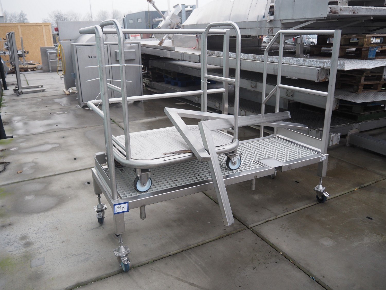 2 mobile s/s platforms, total dimensions: 2000 mm x 750 mm x 1600 mm. Kavel locatie: Bedrijfsweg 7, 8304 AA Emmeloord, Nederland