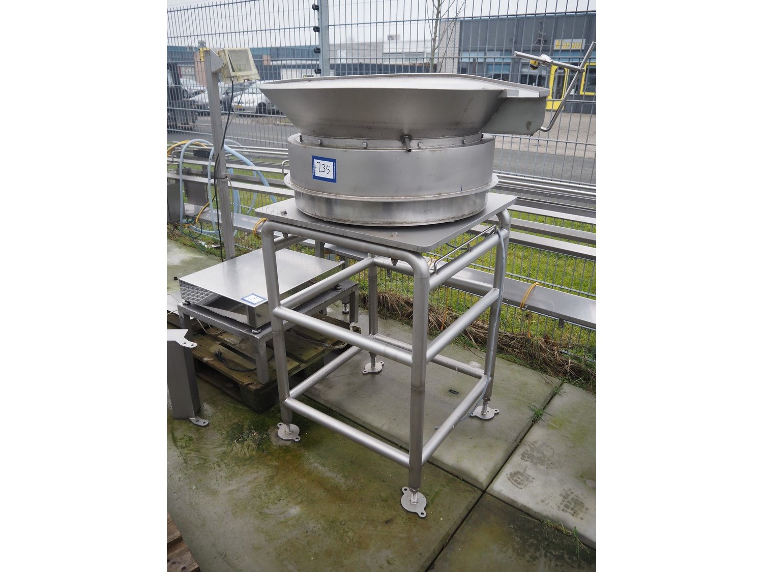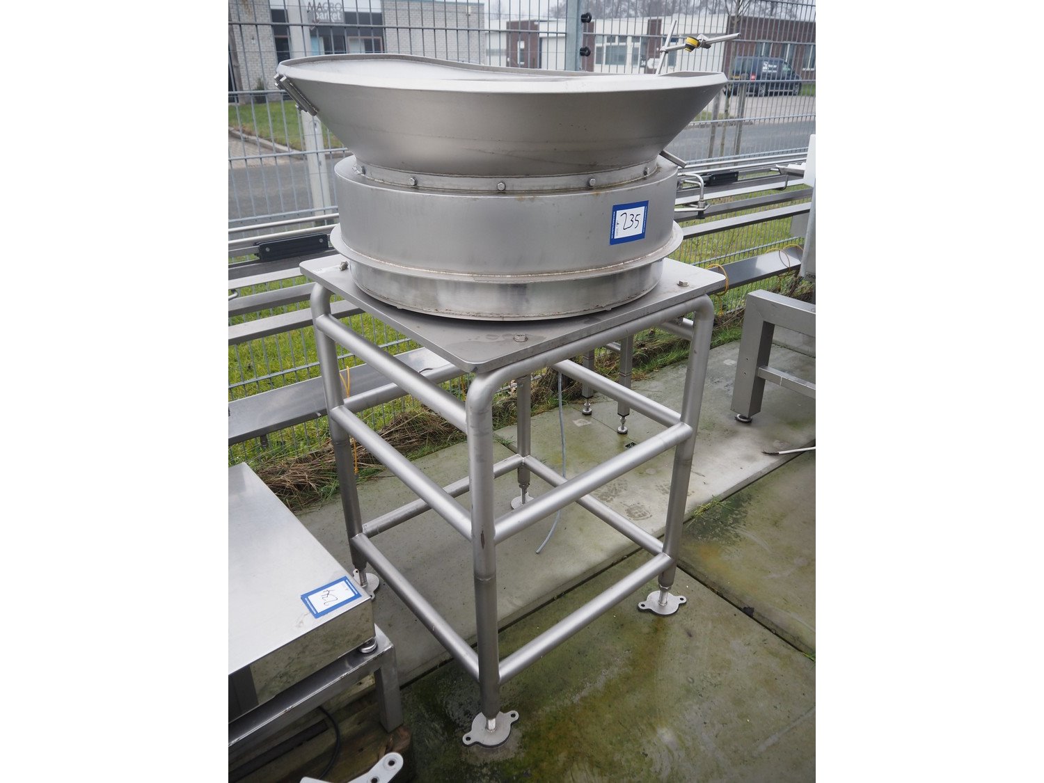 Vibrating cap feeder on s/s frame, dimensions: 1020 mm x 1020 mm x 1530 mm. Kavel locatie: Bedrijfsweg 7, 8304 AA Emmeloord, Nederland
