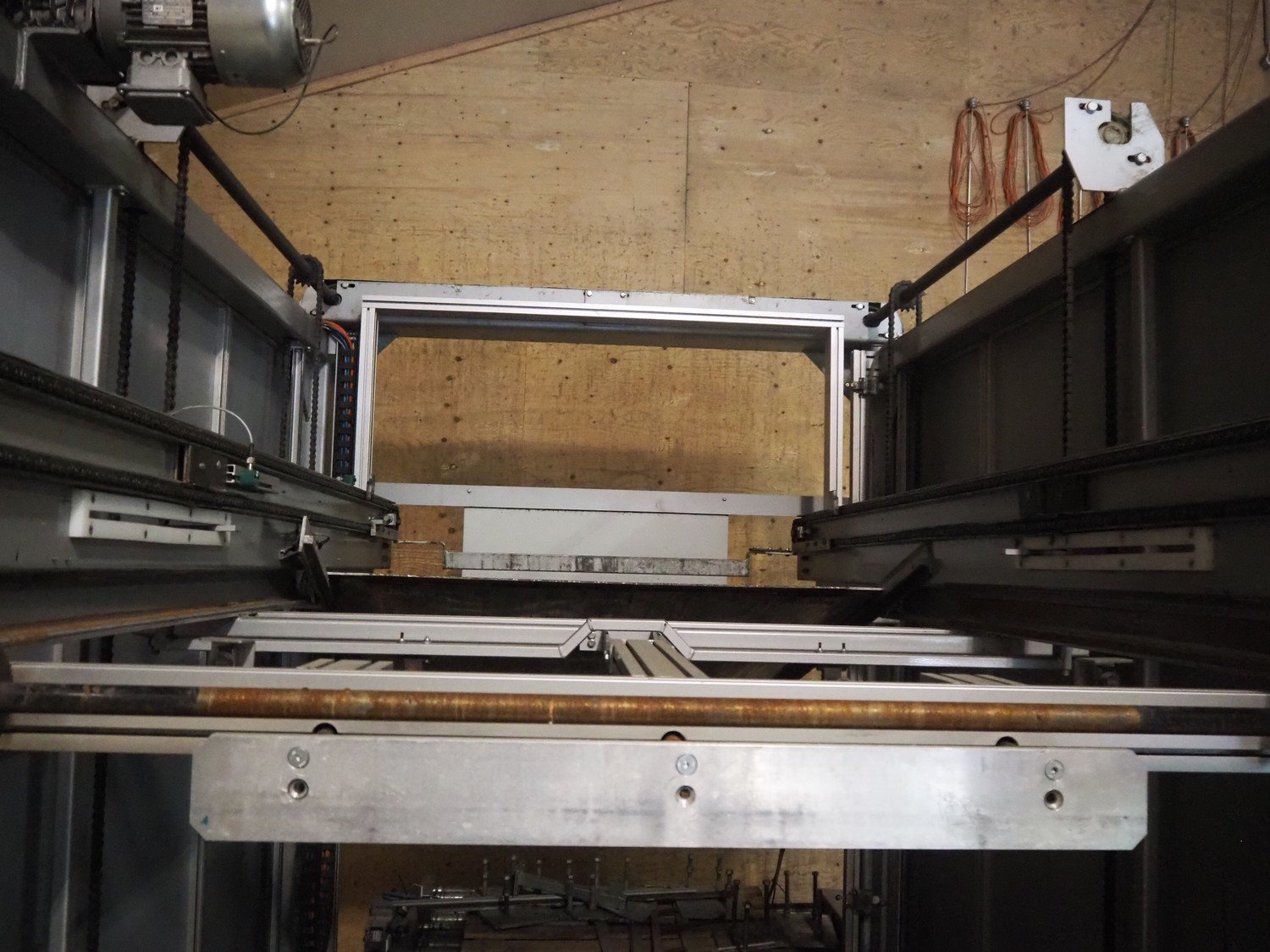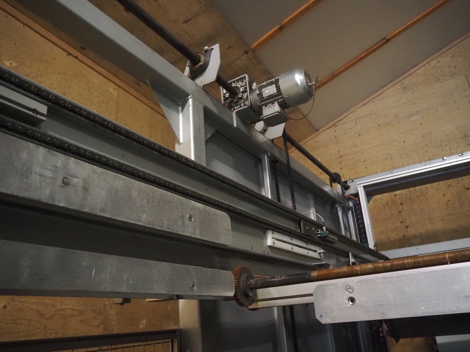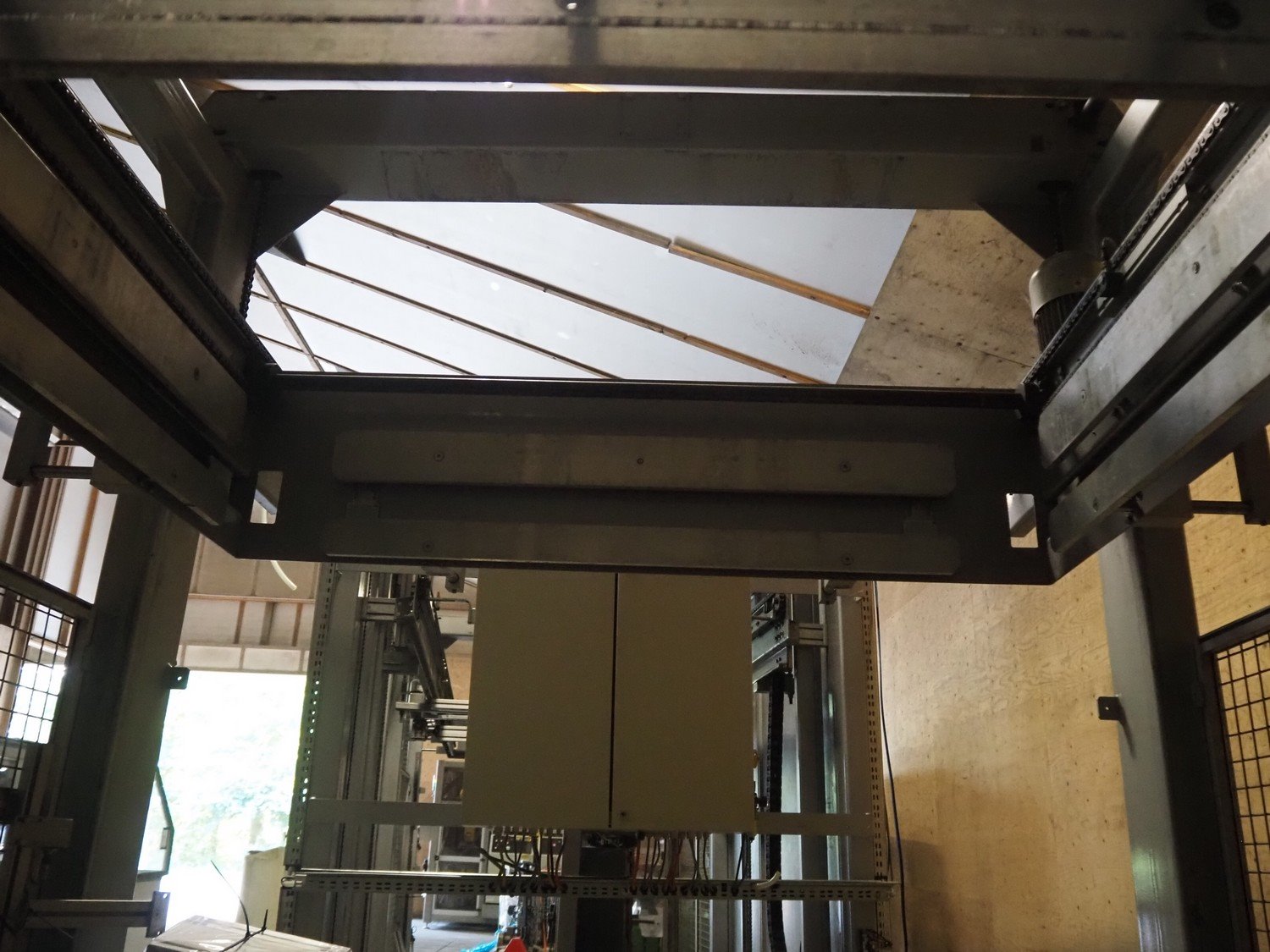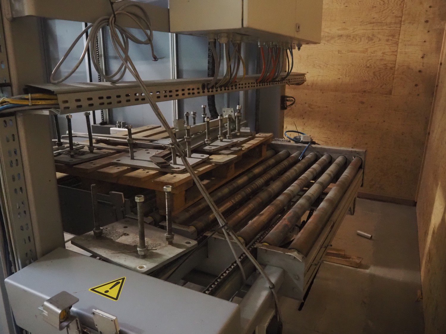 Viscon palletizer, s/s rollers, roller width: 1270 mm, total dimensions: 5300 mm x 2400 mm x 3200 mm. Including turning device, steel chain belt, belt width: 250 mm, dimensions turning device: 1450 mm x 950 mm x 1150 mm. Kavel locatie: Domineesweg 26, 8321 DZ Urk, Nederland