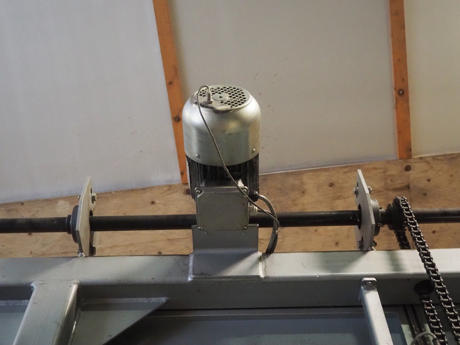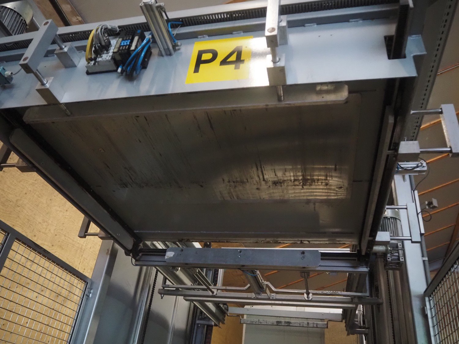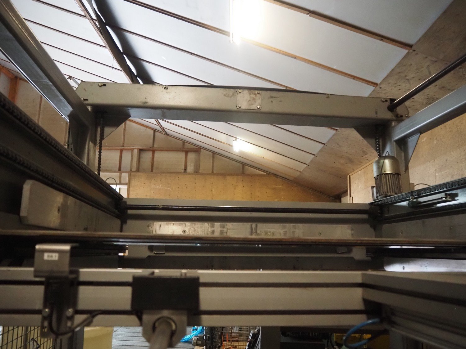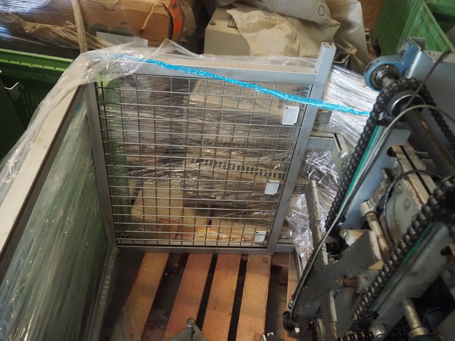 Viscon palletizer, s/s rollers, roller width: 1270 mm, total dimensions: 5300 mm x 2400 mm x 3200 mm. Including turning device, steel chain belt, belt width: 250 mm, dimensions turning device: 1450 mm x 950 mm x 1150 mm. Kavel locatie: Domineesweg 26, 8321 DZ Urk, Nederland