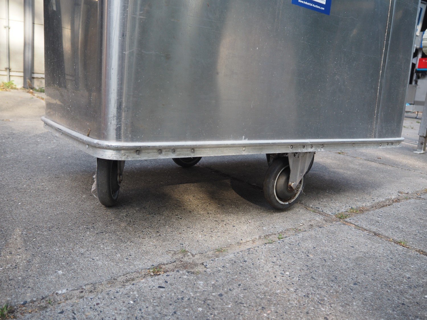 S/s mobile dispenser tub for plates, inside dimensions: 1060 mm x 660 mm, total dimensions: 1130 mm x 710 mm x 1020 mm. Kavel locatie: Domineesweg 26, 8321 DZ Urk, Nederland