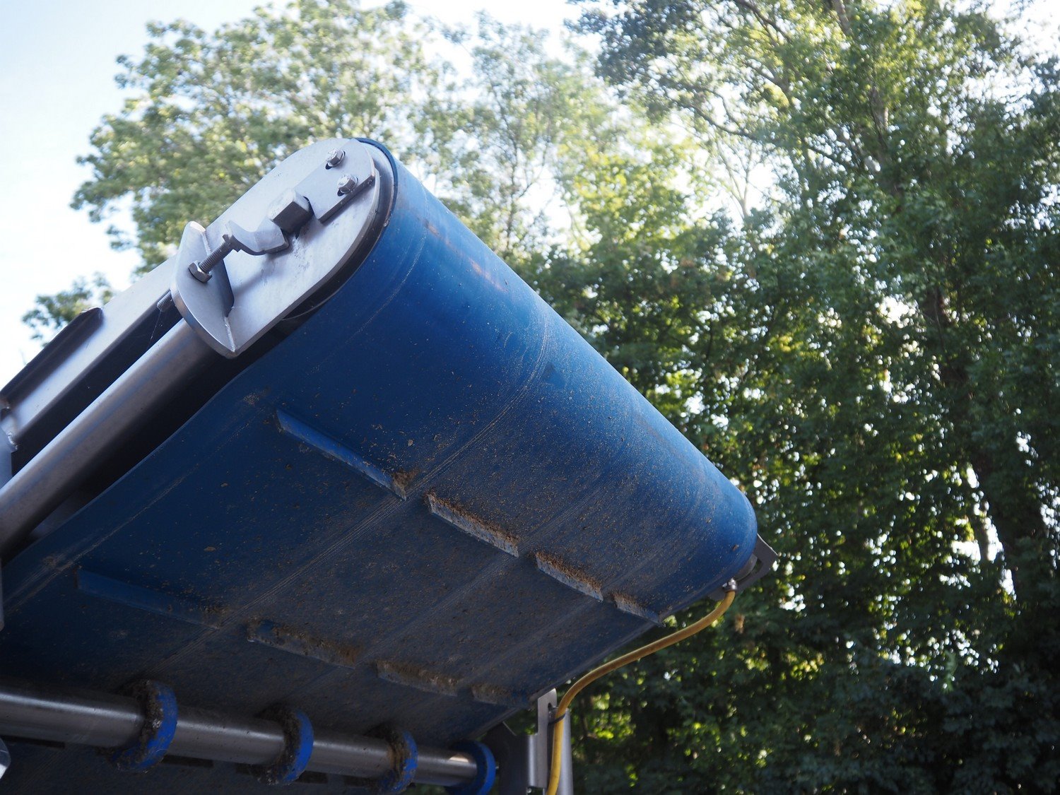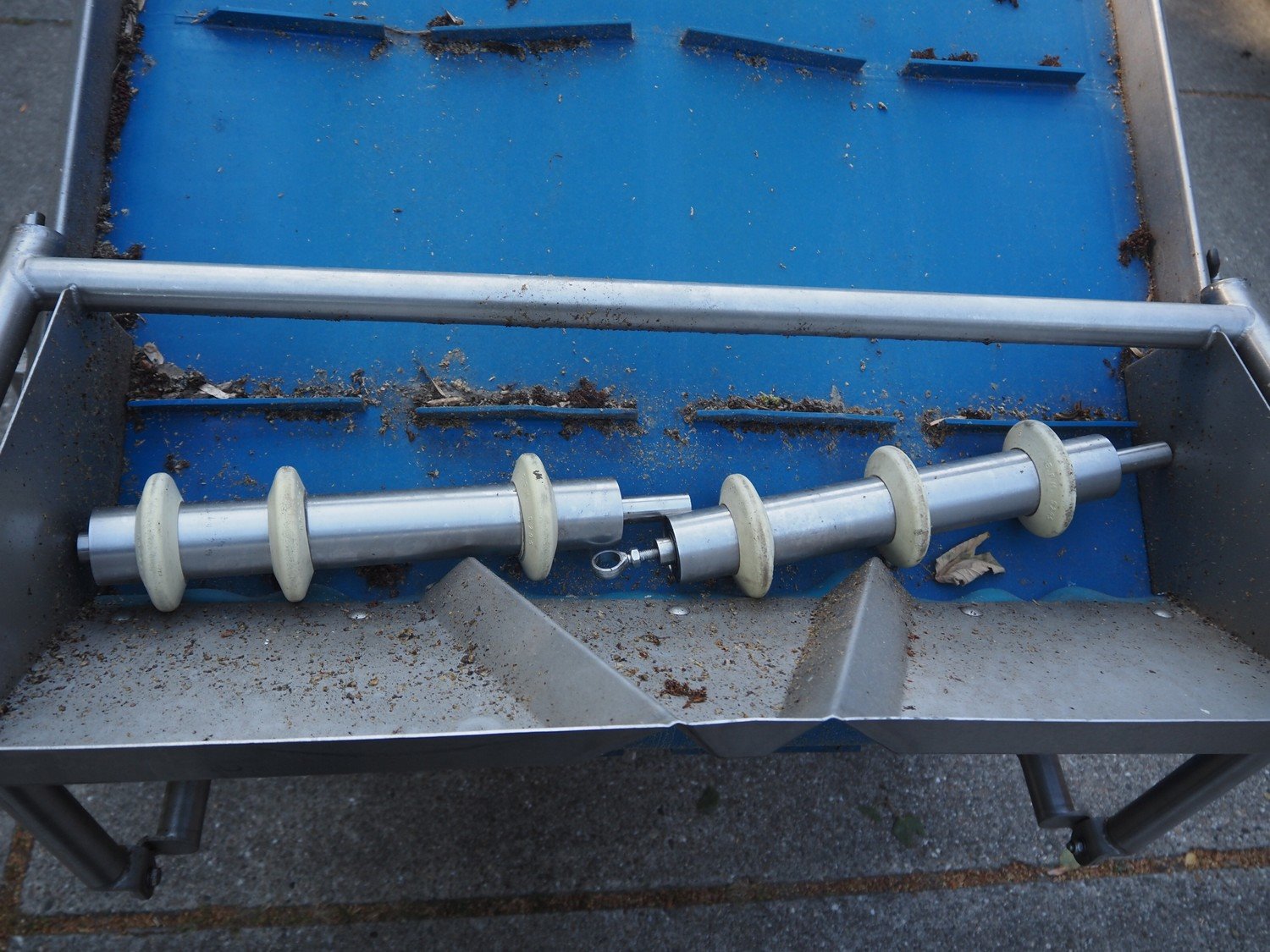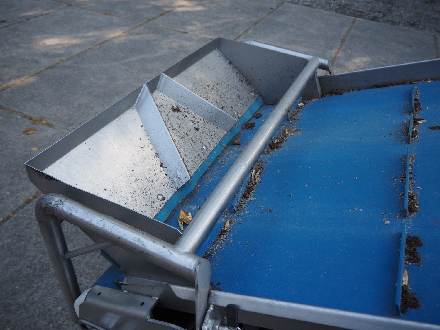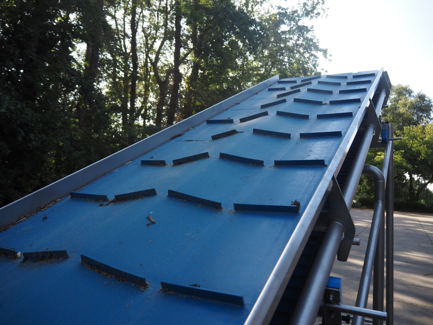 Lumacon mobile elevating belt, type: RC850x3650 Easy clean, serial number: 21-00298-009, year of construction: 2021, speed: 0.16 m/sec, plastic belt with dividers, belt width: 850 mm, distance between dividers: 315 mm, divider height: 20 mm, elevating height: 2200 mm, total dimensions: 3400 mm x 1100 mm x 2300 mm. Kavel locatie: Domineesweg 26, 8321 DZ Urk, Nederland