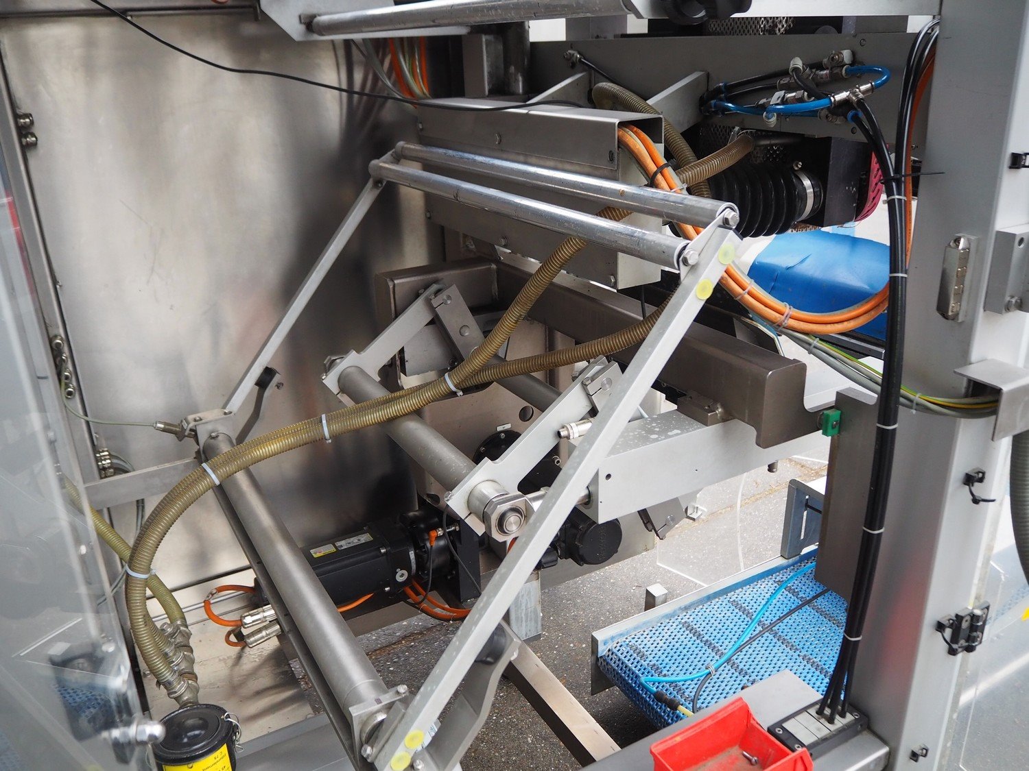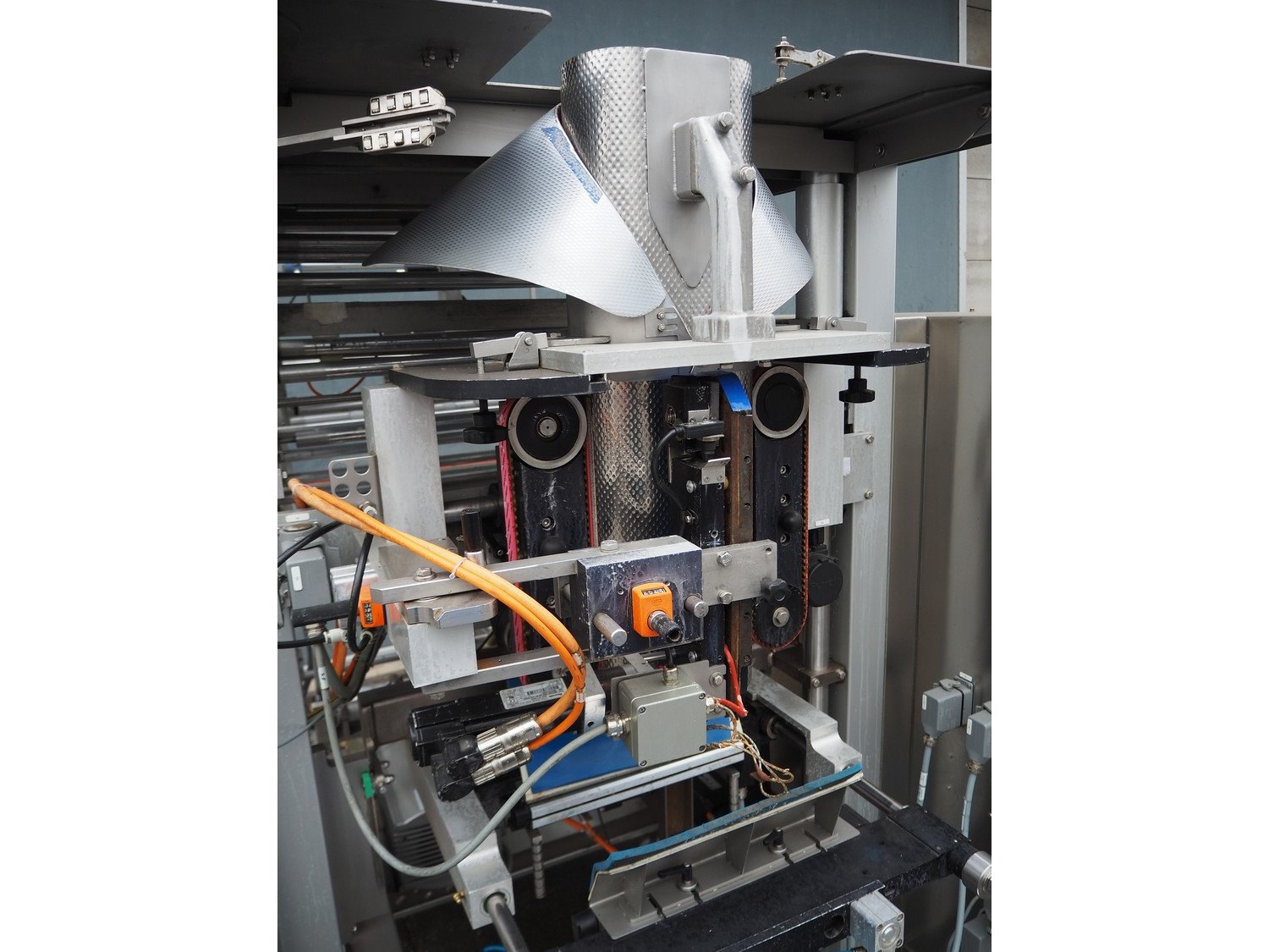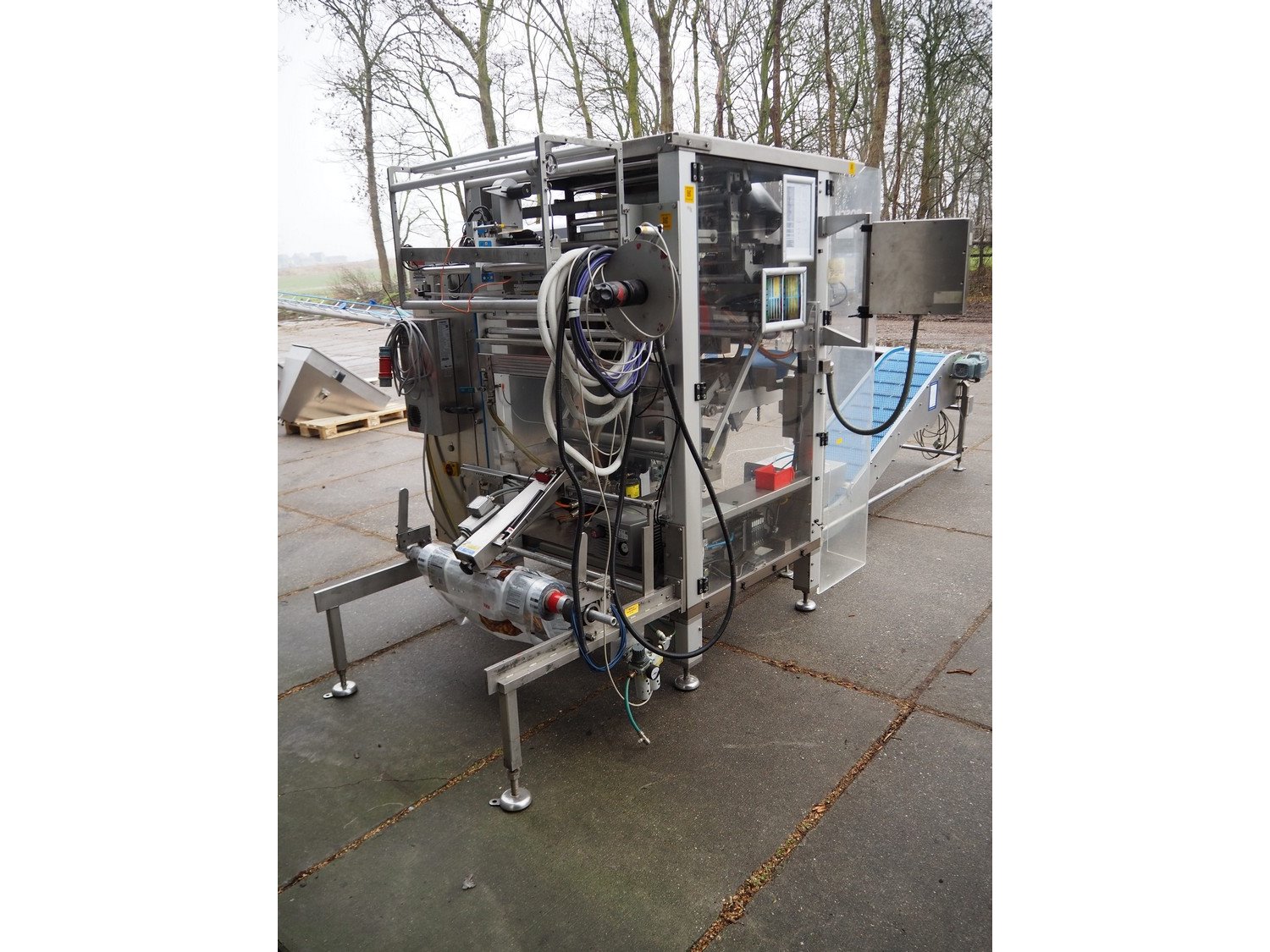 Bosch vertical bag form-, fill-, and seal machine, type: SVE 3615 LR, number: 705950MS7536N, year of construction: 2008, Becker vacuum pump, type: VT 4.25, weight: 1450 kg, film width: 710 mm, dimensions pipe: 230 mm x 155 mm, horizontal seal length: 375 mm, total dimensions: 1850 mm x 2550 mm x 2000 mm. Incomplete, vertical seal is missing. Including outfeed elevating belt with plastic mesh belt , belt width: 455 mm, elevating height: 860 mm, total dimensions outfeed belt: 2800 mm x 800 mm x 890 mm. Kavel locatie: Domineesweg 26, 8321 DZ Urk, Nederland