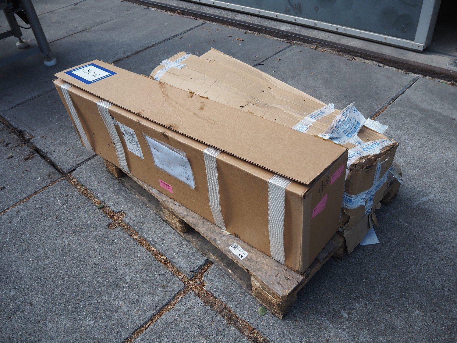 Pallet with cloth transport belt and Key Technology sieve belt. Kavel locatie: Domineesweg 26, 8321 DZ Urk, Nederland