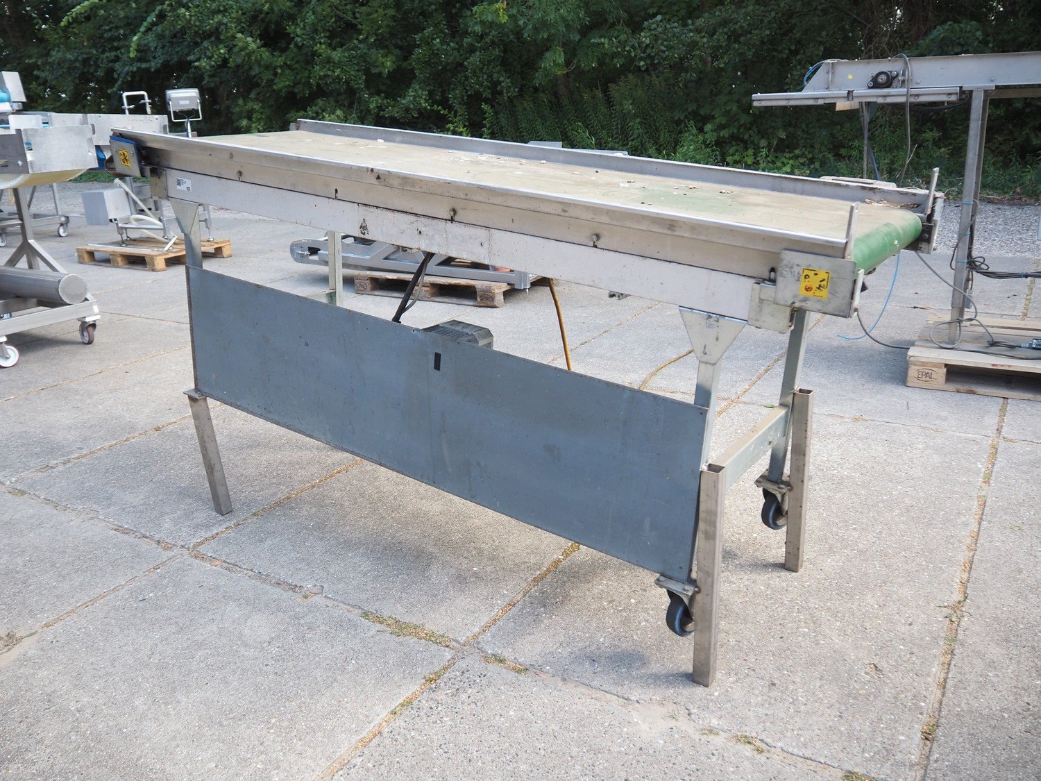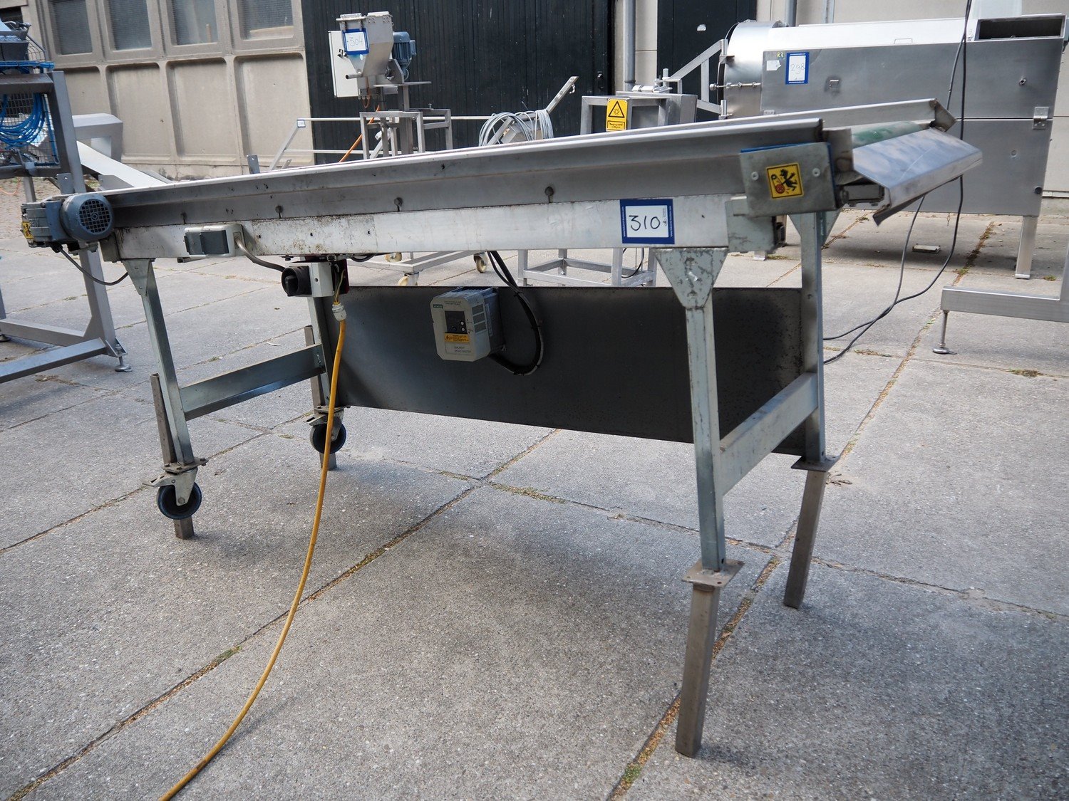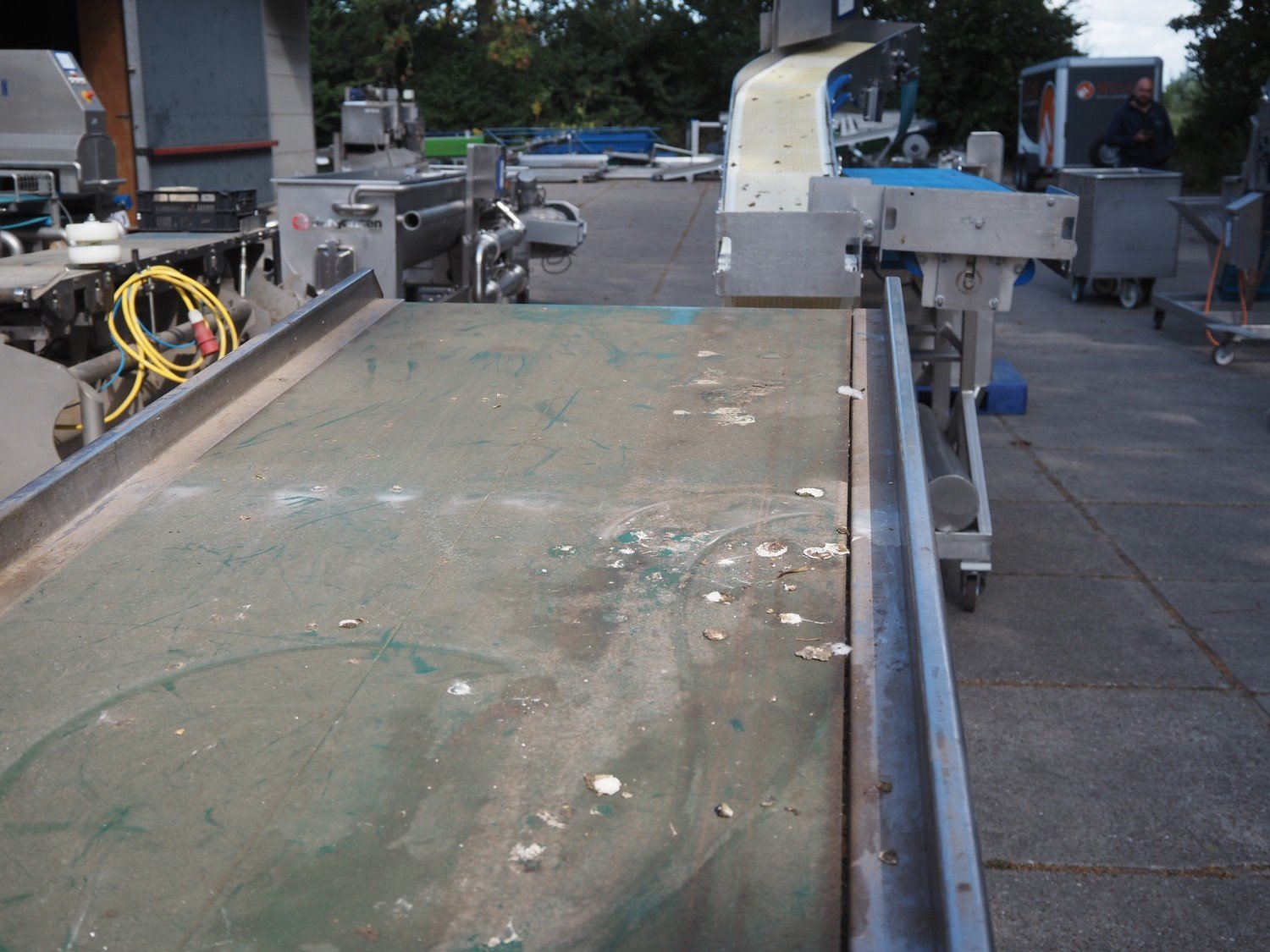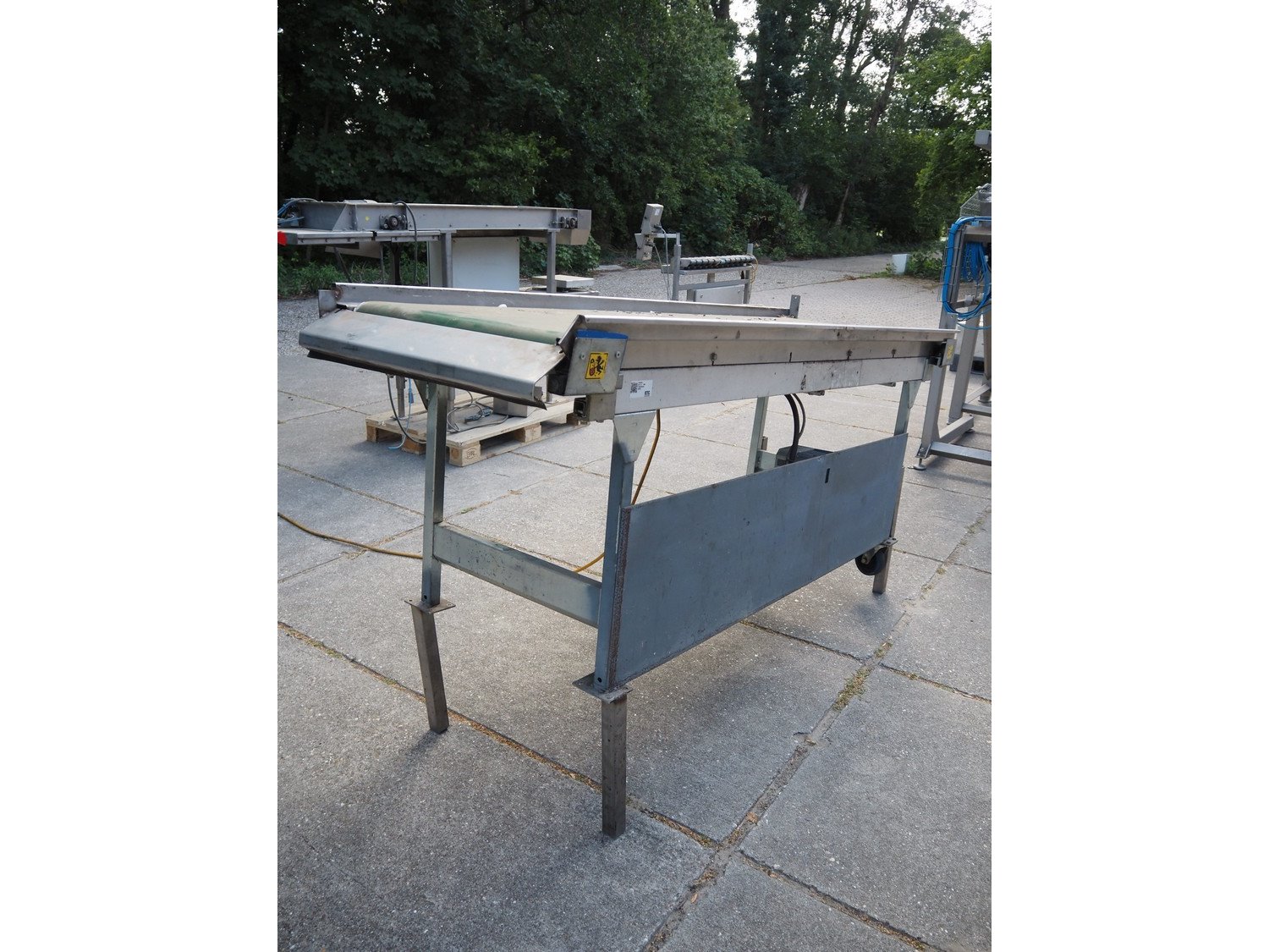 Elevating belt, plastic belt, belt width: 600 mm, elevating height: 1200 mm, total dimensions: 2300 mm x 900 mm x 1240 mm. Kavel locatie: Domineesweg 26, 8321 DZ Urk, Nederland