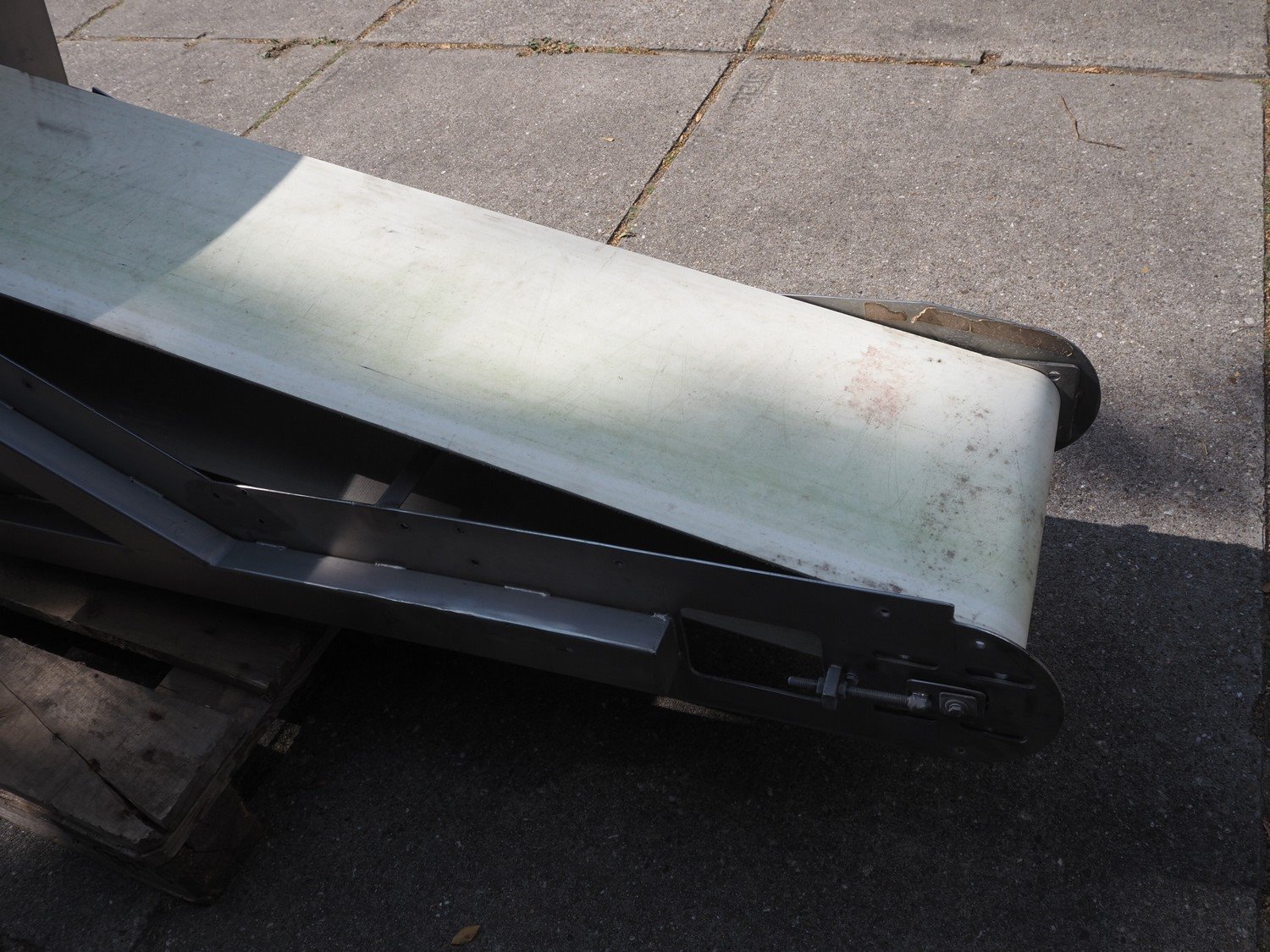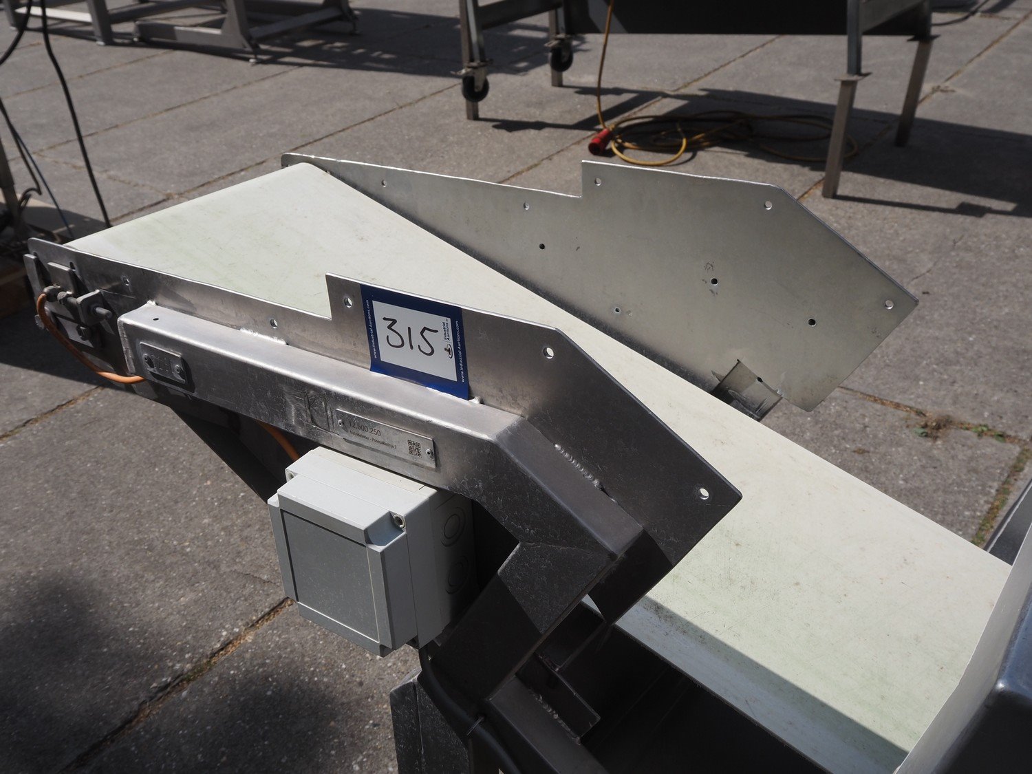 Detectronic elevating metal detector, type/number: 606-350-1218-1, plastic belt, belt width: 340 mm, clearance: 405 mm x 170 mm, elevating height: 800 mm, total dimensions: 2600 mm x 800 mm x 900 mm. Kavel locatie: Domineesweg 26, 8321 DZ Urk, Nederland