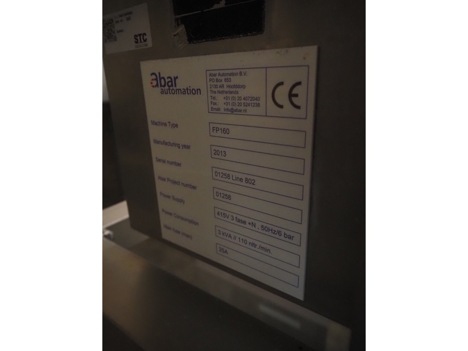 Abar Automation B.V. part for robot installation, type: FP160, serial number: 01258 Line 802, year of construction: 2013, 415 V, 3 Ph, 50 Hz, 3 kVA, dimensions: 2750 mm x 1500 mm x 1750 mm. Kavel locatie: Domineesweg 26, 8321 DZ Urk, Nederland