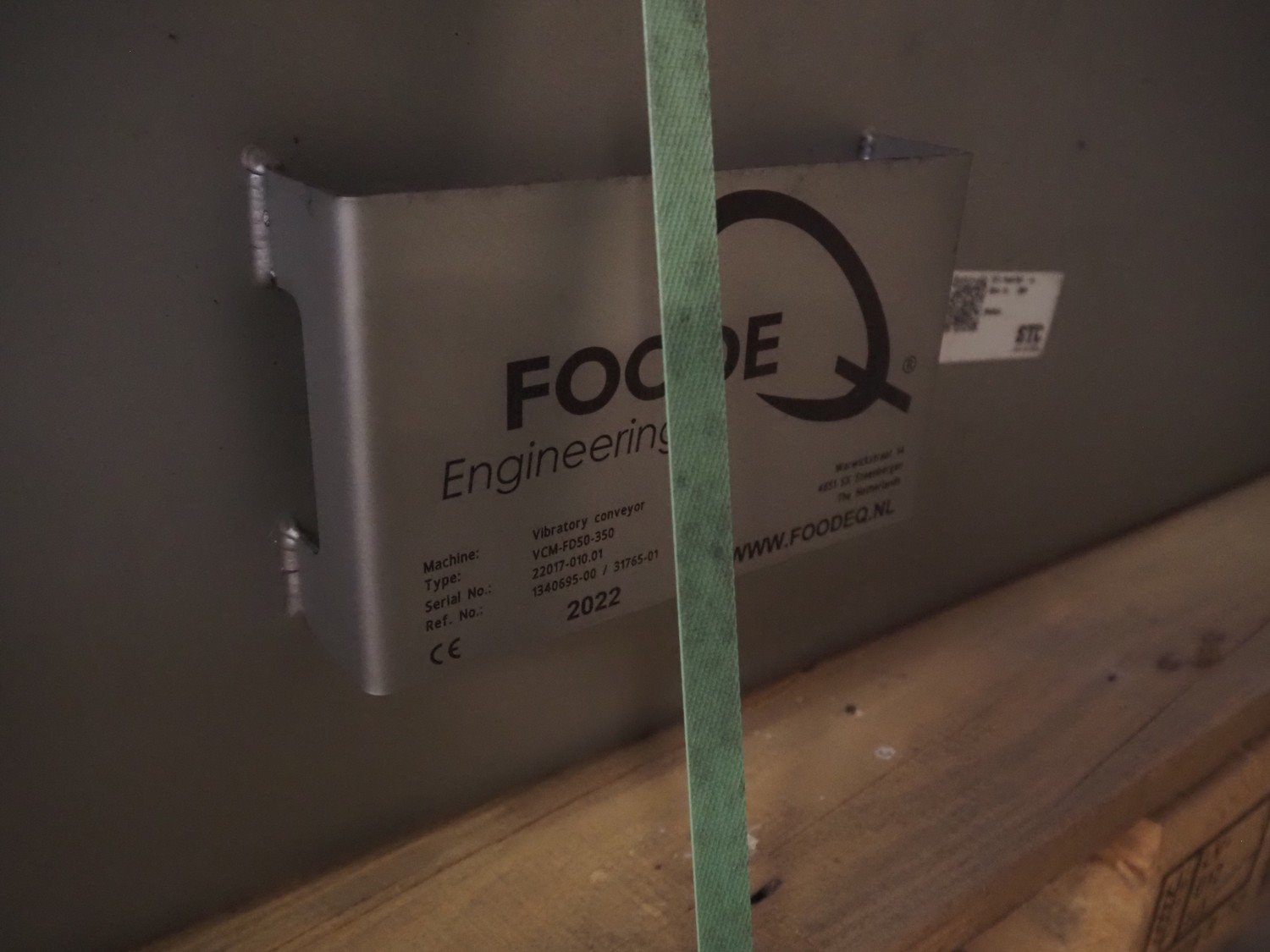 Foodeq vibrating gutter, type: VCM-FC50-350, serial number: 22017-010.01, year of construction: 2022, gutter width: 490 mm, total dimensions: 3700 mm x 1100 mm x 1280 mm. Kavel locatie: Domineesweg 26, 8321 DZ Urk, Nederland