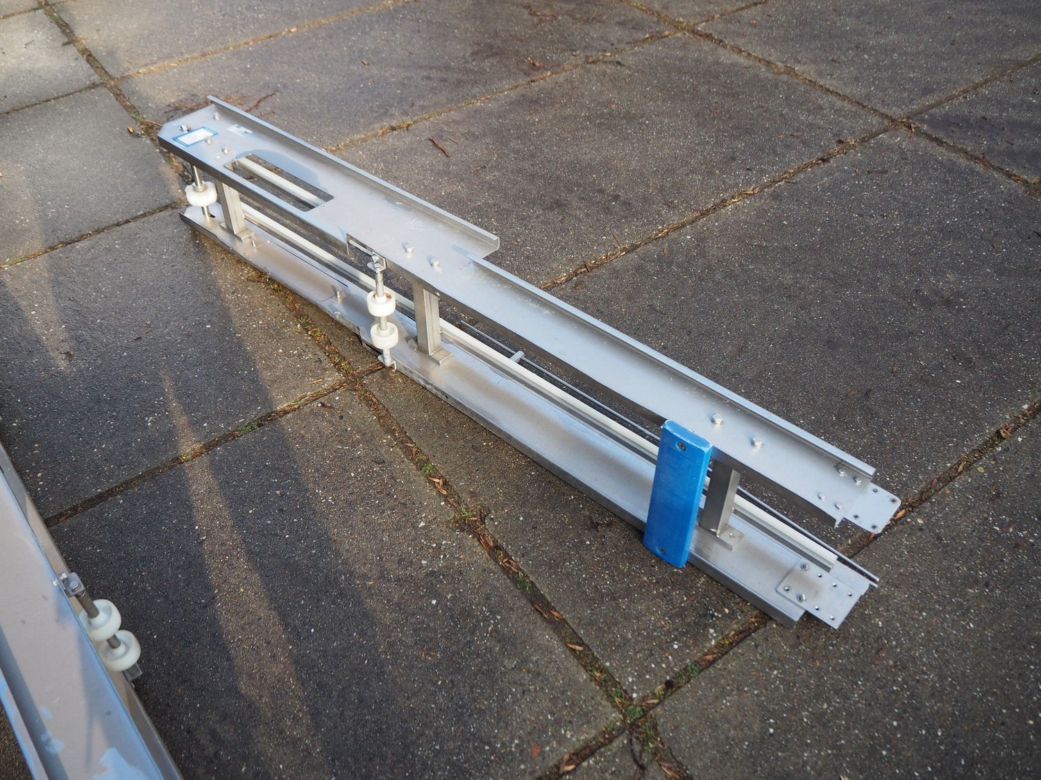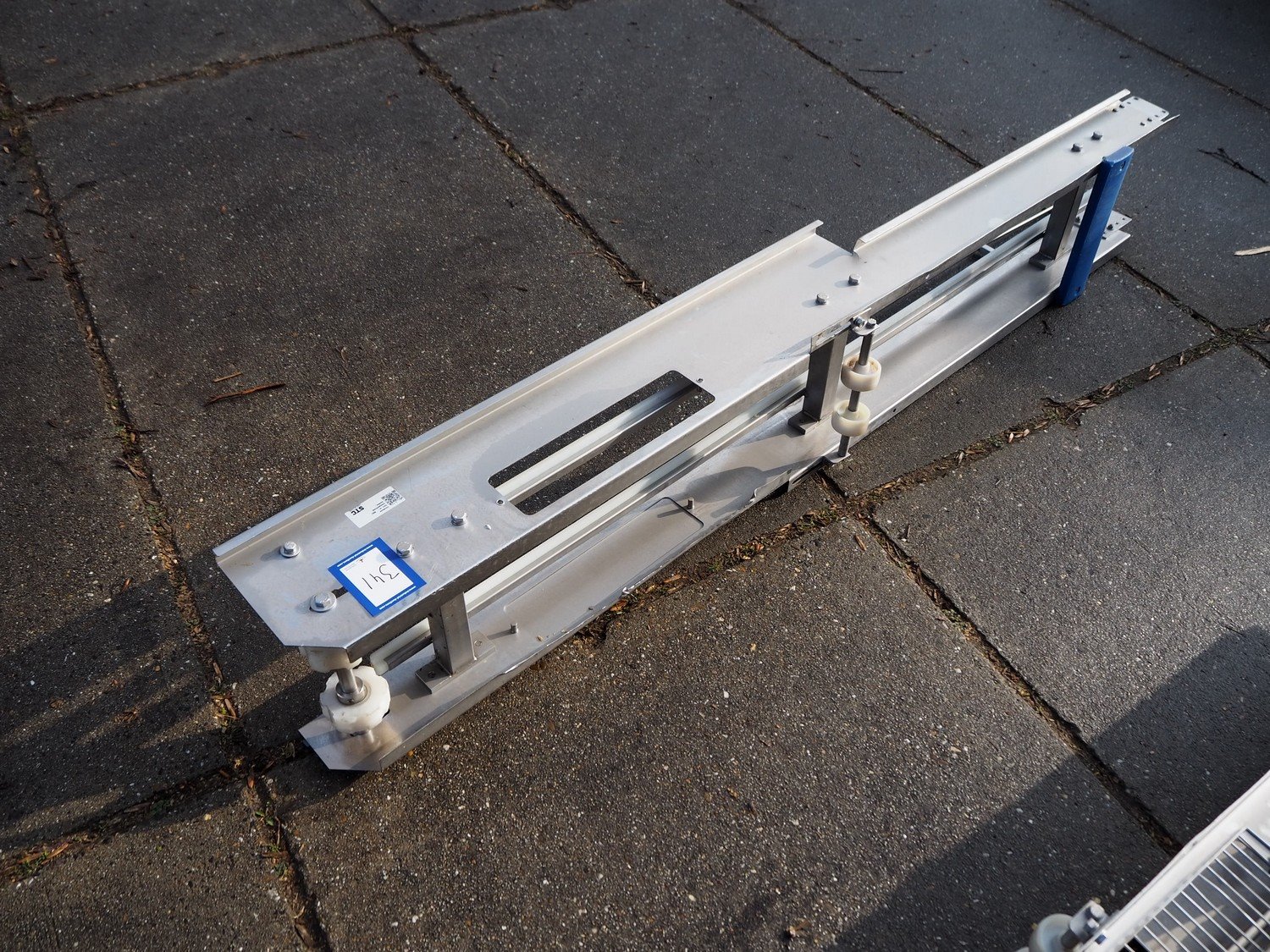 S/s frame for transport belt, belt width: 260 mm, total dimensions: 2060 mm x 310 mm x 260 mm. Incomplete. Kavel locatie: Domineesweg 26, 8321 DZ Urk, Nederland