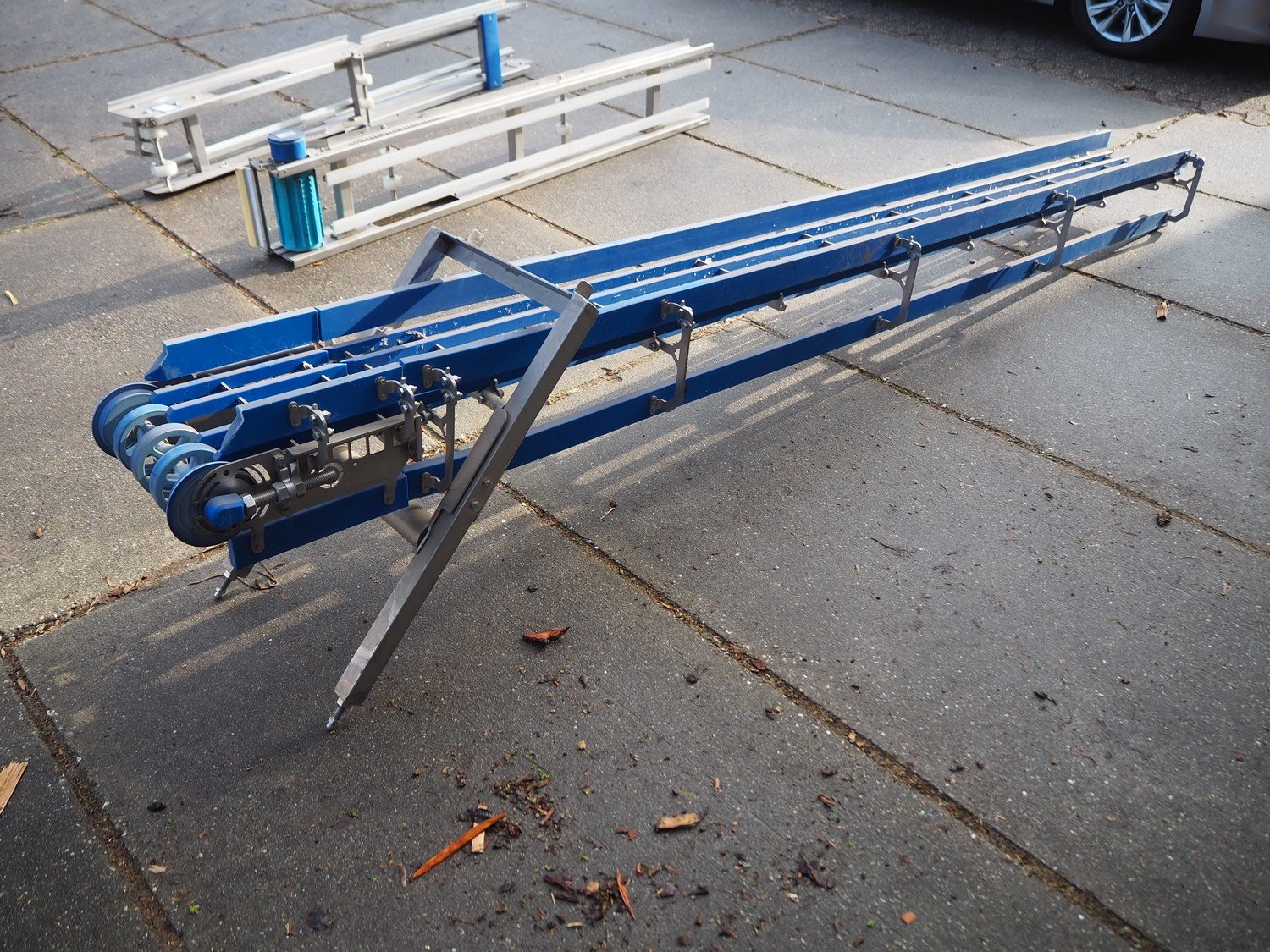 S/s frame for transport belt, belt width: 260 mm, total dimensions: 3500 mm x 600 mm x 500 mm. Incomplete. Kavel locatie: Domineesweg 26, 8321 DZ Urk, Nederland
