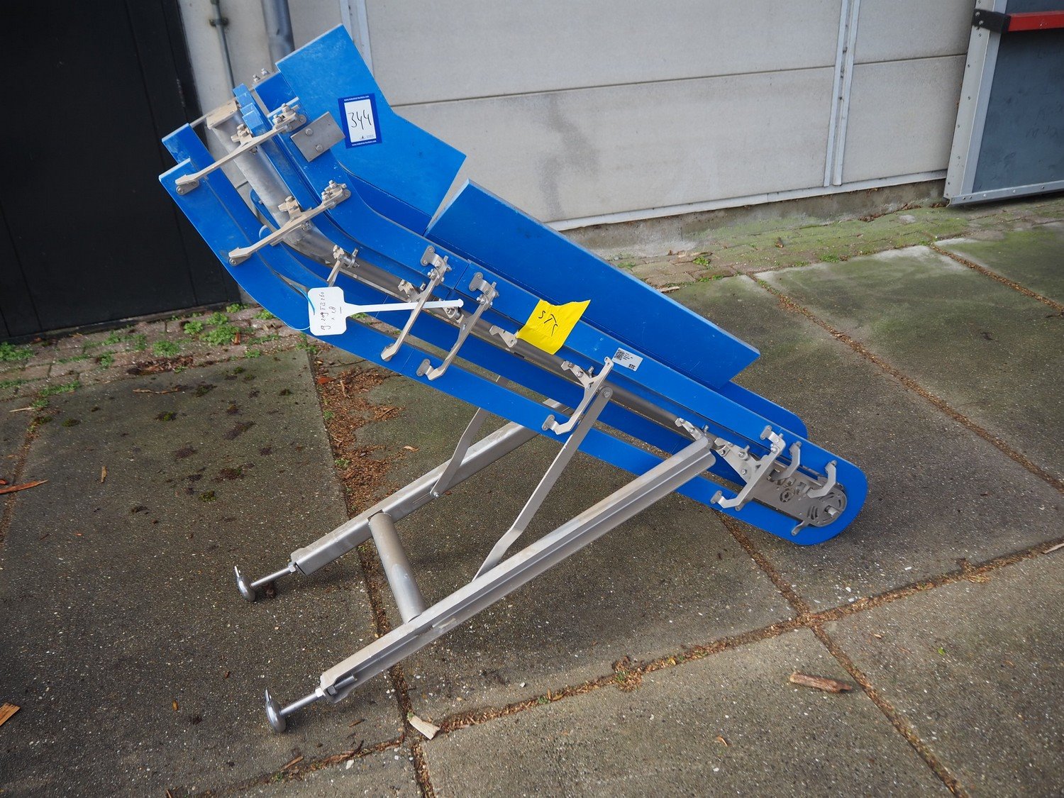 S/s frame for transport belt, belt width: 260 mm, total dimensions: 2000 mm x 500 mm x 1400 mm. Incomplete. Kavel locatie: Domineesweg 26, 8321 DZ Urk, Nederland