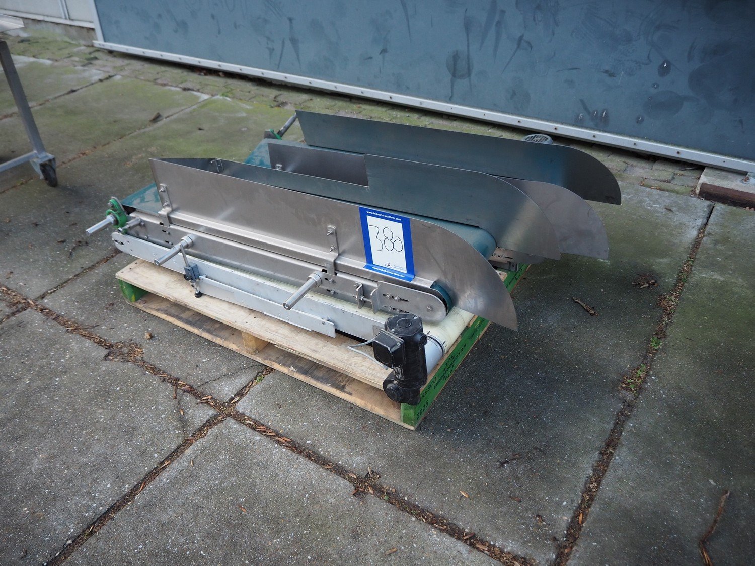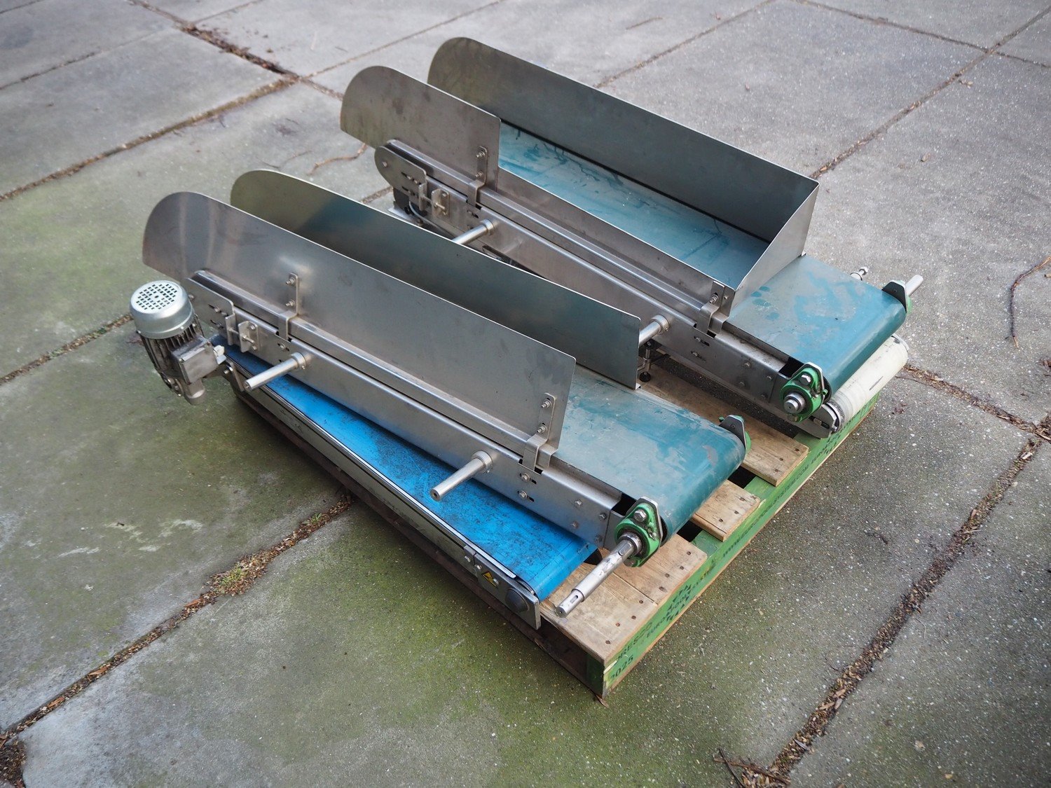 Pallet with 5 transport belts, belt width: 300 mm, total dimensions: 1500 mm x 1300 mm x 1000 mm. Kavel locatie: Domineesweg 26, 8321 DZ Urk, Nederland