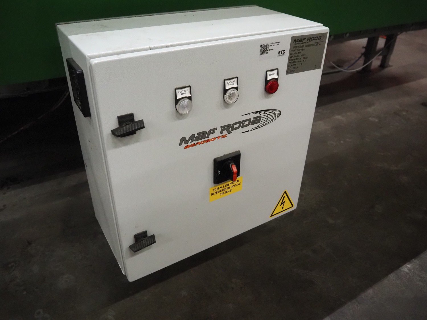 MAF RODA buffer belt, number: 027.178.001, 400 V, 50 Hz, 3 A, 10 KA, plastic belts, belt width: (2x) 495 mm and (2x) 415 mm, total dimensions: 3950 mm x 1350 mm x 1150 mm. Kavel locatie: Domineesweg 26, 8321 DZ Urk, Nederland