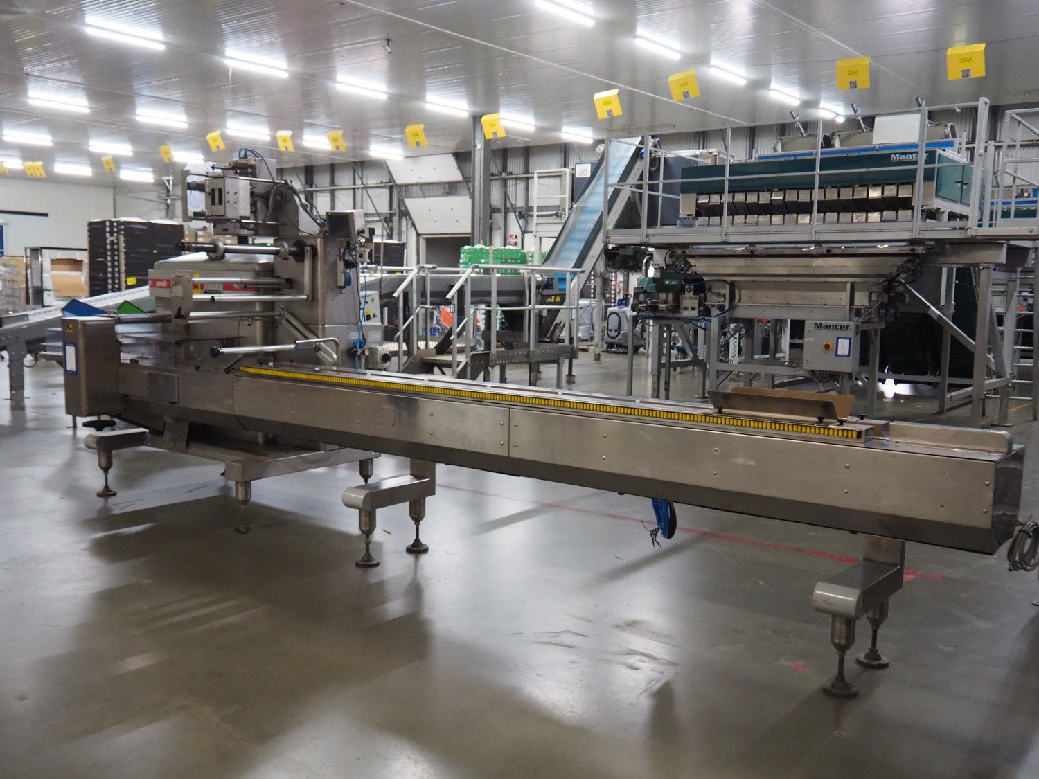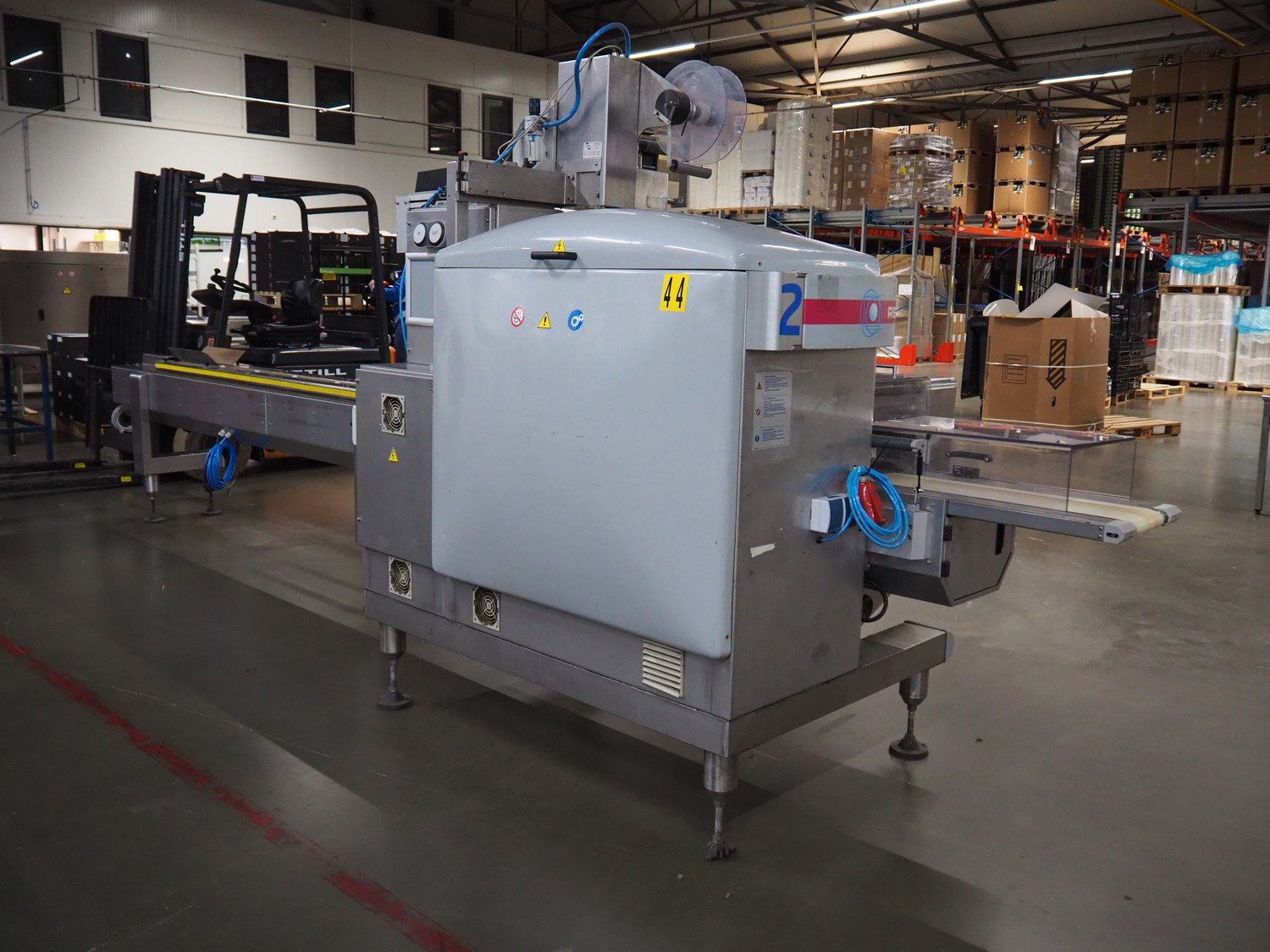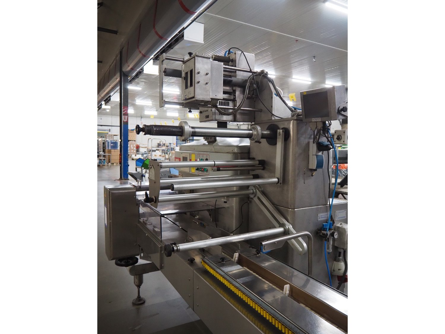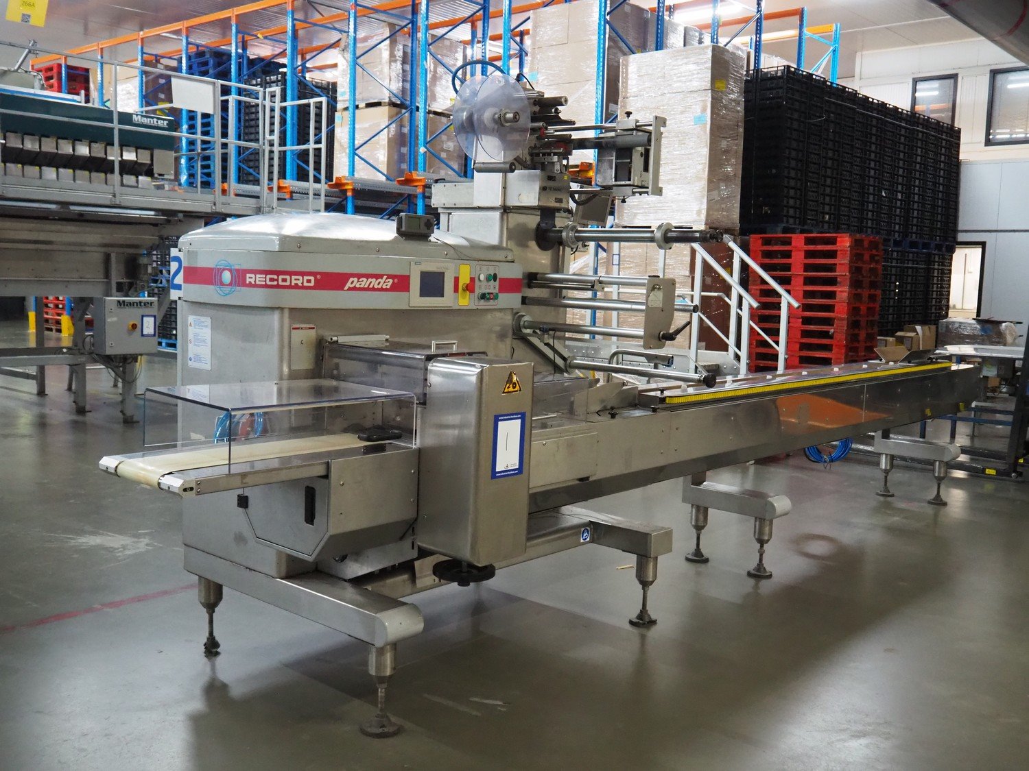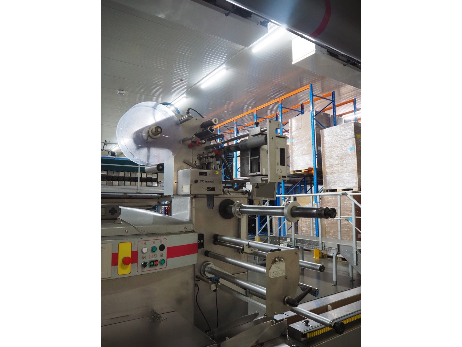 Record flowpacker with VWS Nederland B.V. labelling unit, type: PANDA.MD ST., serial number: 15-06-260, year of construction: 2007, weight: 1050 kg, distance between dividers: 410 mm, seal width: 350 mm, plastic belt, belt width: 210 mm, total dimensions: 6300 mm x 1500 mm x 2250 mm. Kavel locatie: ABC Westland 210, 2685 DC Poeldijk, Nederland