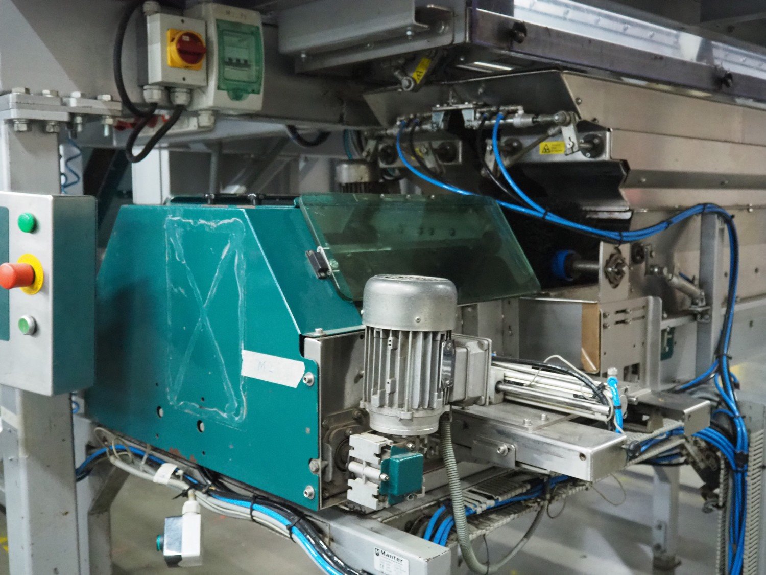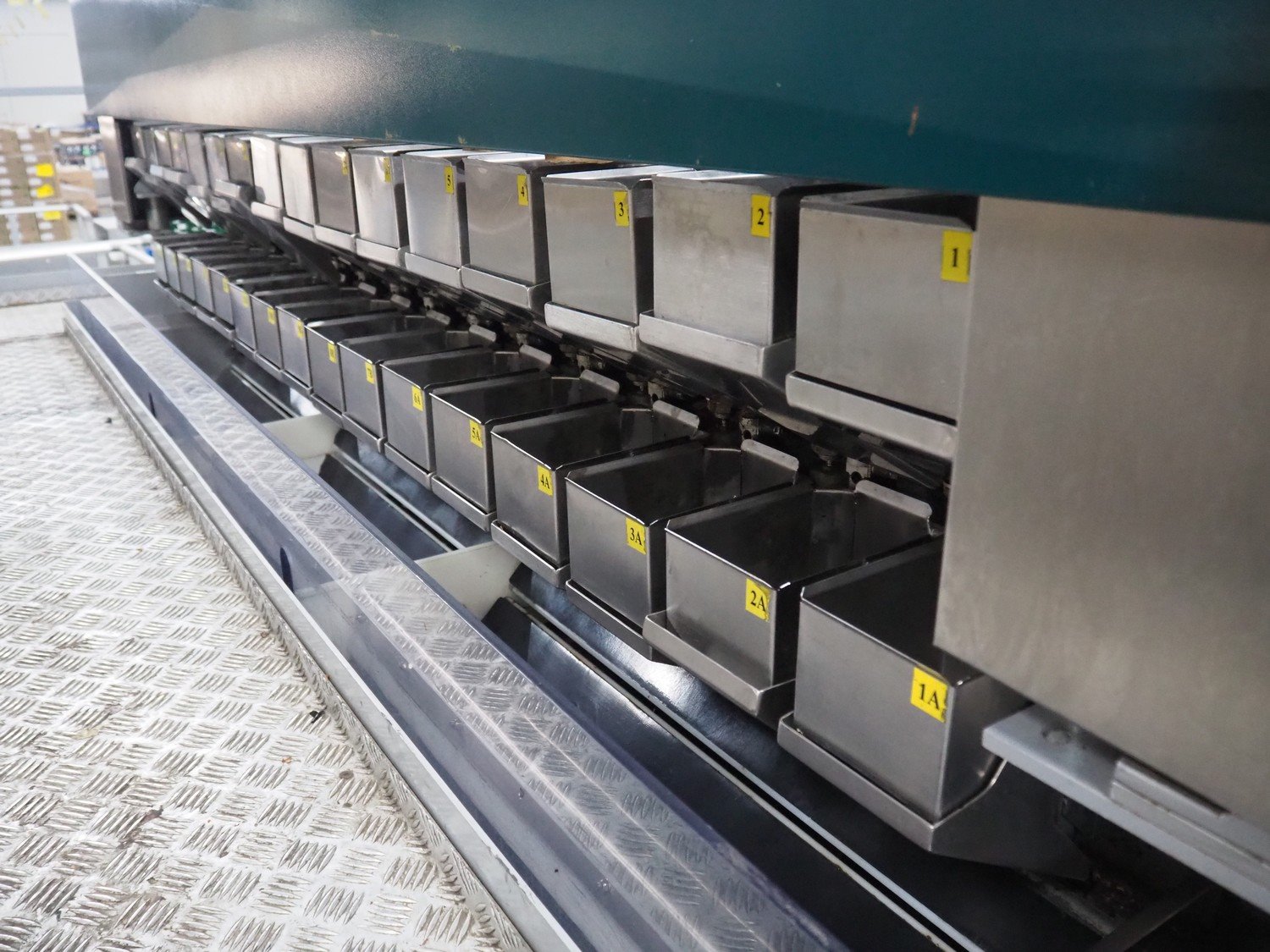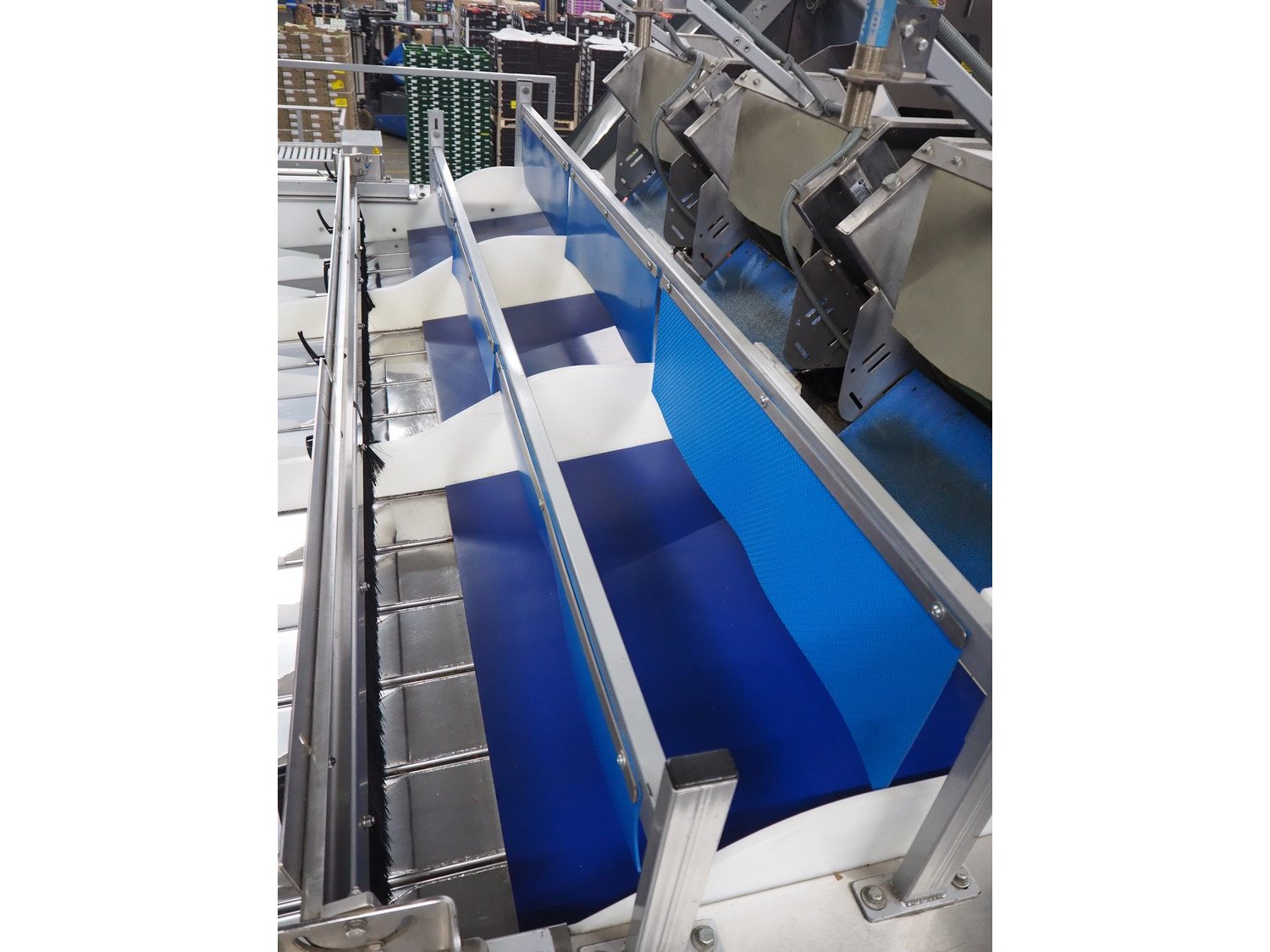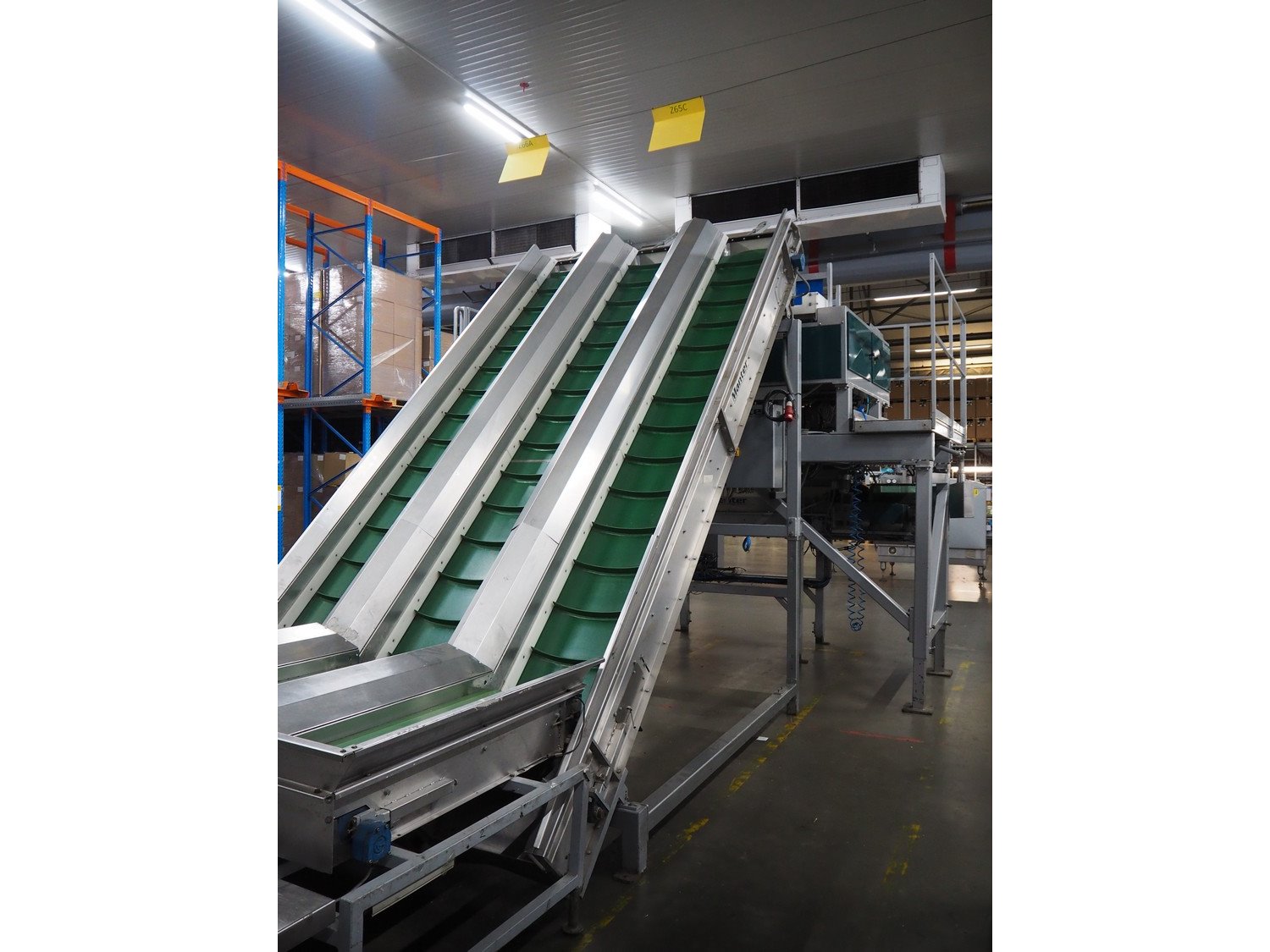 Manter linear weighing machine, type: 16000 Mix, machine number: 210-081, year of construction: 2010, 16 lanes, lane width: (16x) 140 mm, 2 outfeed belts, belt width: (2x) 150 mm, dimensions linear weighing machine: 4800 mm x 3200 mm x 3150 mm, elevating infeed belt, 3 lanes, plastic belt with dividers, belt width: 445 mm, divider height: 40 mm, distance between divides: 240 mm, elevating height: 2900 mm, dimensions elevating belt: 5200 mm x 2400 mm x 3700 mm. Kavel locatie: ABC Westland 210, 2685 DC Poeldijk, Nederland