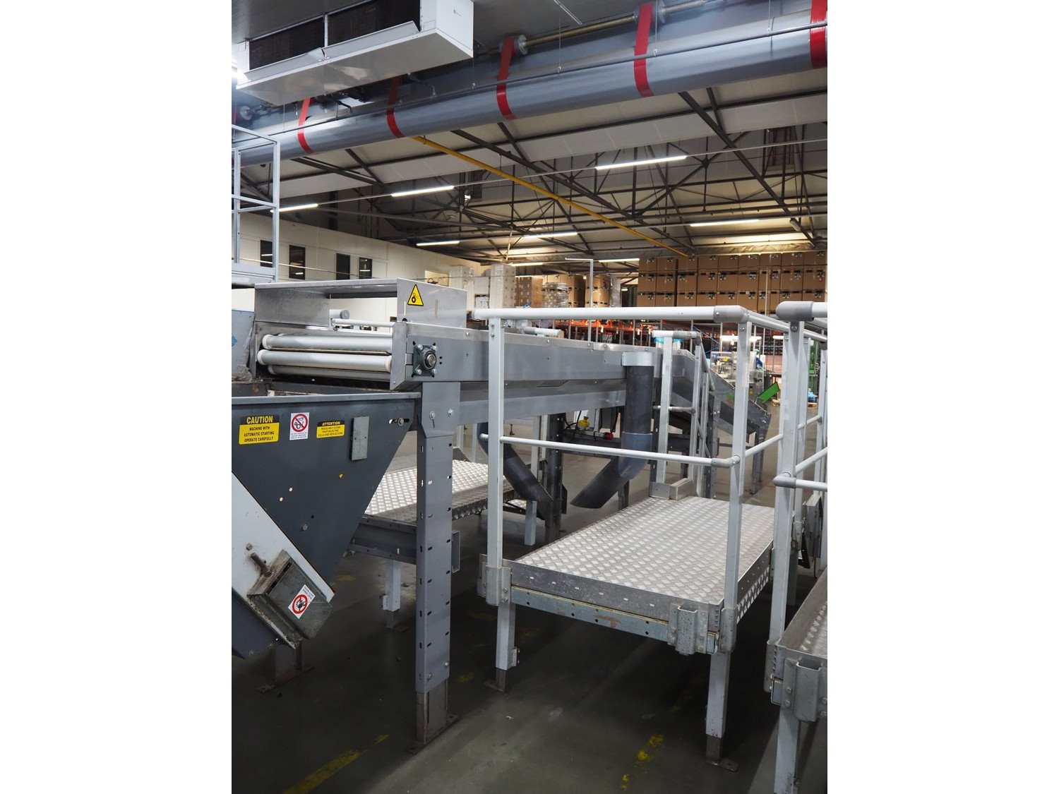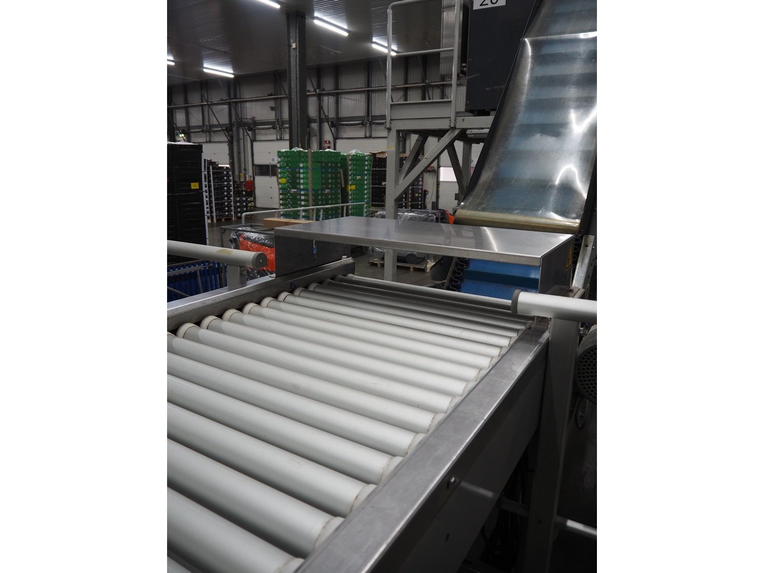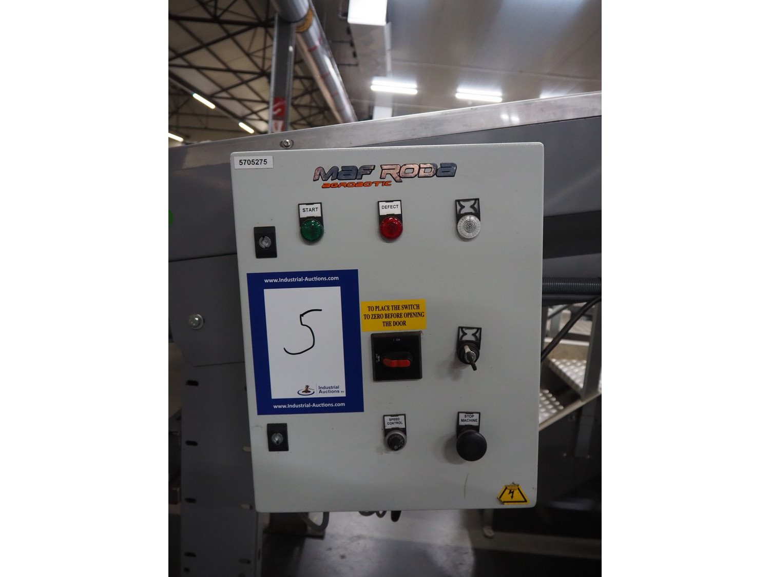 Maf Roda inspection table with work platform, 400 V, 3 Ph, 50 Hz, 2 A, aluminium rollers, roller width: 700 mm, total dimensions: 7350 mm x 1200 mm x 2300 mm, (2x) 1800 mm x 1100 mm x 1700 mm, Kavel locatie: ABC Westland 210, 2685 DC Poeldijk, Nederland